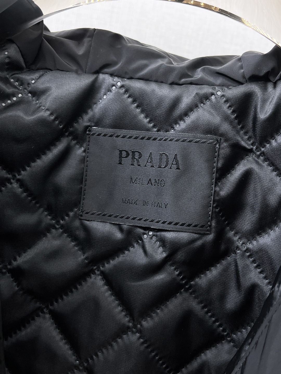 这款衣服是AAAAA 1:1 质量 (非常棒). 使用了和原版一模一样的材料. 商标部分也保持了和普拉达/Prada一样. 图片拍摄是实物衣服拍摄, 您所收到的实物保证和我们图片一模一样.