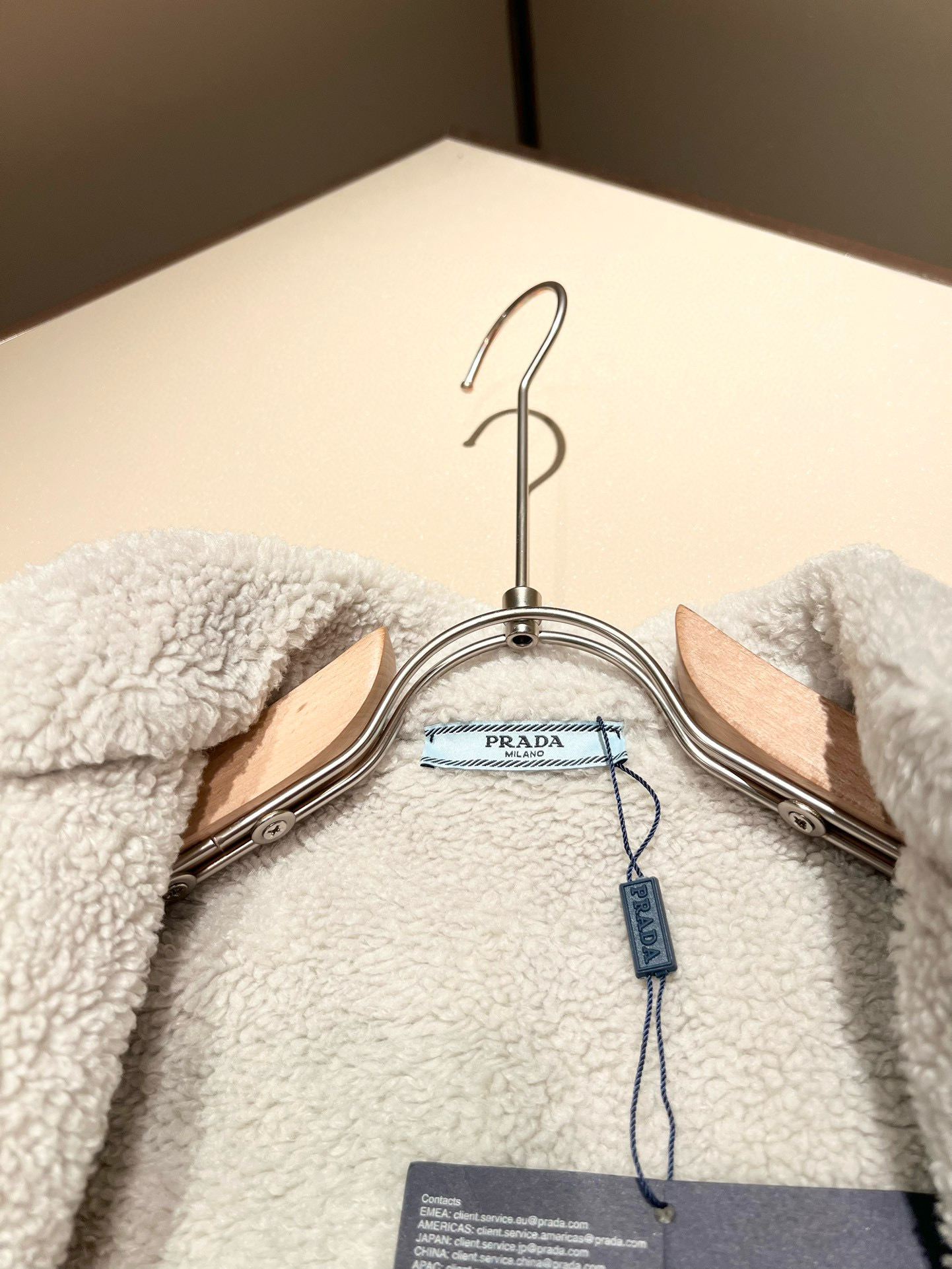 这款衣服是AAAAA 1:1 质量 (非常棒). 使用了和原版一模一样的材料. 商标部分也保持了和普拉达/Prada一样. 图片拍摄是实物衣服拍摄, 您所收到的实物保证和我们图片一模一样.