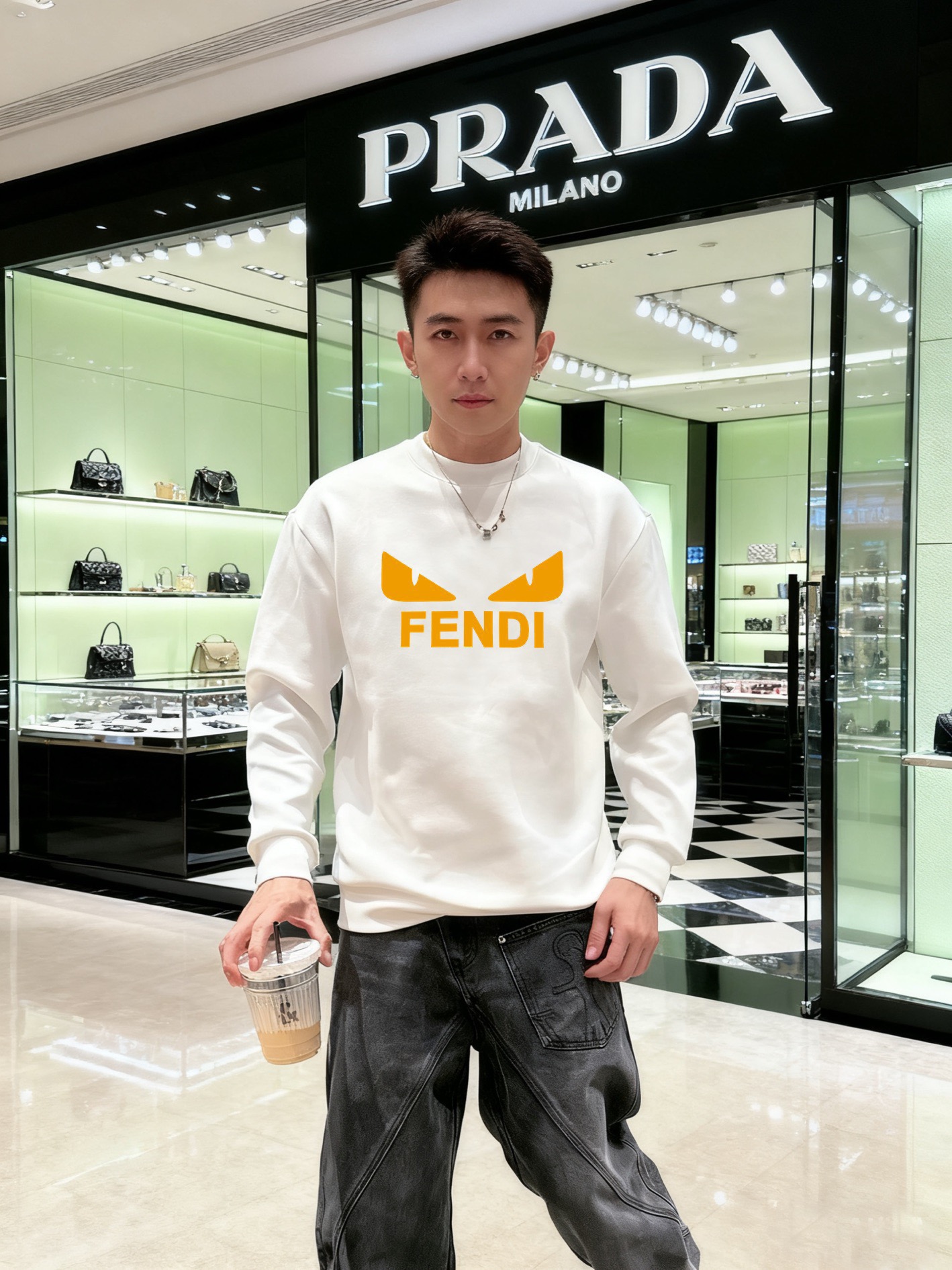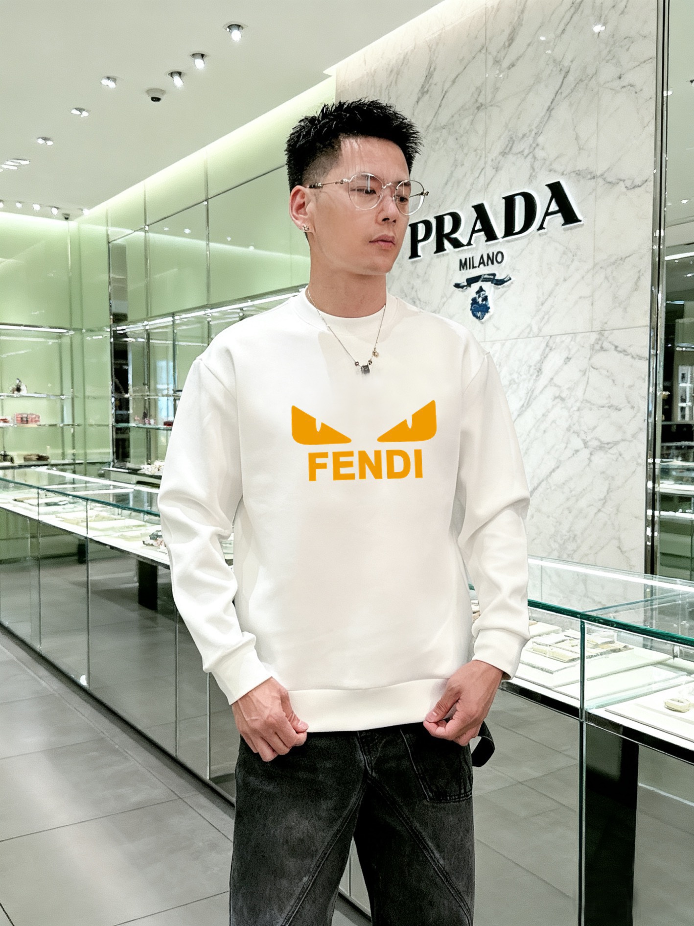 这款衣服是AAAAA 1:1 质量 (非常棒). 使用了和原版一模一样的材料. 商标部分也保持了和芬迪/Fendi一样. 图片拍摄是实物衣服拍摄, 您所收到的实物保证和我们图片一模一样.