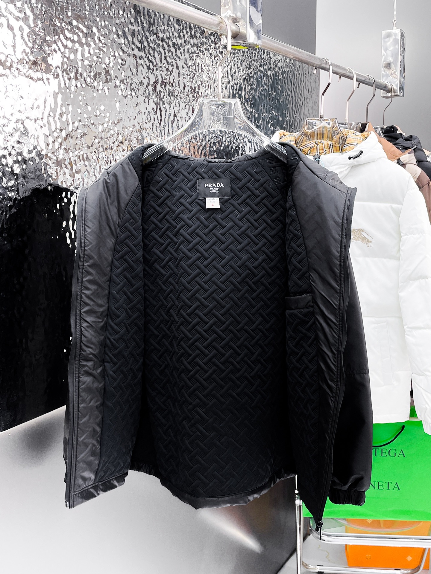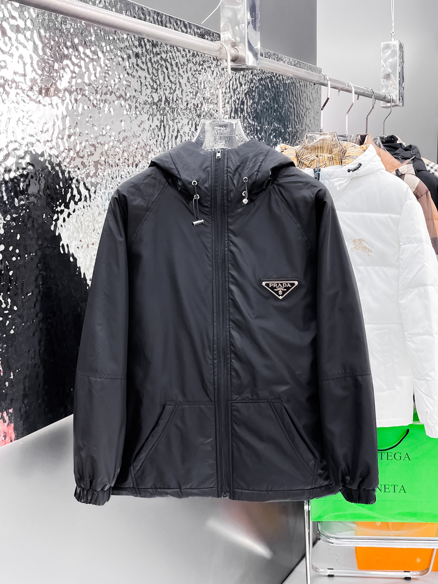 这款衣服是AAAAA 1:1 质量 (非常棒). 使用了和原版一模一样的材料. 商标部分也保持了和普拉达/Prada一样. 图片拍摄是实物衣服拍摄, 您所收到的实物保证和我们图片一模一样.