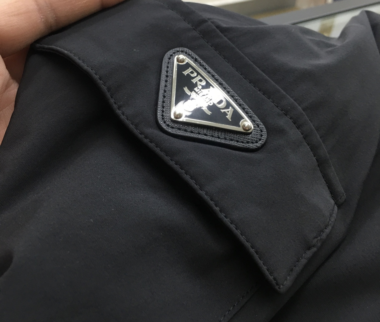 这款衣服是AAAAA 1:1 质量 (非常棒). 使用了和原版一模一样的材料. 商标部分也保持了和普拉达/Prada一样. 图片拍摄是实物衣服拍摄, 您所收到的实物保证和我们图片一模一样.