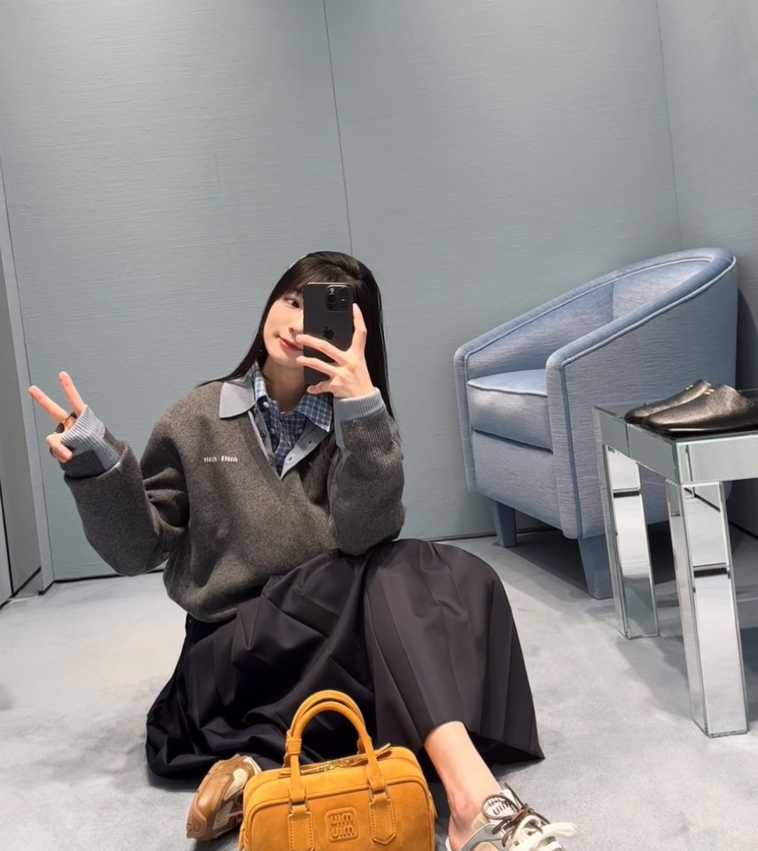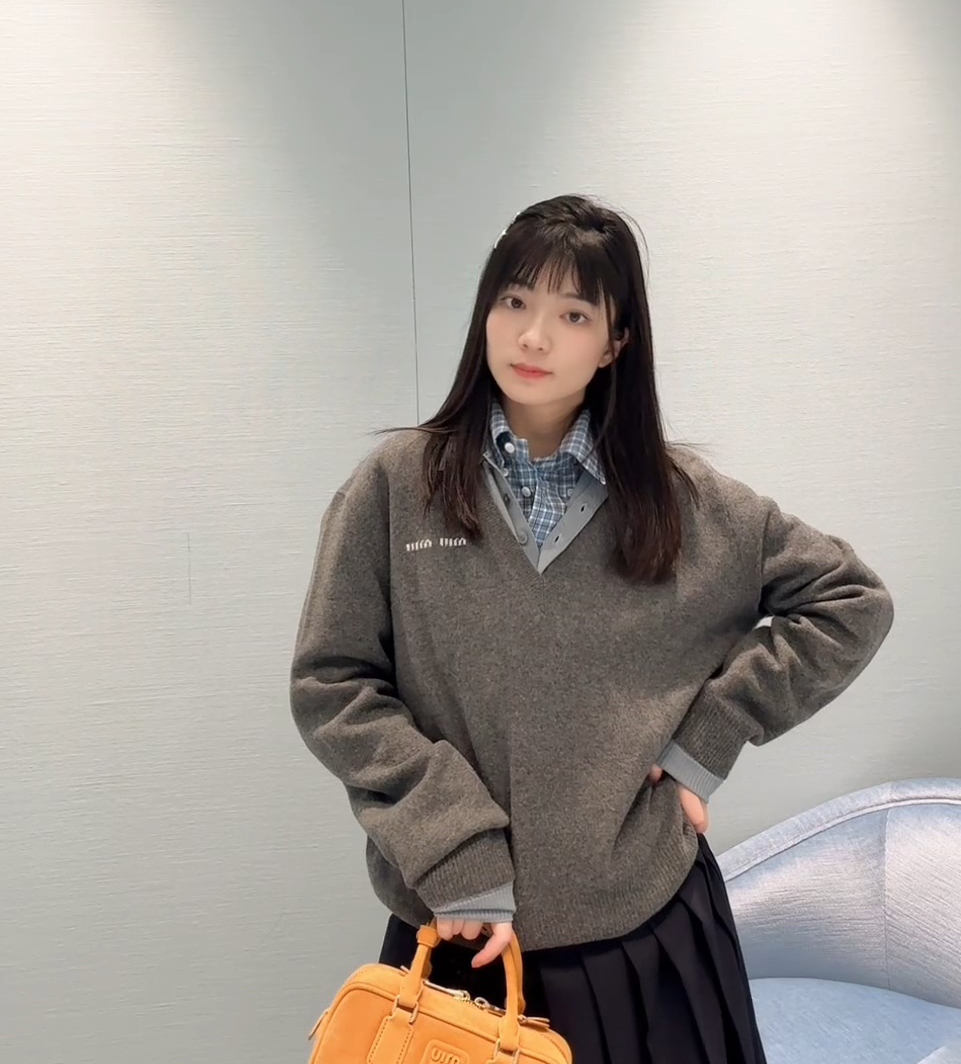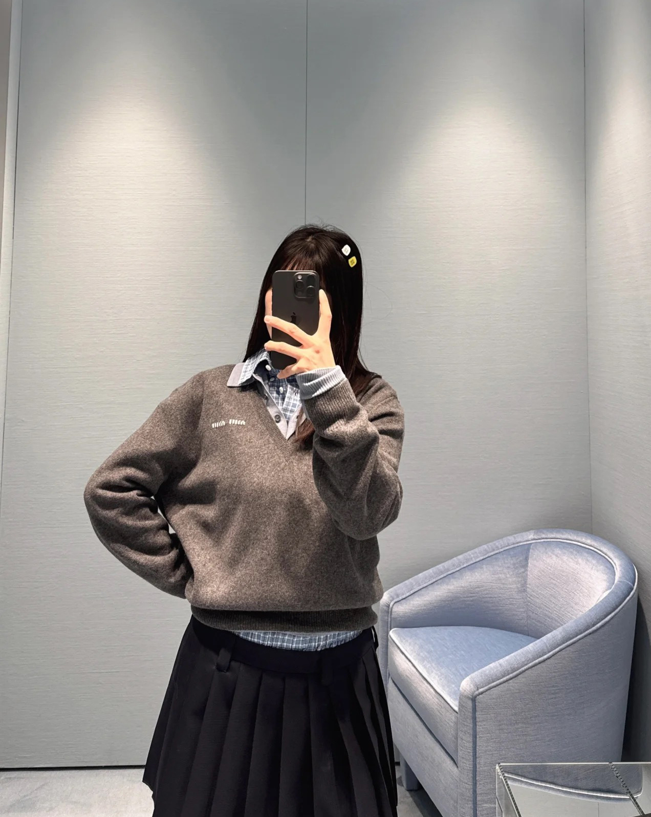 这款衣服是AAAAA 1:1 质量 (非常棒). 使用了和原版一模一样的材料. 商标部分也保持了和缪缪/Miu Miu一样. 图片拍摄是实物衣服拍摄, 您所收到的实物保证和我们图片一模一样.