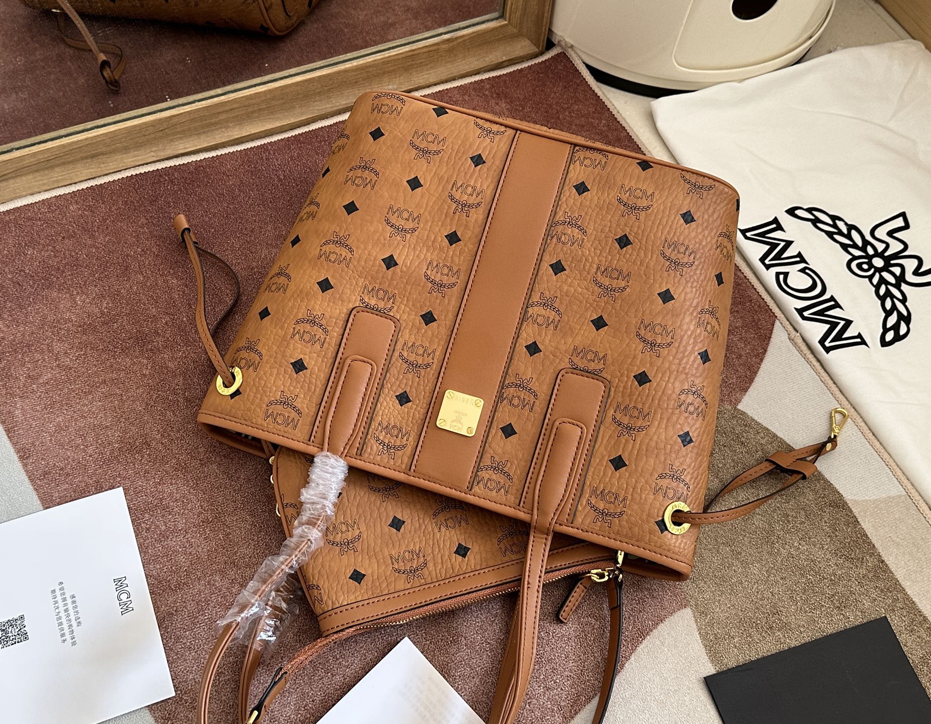 这款包包是AAAAA 1:1 质量 (非常棒). 使用了和原版一模一样的材料. 商标部分也保持了和Man crush Monday(MCM)一样. 图片拍摄是实物包包拍摄, 您所收到的实物保证和我们图片一模一样.