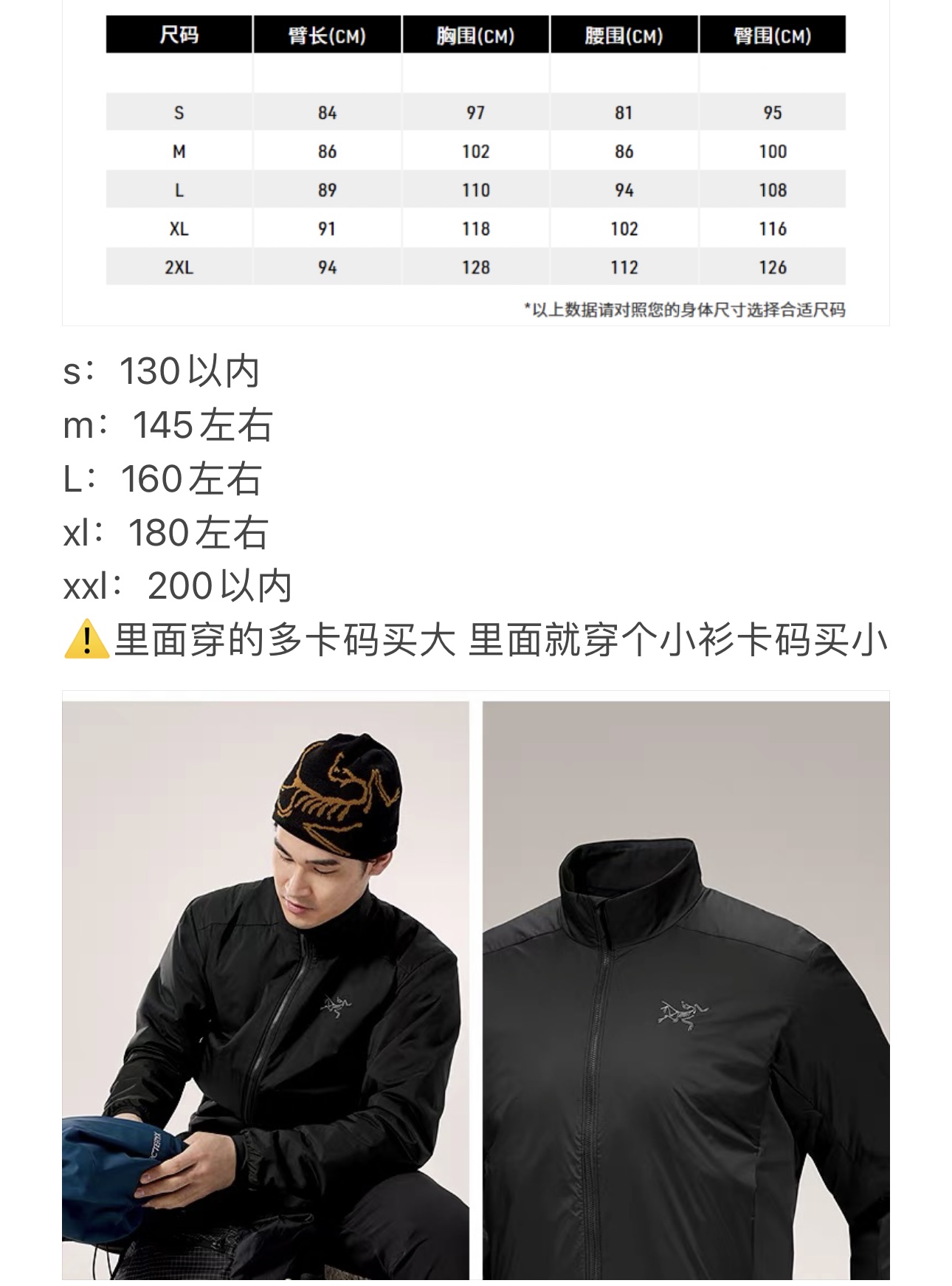 这款衣服是AAAAA 1:1 质量 (非常棒). 使用了和原版一模一样的材料. 商标部分也保持了和ARC'TERYX一样. 图片拍摄是实物衣服拍摄, 您所收到的实物保证和我们图片一模一样.