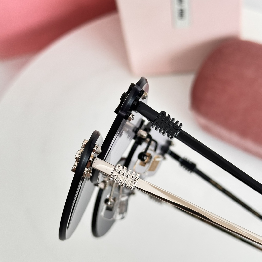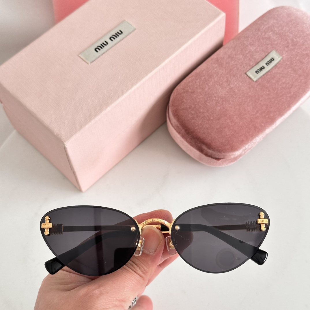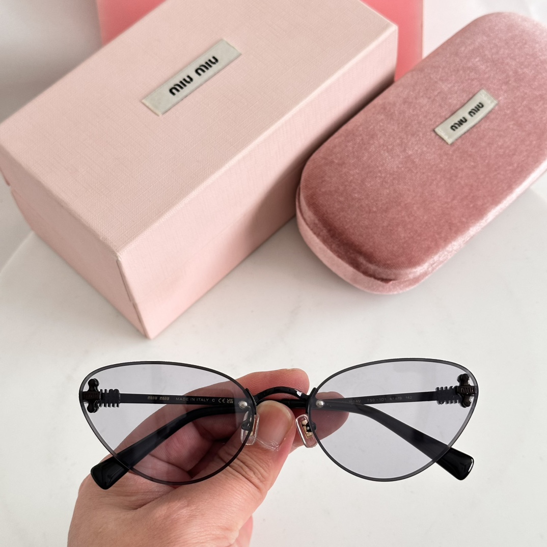 这款太阳眼镜是AAAAA 1:1 质量 (非常棒). 使用了和原版一模一样的材料. 商标部分也保持了和缪缪/Miu Miu一样. 图片拍摄是实物太阳眼镜拍摄, 您所收到的实物保证和我们图片一模一样.
