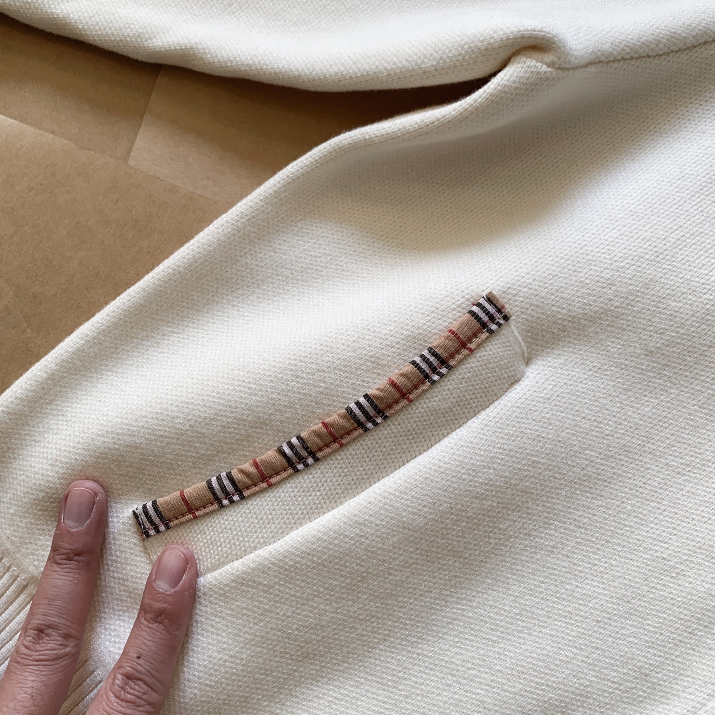这款衣服是AAAAA 1:1 质量 (非常棒). 使用了和原版一模一样的材料. 商标部分也保持了和巴宝莉/Burberry一样. 图片拍摄是实物衣服拍摄, 您所收到的实物保证和我们图片一模一样.