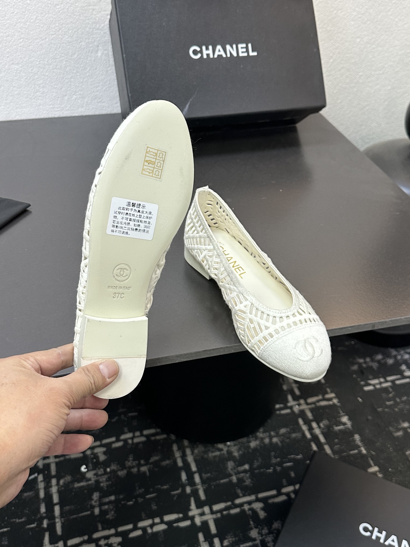 这款鞋子是AAAAA 1:1 质量 (非常棒). 使用了和原版一模一样的材料. 商标部分也保持了和香奈儿/Chanel一样. 图片拍摄是实物鞋子拍摄, 您所收到的实物保证和我们图片一模一样.