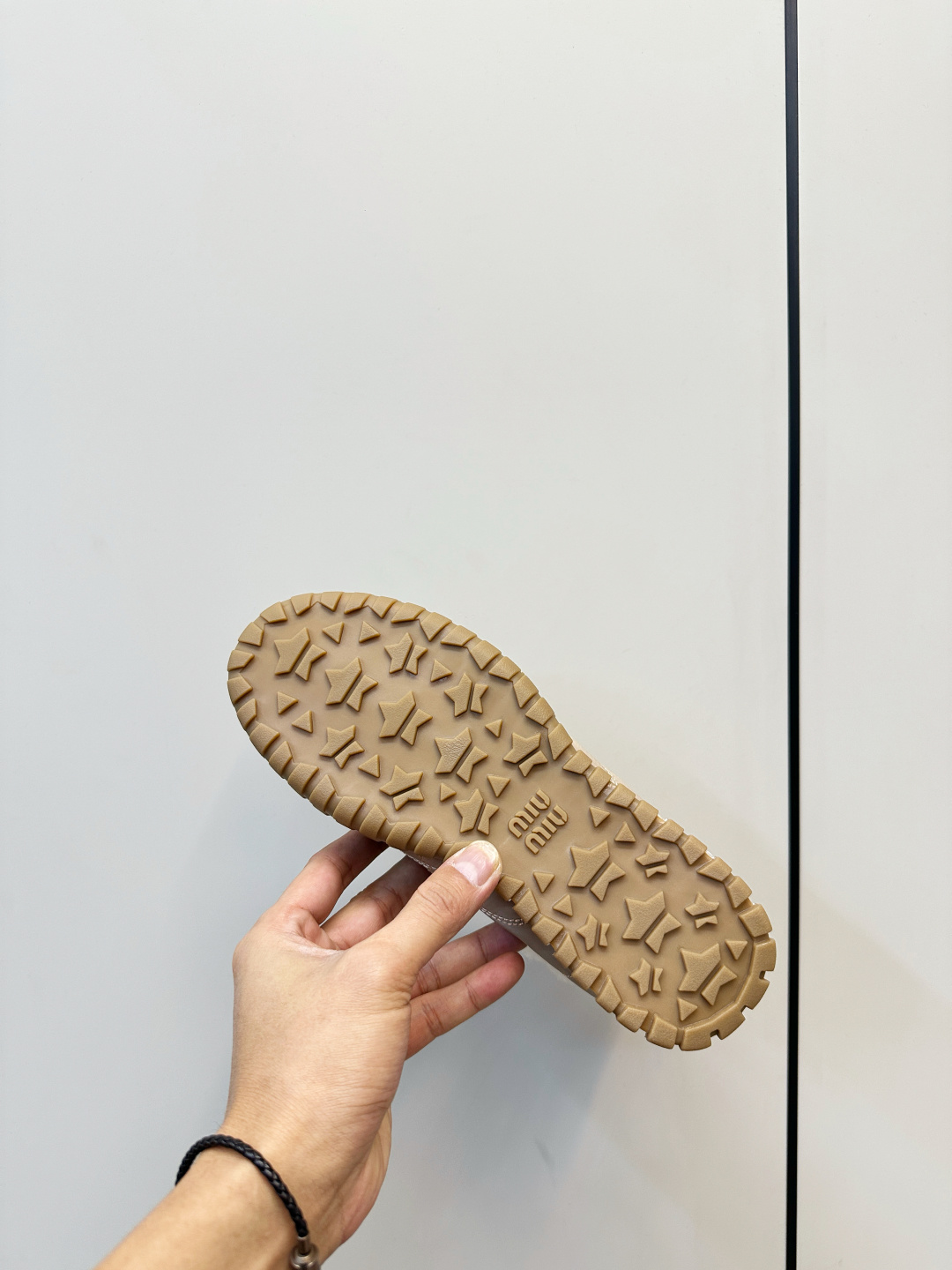 这款鞋子是AAAAA 1:1 质量 (非常棒). 使用了和原版一模一样的材料. 商标部分也保持了和缪缪/Miu Miu一样. 图片拍摄是实物鞋子拍摄, 您所收到的实物保证和我们图片一模一样.