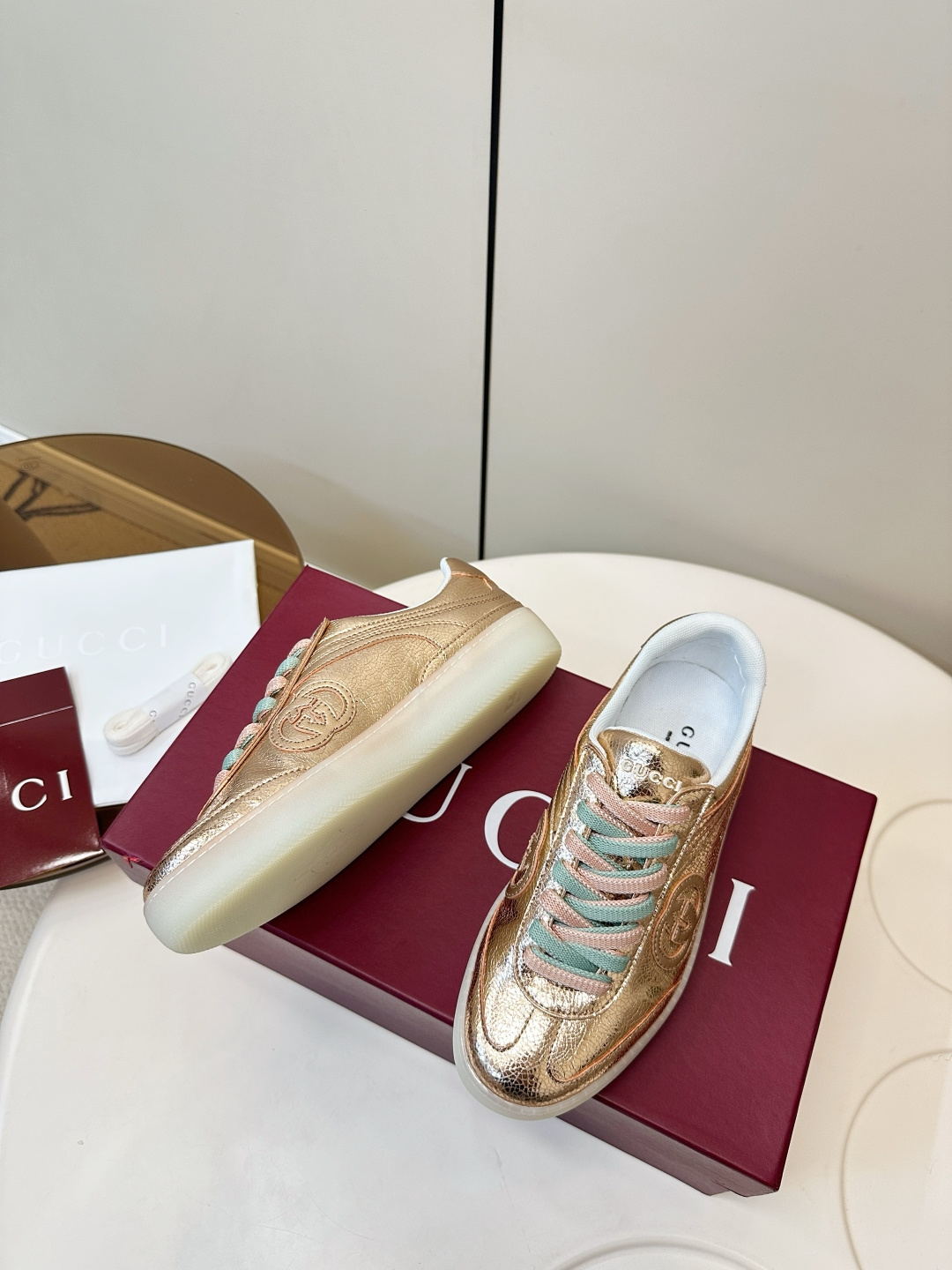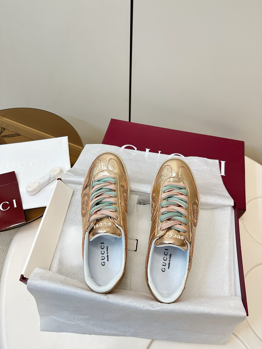 这款鞋子是AAAAA 1:1 质量 (非常棒). 使用了和原版一模一样的材料. 商标部分也保持了和古奇/Gucci一样. 图片拍摄是实物鞋子拍摄, 您所收到的实物保证和我们图片一模一样.