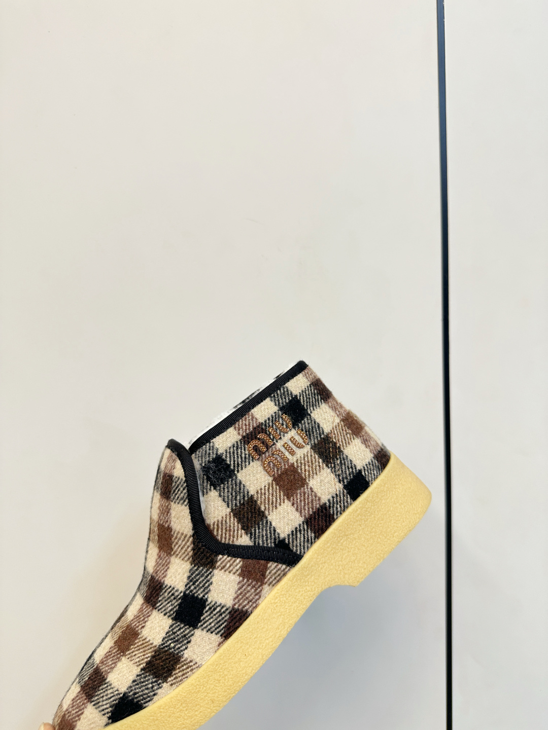 这款鞋子是AAAAA 1:1 质量 (非常棒). 使用了和原版一模一样的材料. 商标部分也保持了和缪缪/Miu Miu一样. 图片拍摄是实物鞋子拍摄, 您所收到的实物保证和我们图片一模一样.