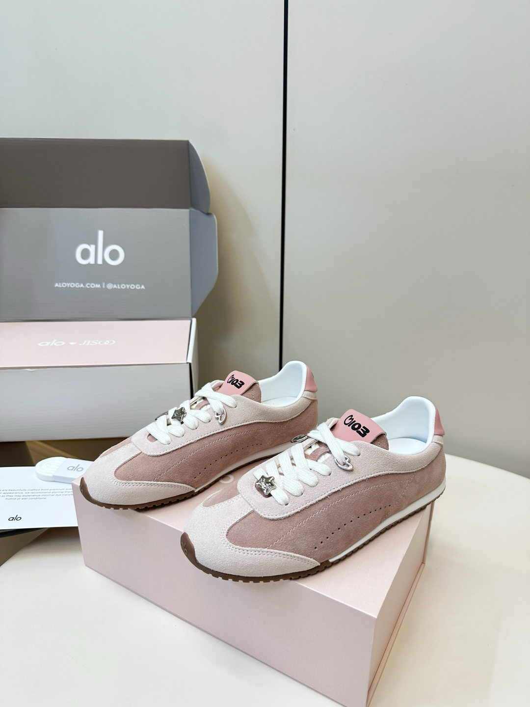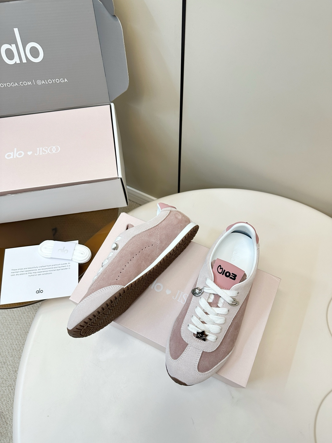 这款鞋子是AAAAA 1:1 质量 (非常棒). 使用了和原版一模一样的材料. 商标部分也保持了和Alo Yoga一样. 图片拍摄是实物鞋子拍摄, 您所收到的实物保证和我们图片一模一样.