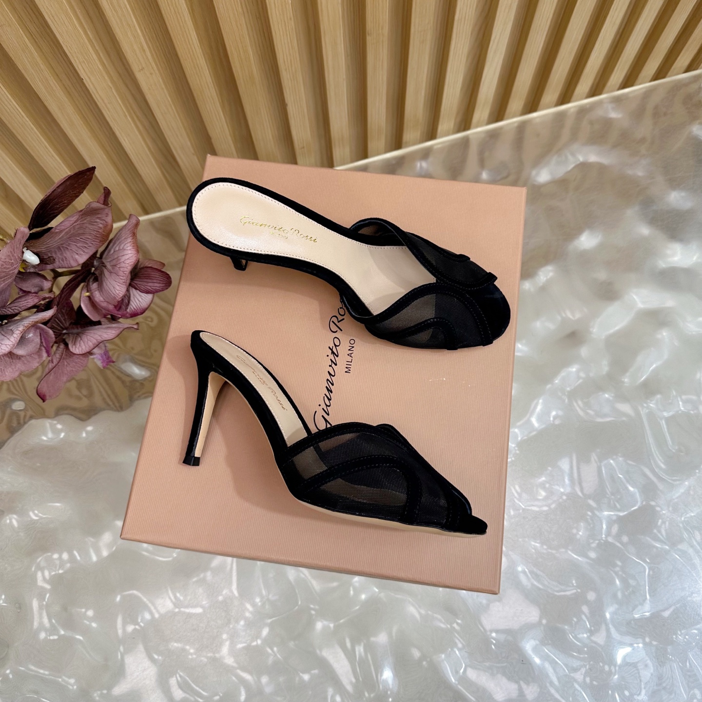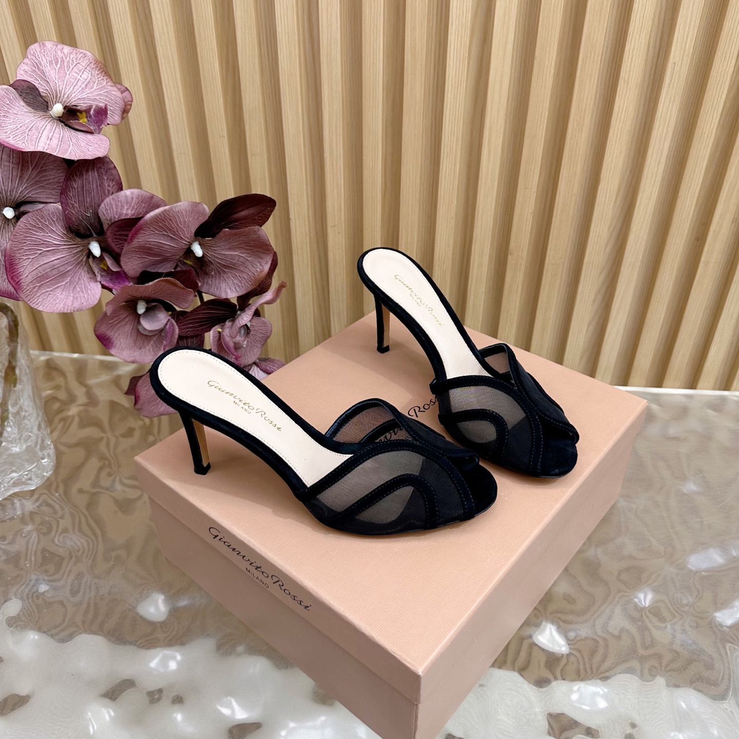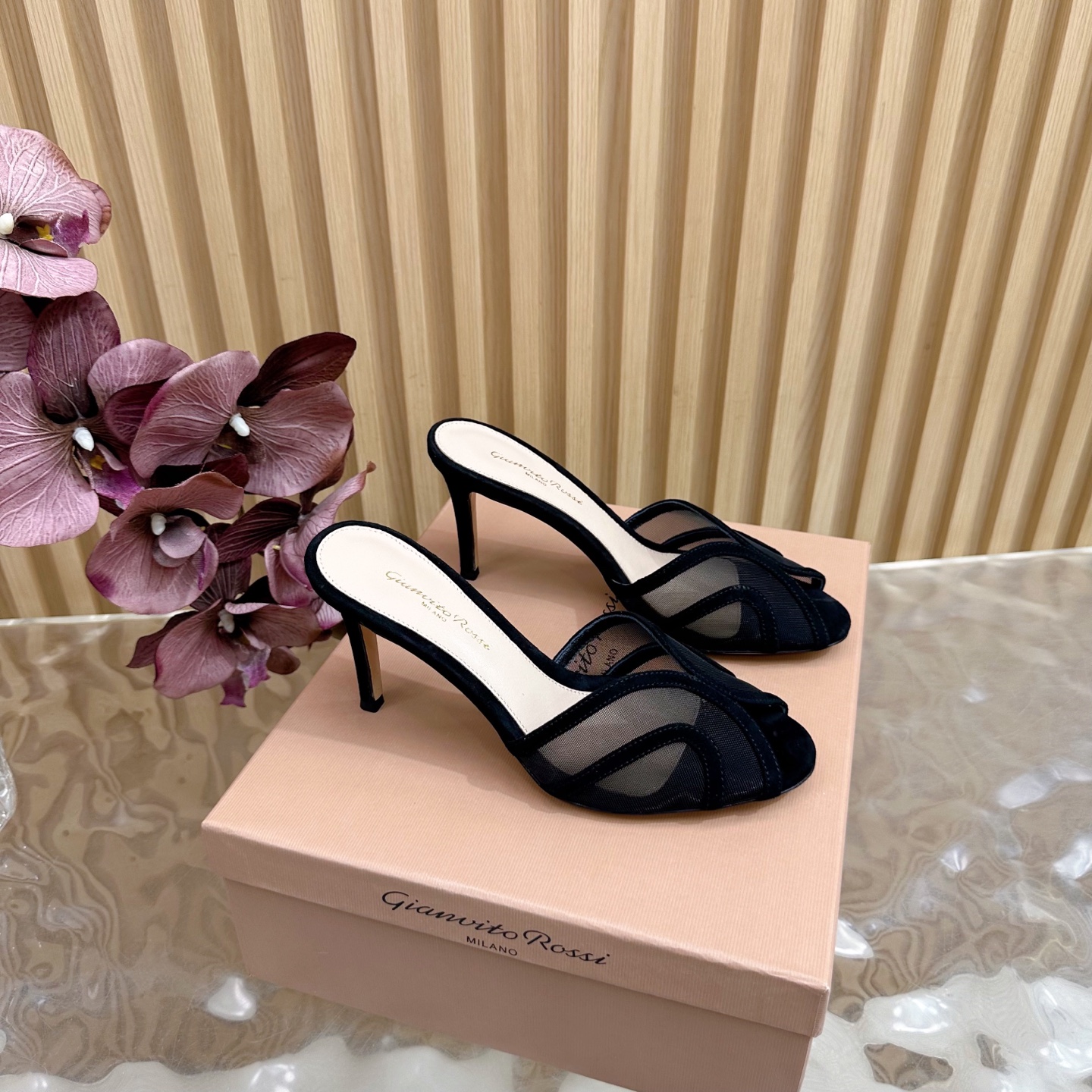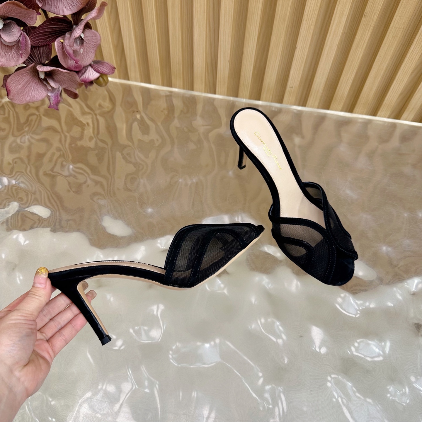 这款鞋子是AAAAA 1:1 质量 (非常棒). 使用了和原版一模一样的材料. 商标部分也保持了和Gianvito Rossi一样. 图片拍摄是实物鞋子拍摄, 您所收到的实物保证和我们图片一模一样.