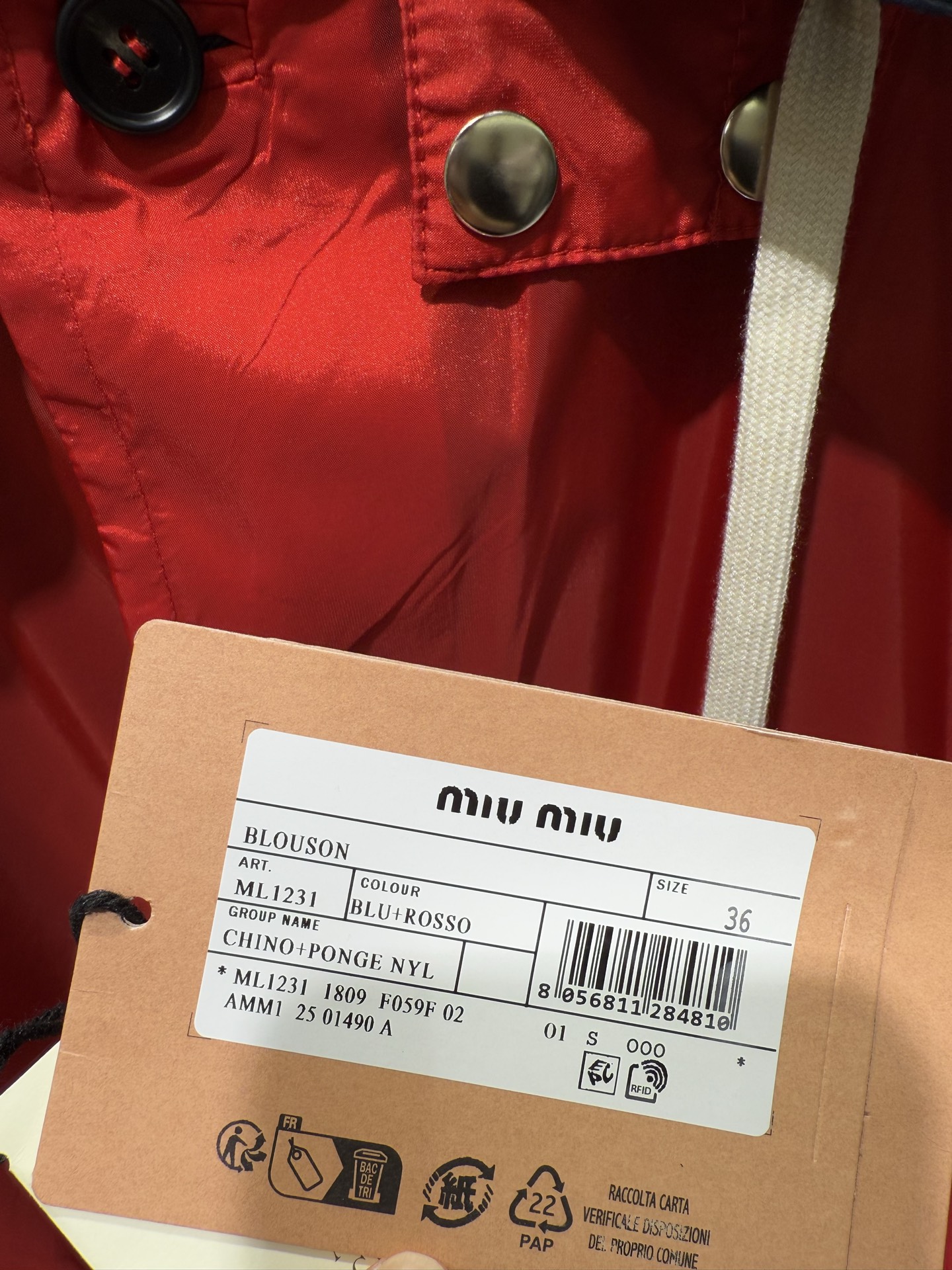 这款衣服是AAAAA 1:1 质量 (非常棒). 使用了和原版一模一样的材料. 商标部分也保持了和缪缪/Miu Miu一样. 图片拍摄是实物衣服拍摄, 您所收到的实物保证和我们图片一模一样.