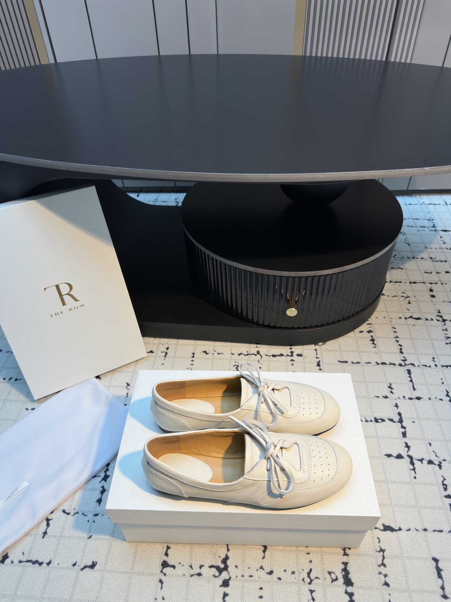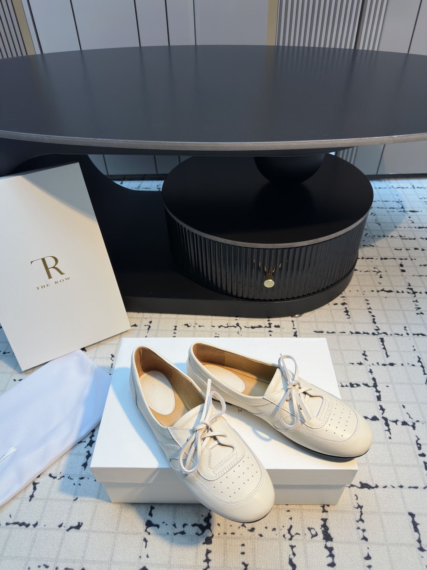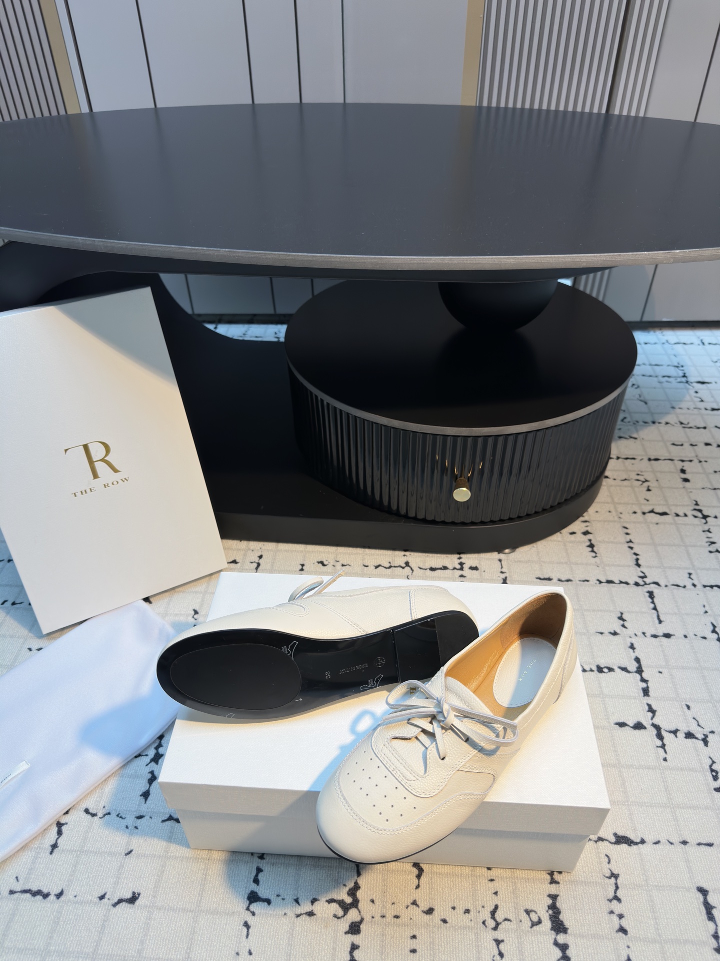 这款鞋子是AAAAA 1:1 质量 (非常棒). 使用了和原版一模一样的材料. 商标部分也保持了和The Row一样. 图片拍摄是实物鞋子拍摄, 您所收到的实物保证和我们图片一模一样.