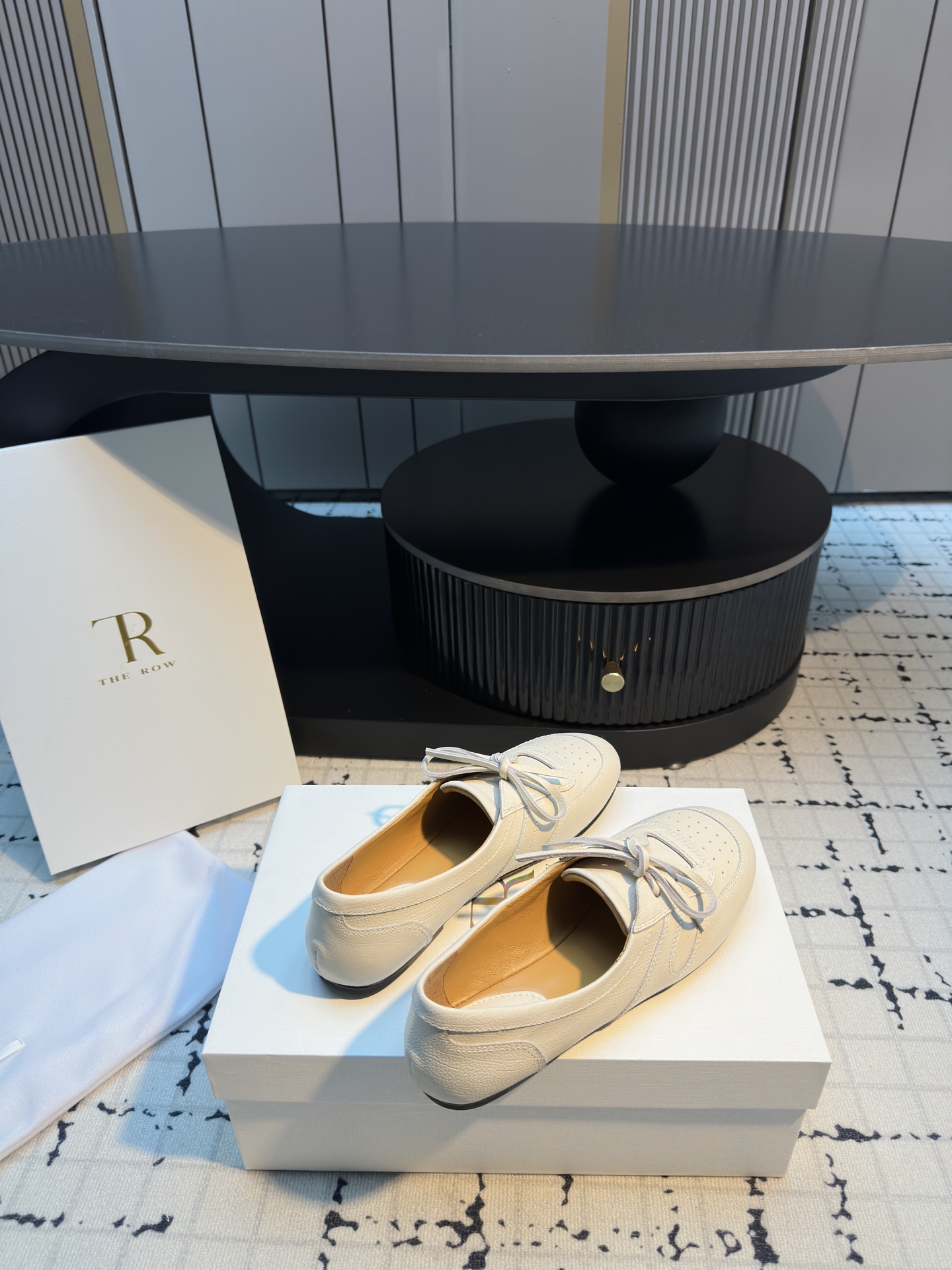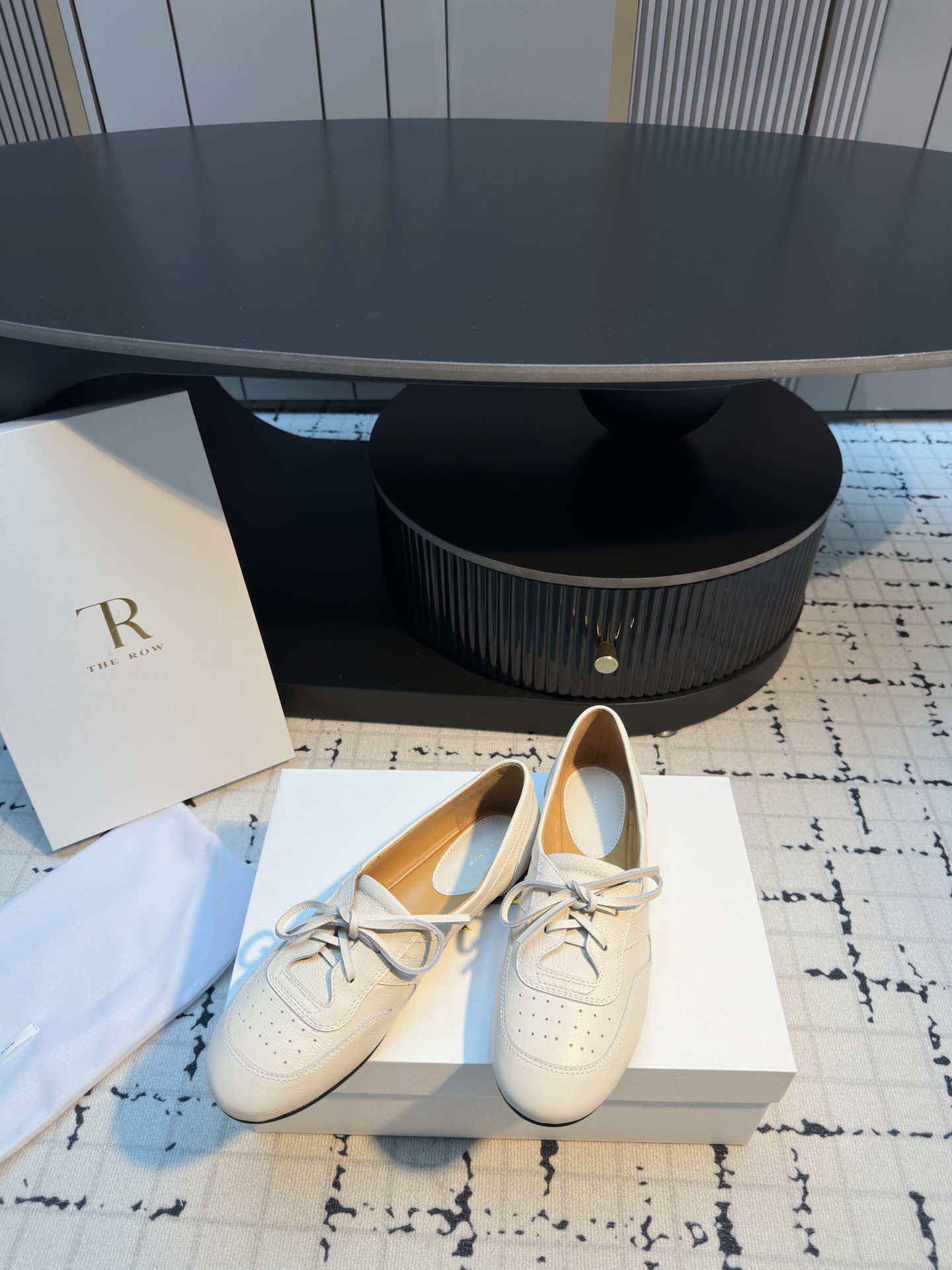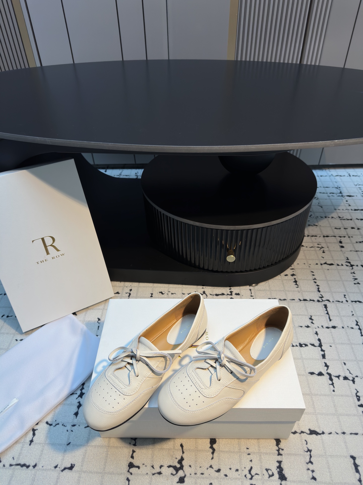 这款鞋子是AAAAA 1:1 质量 (非常棒). 使用了和原版一模一样的材料. 商标部分也保持了和The Row一样. 图片拍摄是实物鞋子拍摄, 您所收到的实物保证和我们图片一模一样.