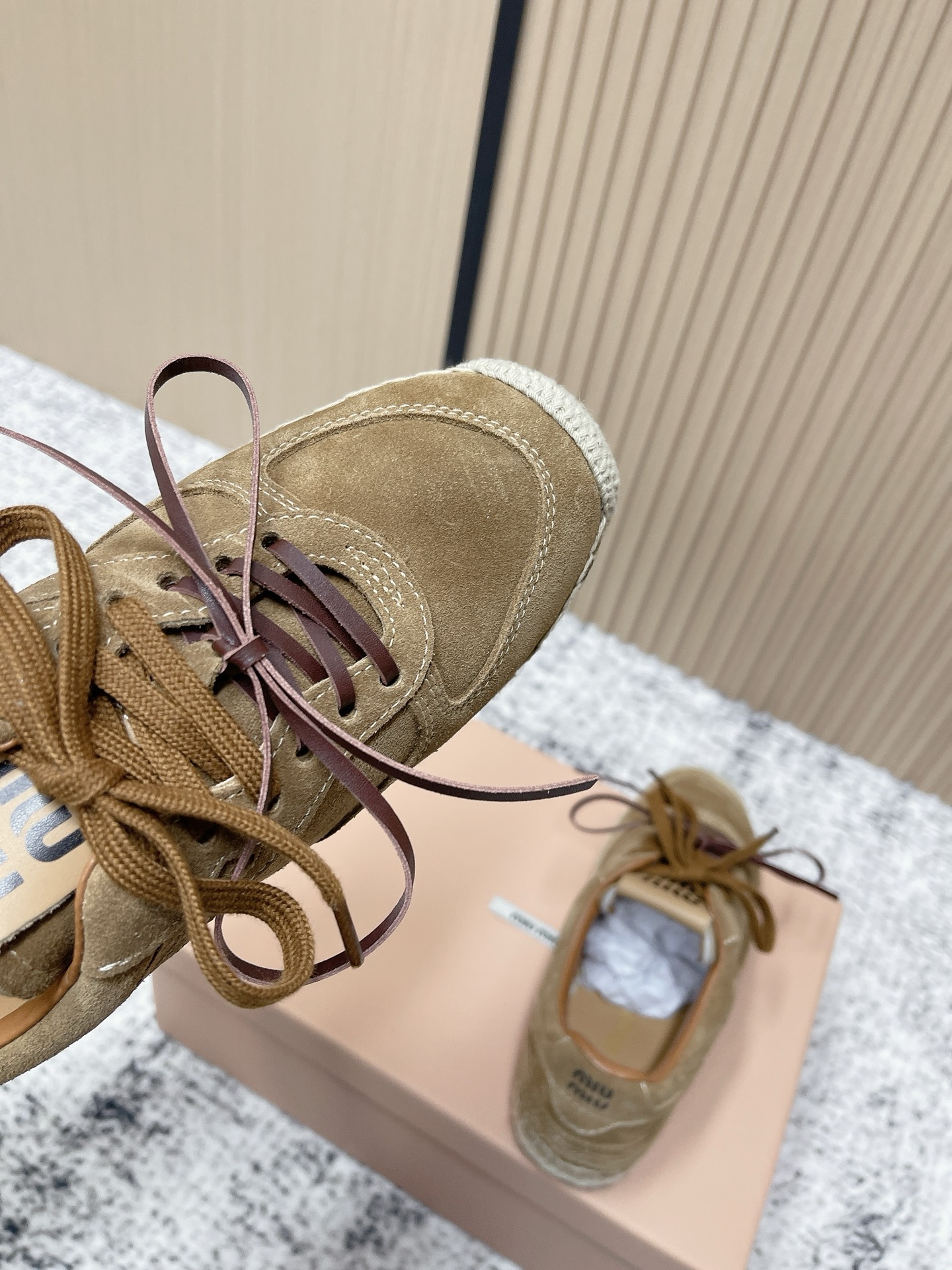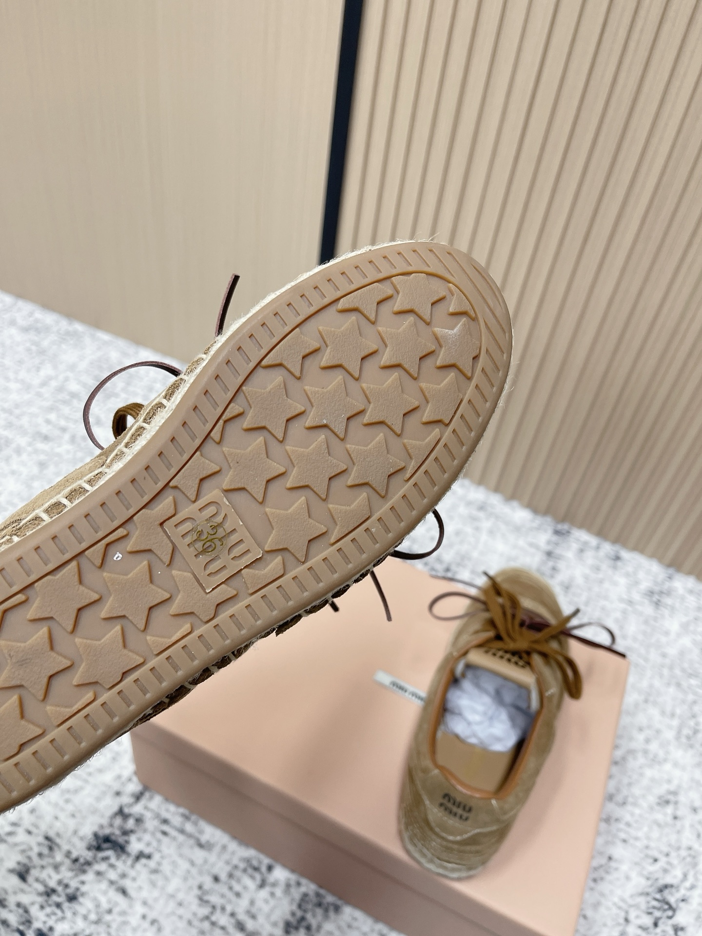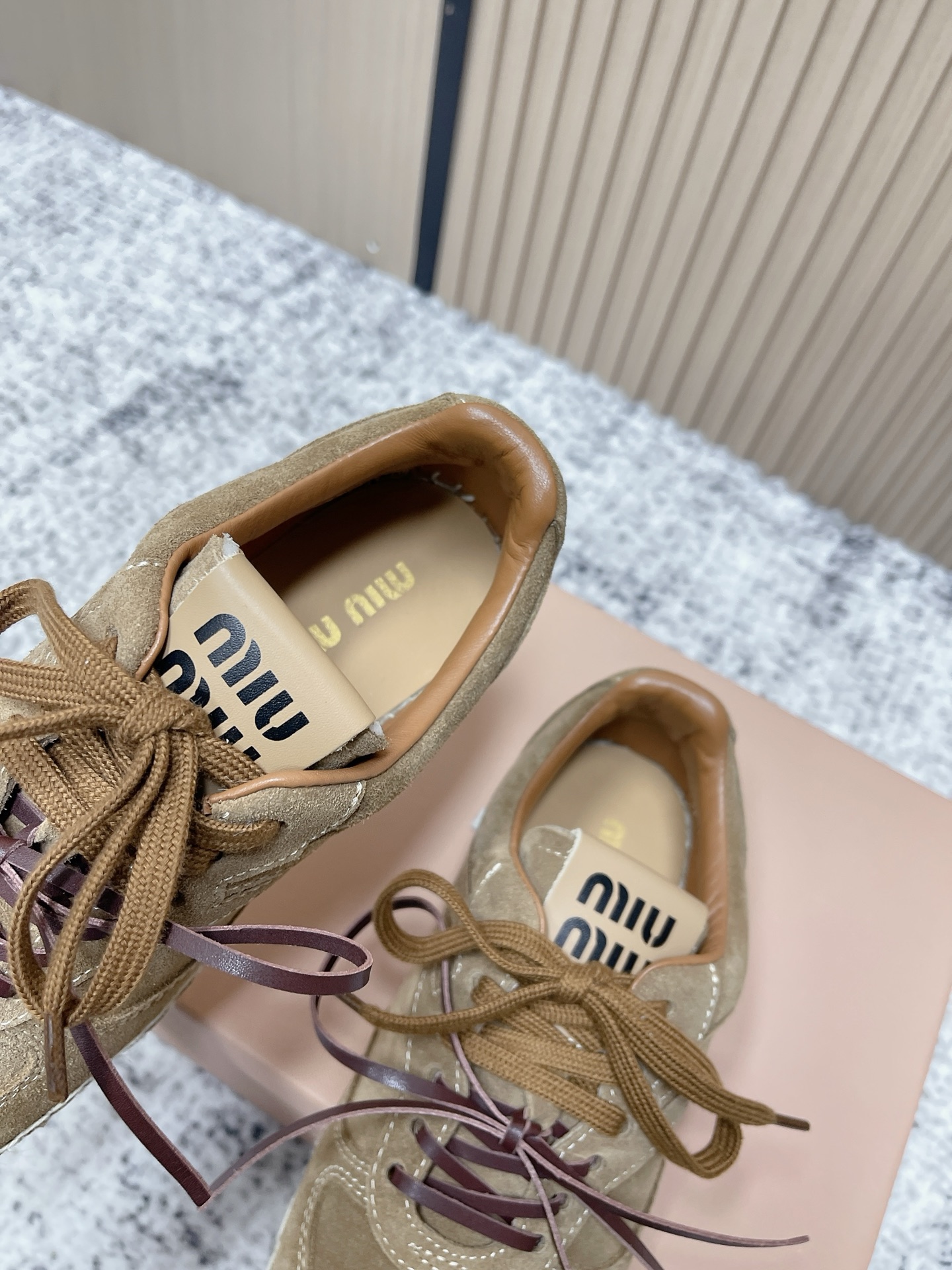 这款鞋子是AAAAA 1:1 质量 (非常棒). 使用了和原版一模一样的材料. 商标部分也保持了和缪缪/Miu Miu一样. 图片拍摄是实物鞋子拍摄, 您所收到的实物保证和我们图片一模一样.