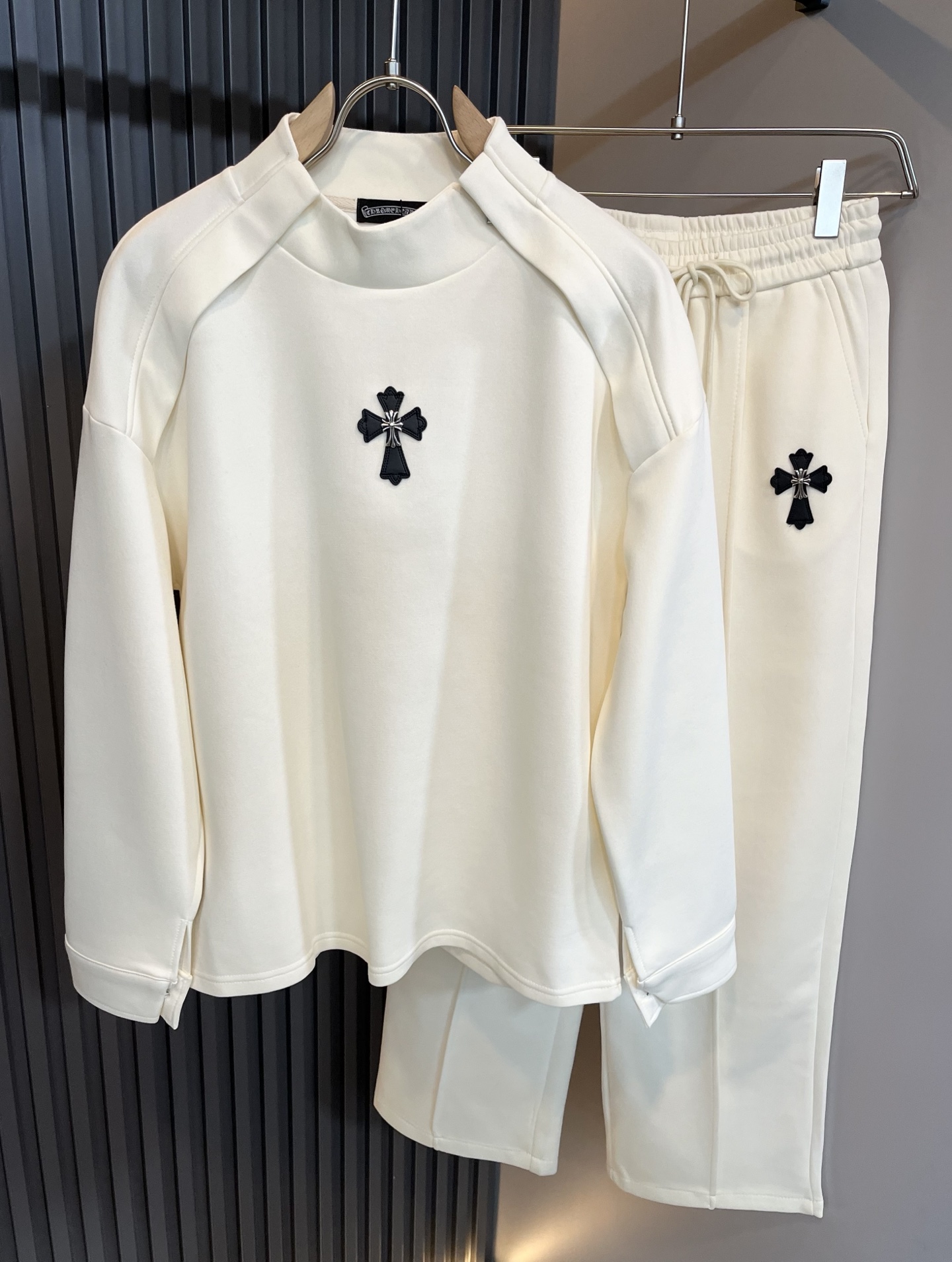 这款衣服是AAAAA 1:1 质量 (非常棒). 使用了和原版一模一样的材料. 商标部分也保持了和克罗心/Chrome Hearts一样. 图片拍摄是实物衣服拍摄, 您所收到的实物保证和我们图片一模一样.