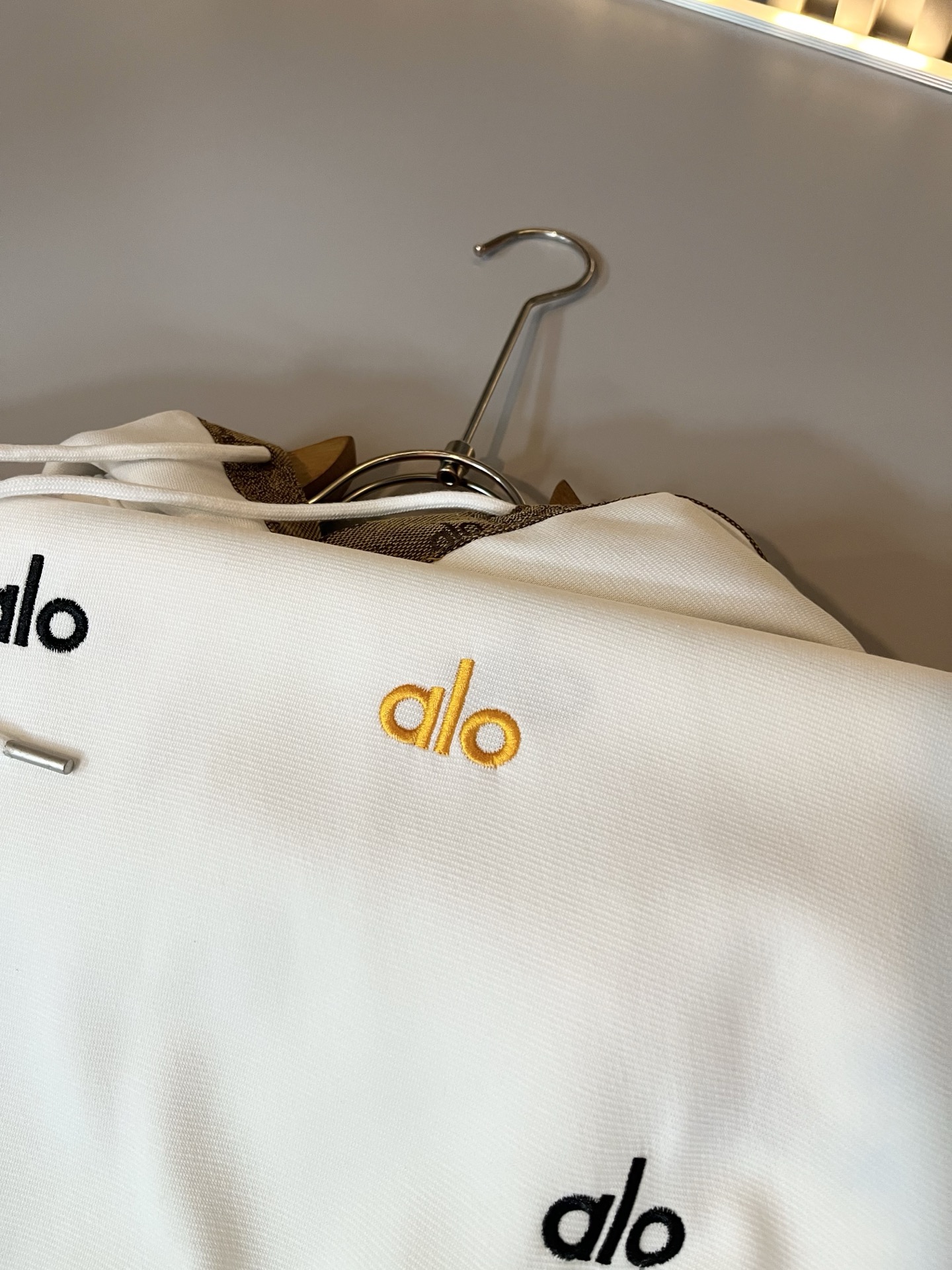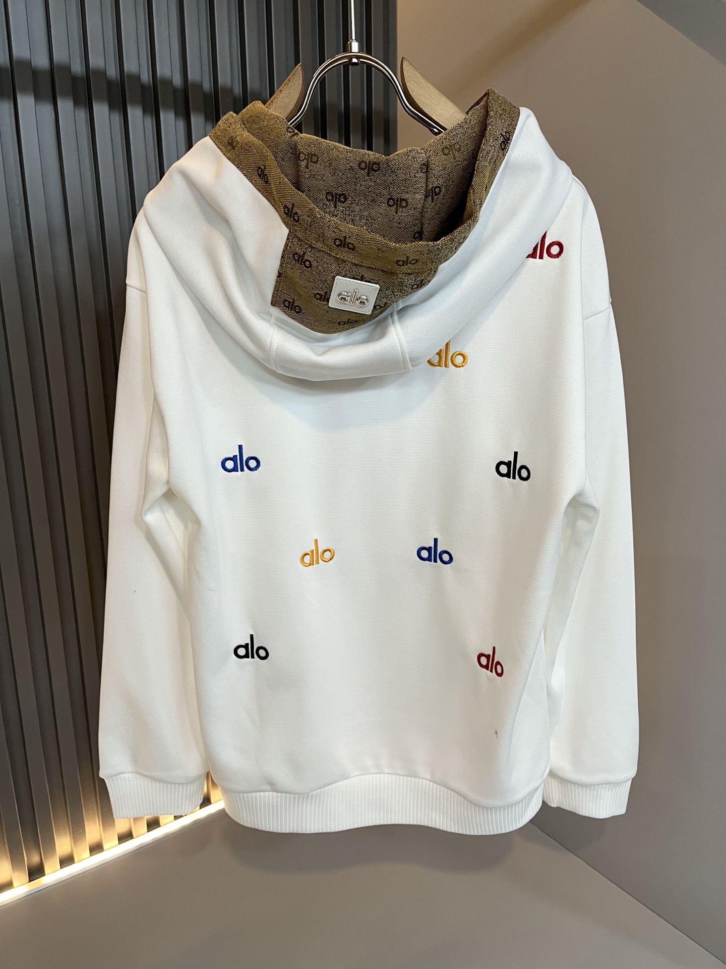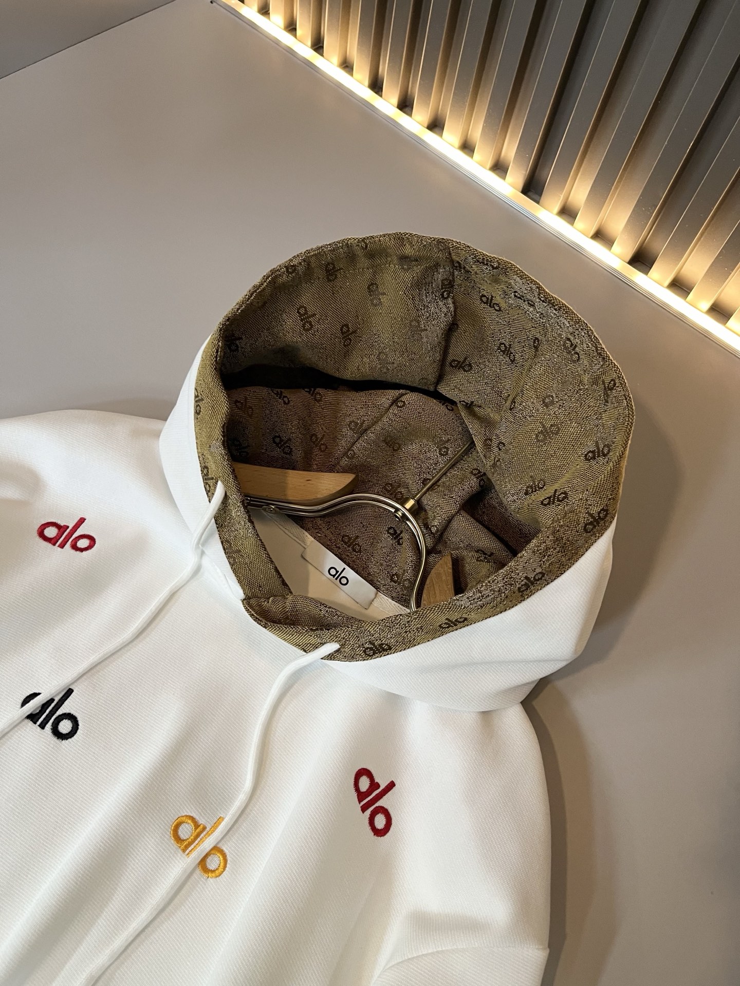 这款衣服是AAAAA 1:1 质量 (非常棒). 使用了和原版一模一样的材料. 商标部分也保持了和Alo Yoga一样. 图片拍摄是实物衣服拍摄, 您所收到的实物保证和我们图片一模一样.