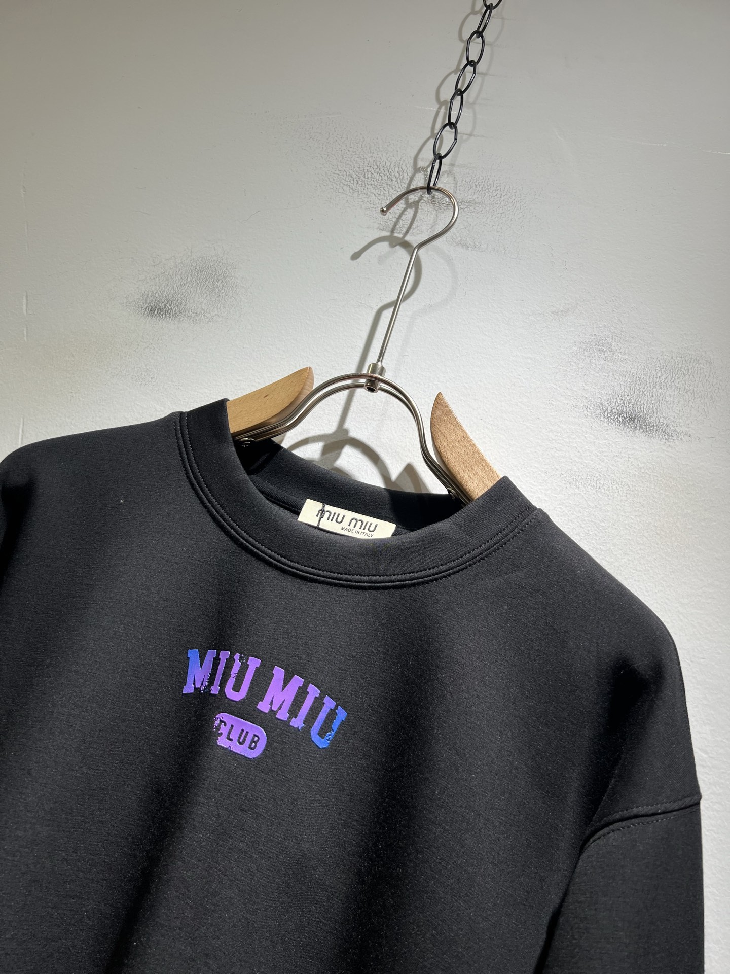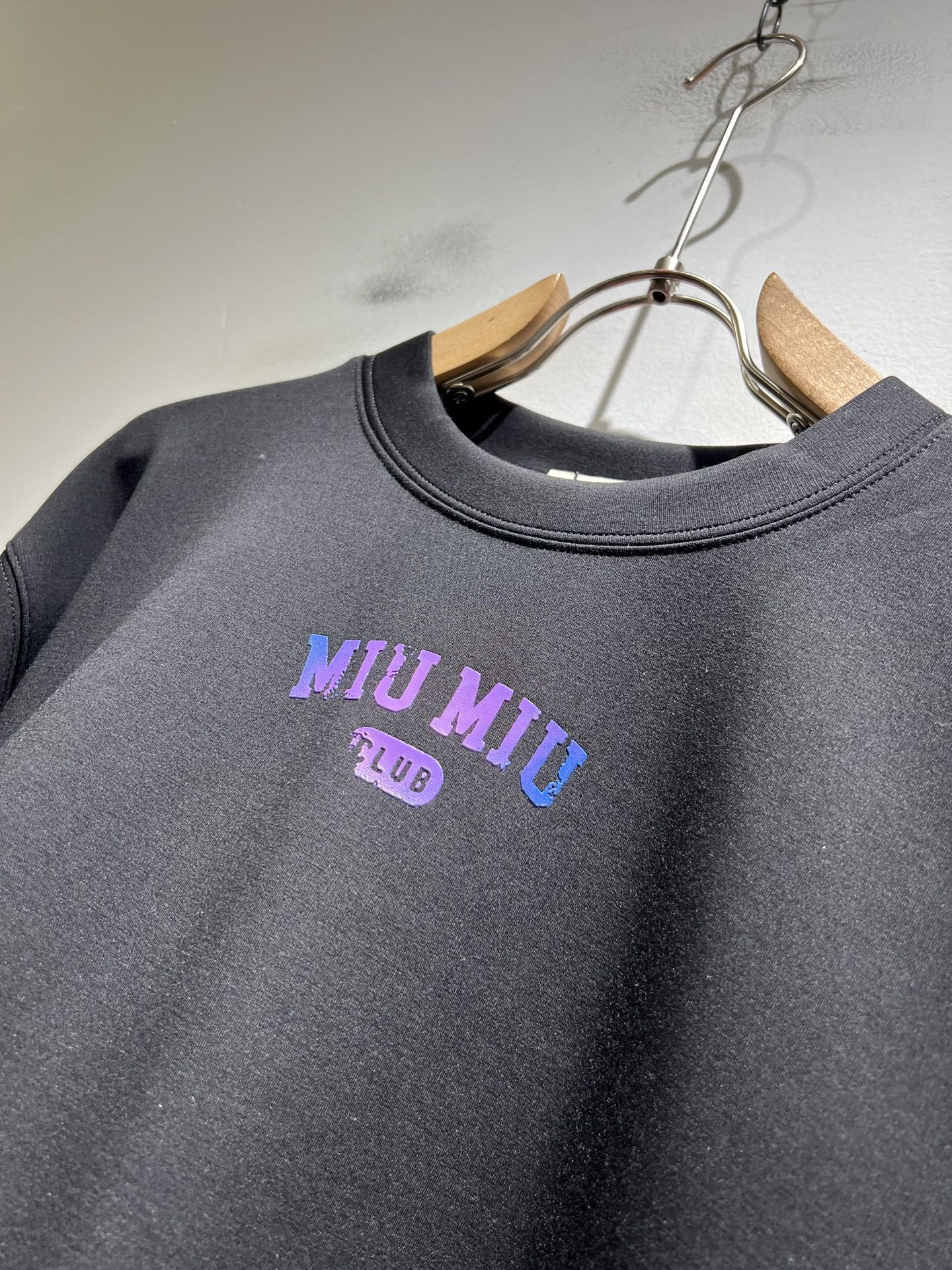 这款衣服是AAAAA 1:1 质量 (非常棒). 使用了和原版一模一样的材料. 商标部分也保持了和缪缪/Miu Miu一样. 图片拍摄是实物衣服拍摄, 您所收到的实物保证和我们图片一模一样.