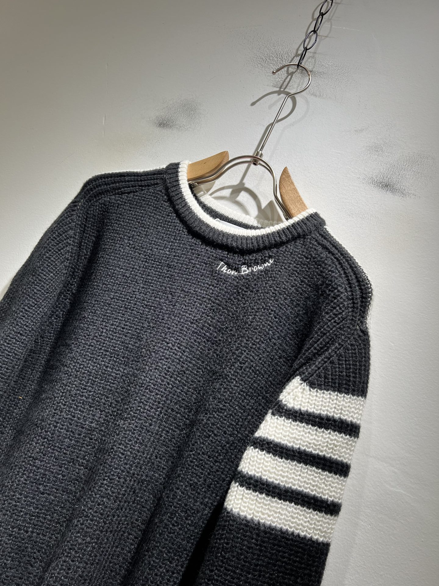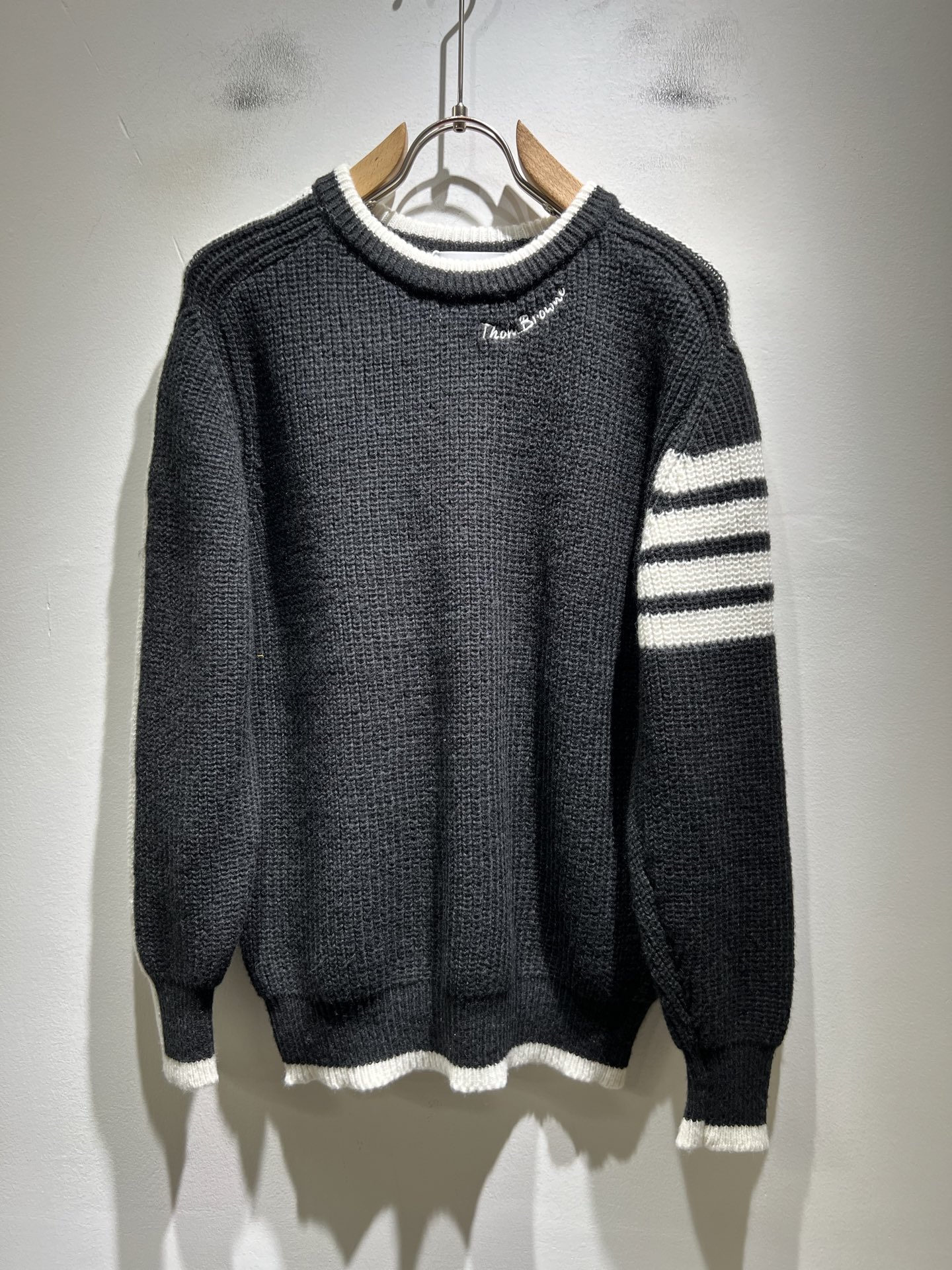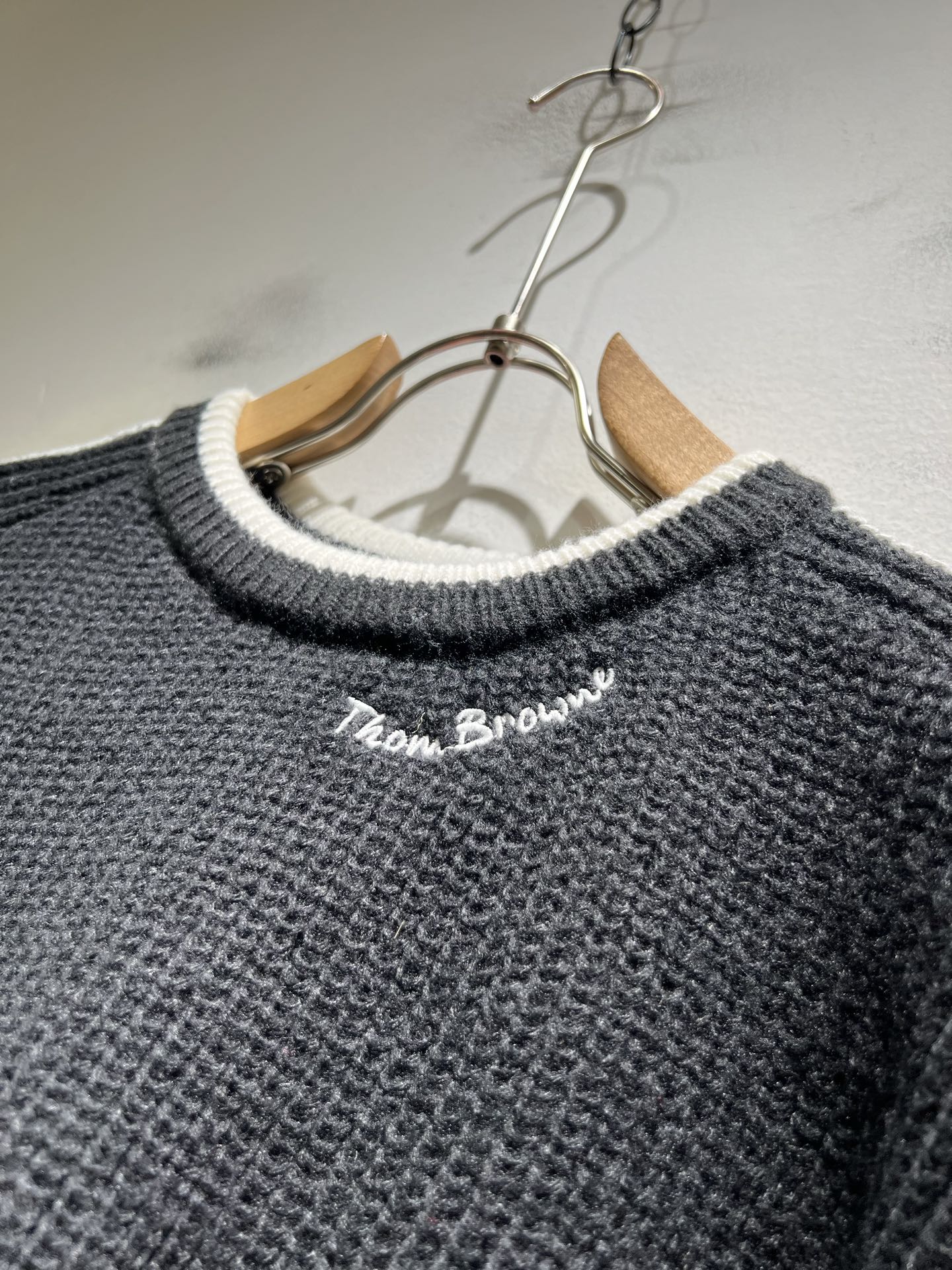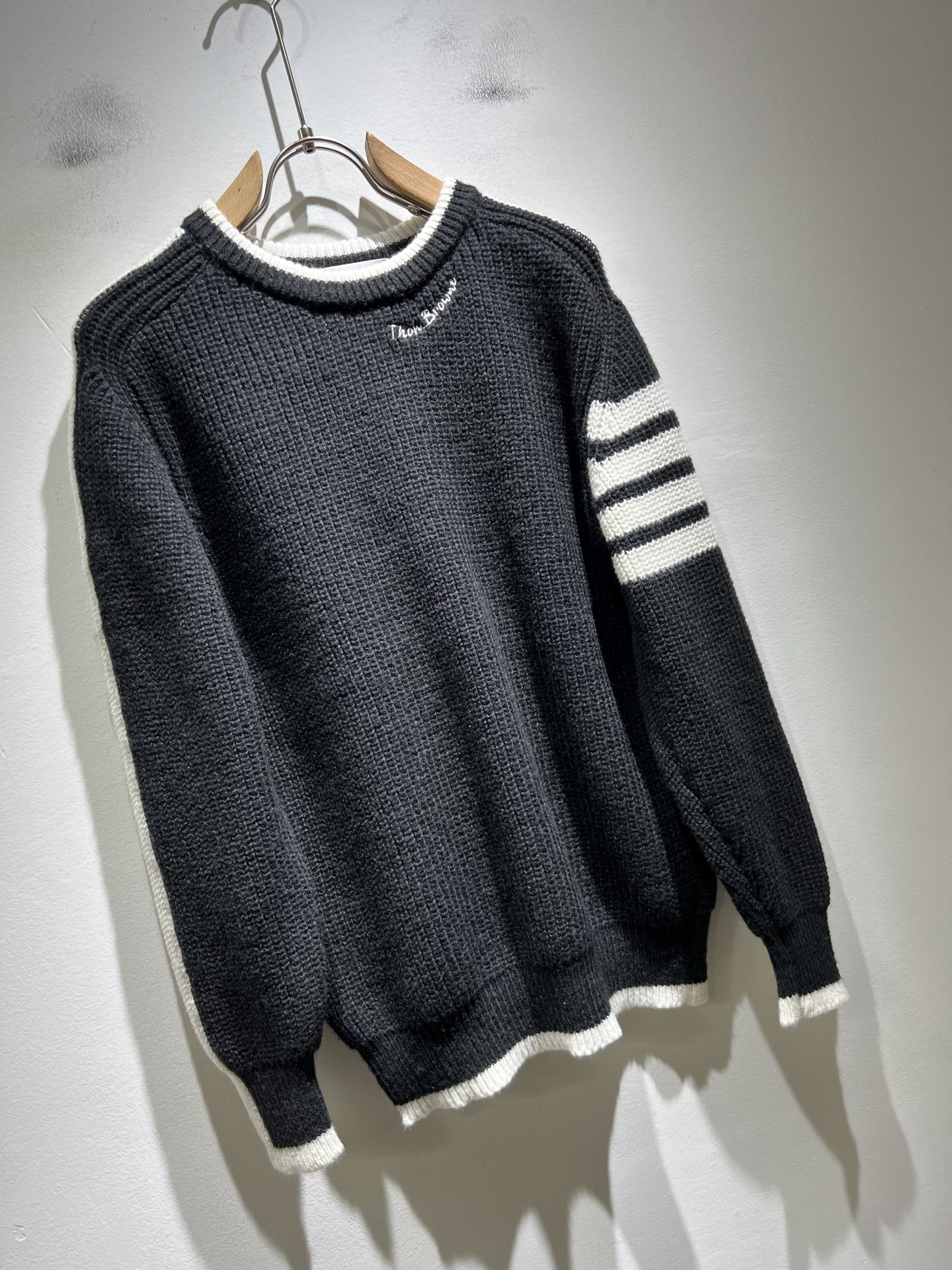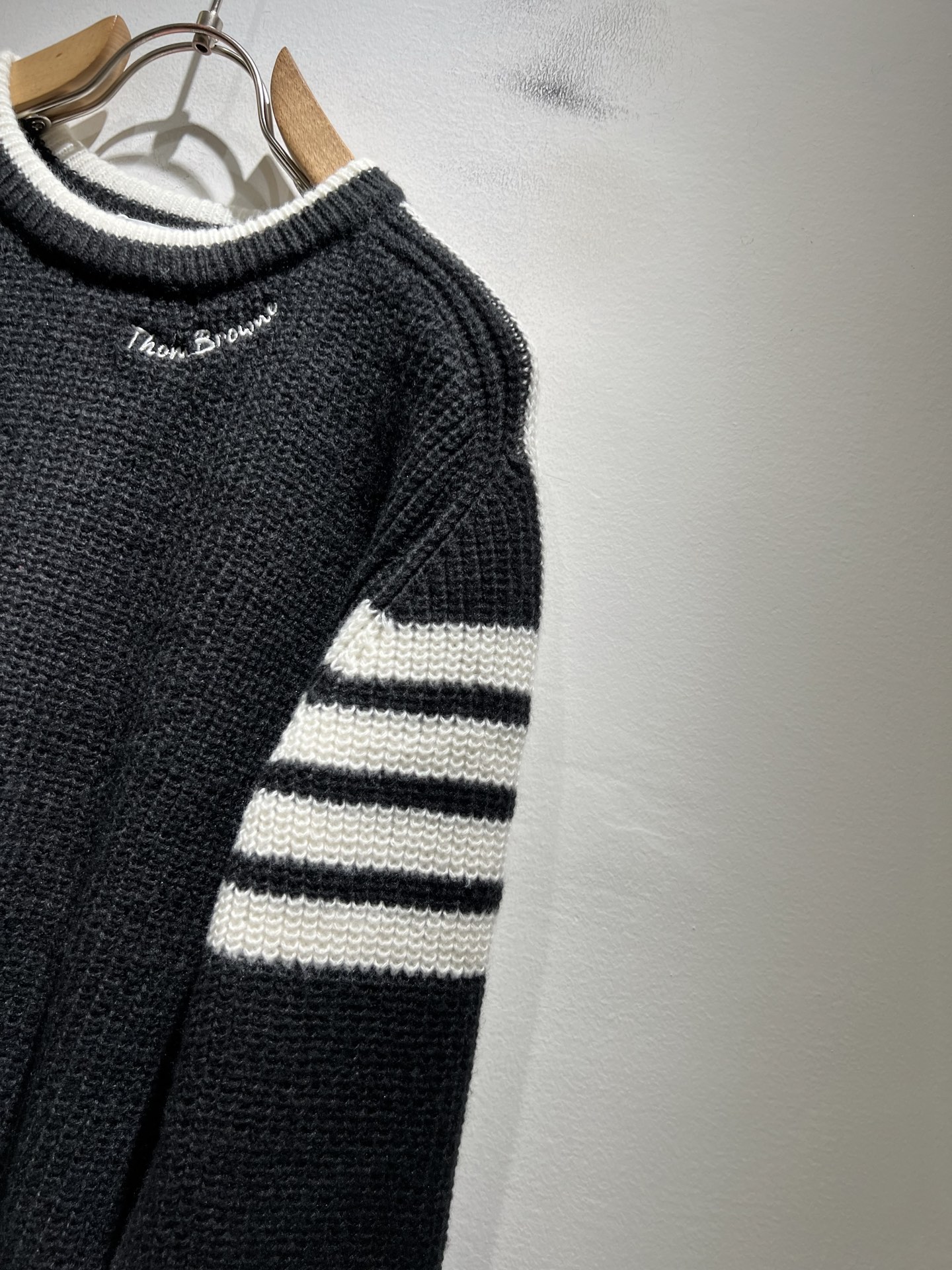 这款衣服是AAAAA 1:1 质量 (非常棒). 使用了和原版一模一样的材料. 商标部分也保持了和汤姆布朗/Thom Browne一样. 图片拍摄是实物衣服拍摄, 您所收到的实物保证和我们图片一模一样.
