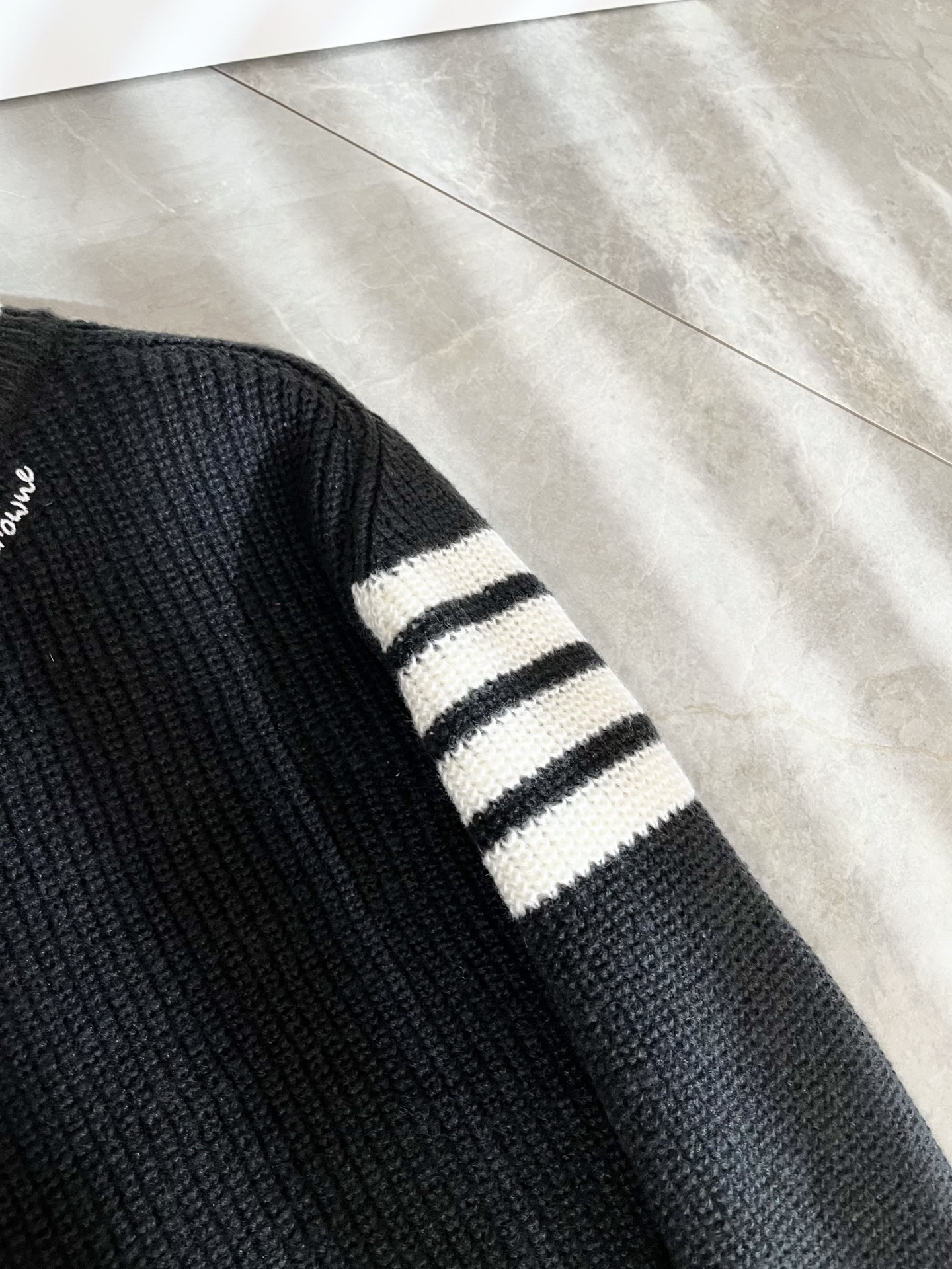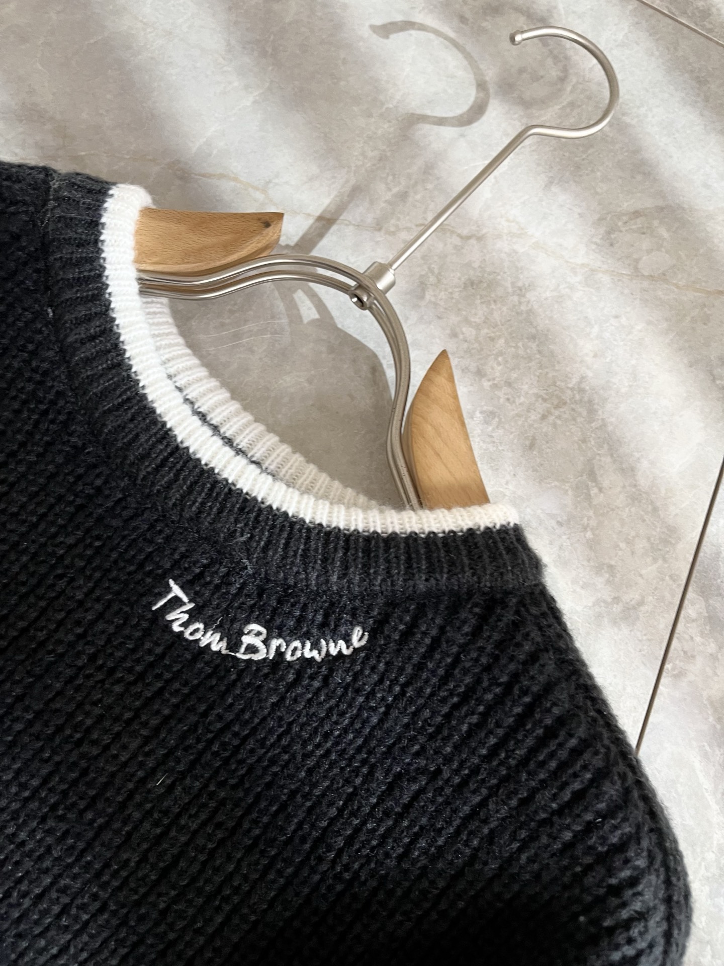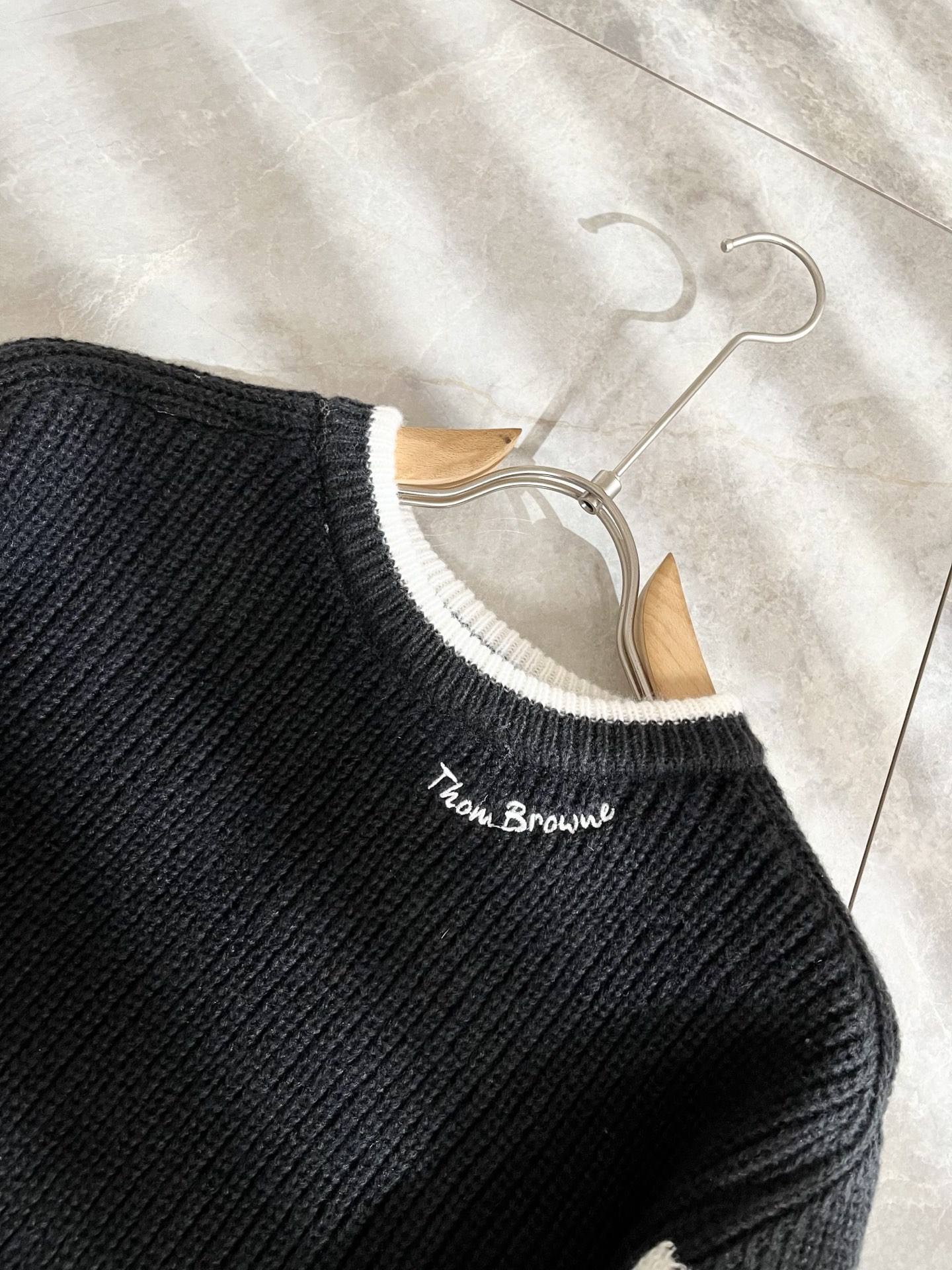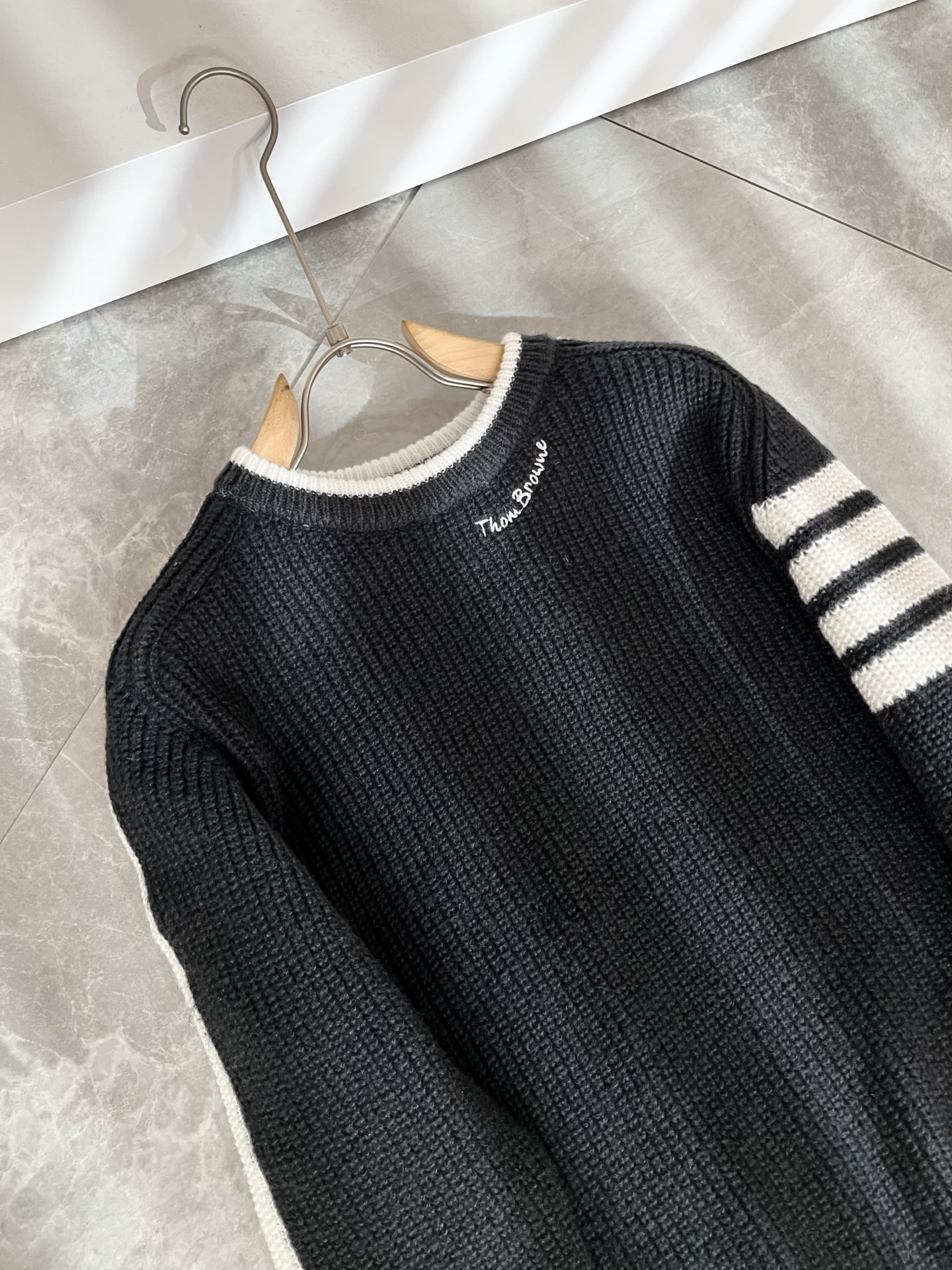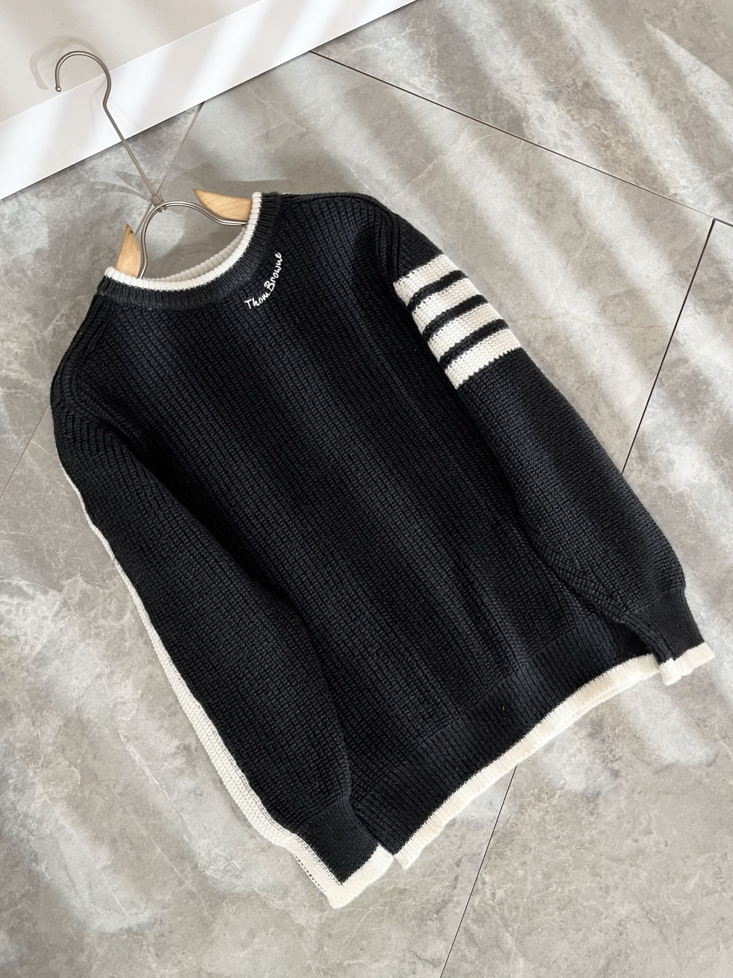 这款衣服是AAAAA 1:1 质量 (非常棒). 使用了和原版一模一样的材料. 商标部分也保持了和汤姆布朗/Thom Browne一样. 图片拍摄是实物衣服拍摄, 您所收到的实物保证和我们图片一模一样.