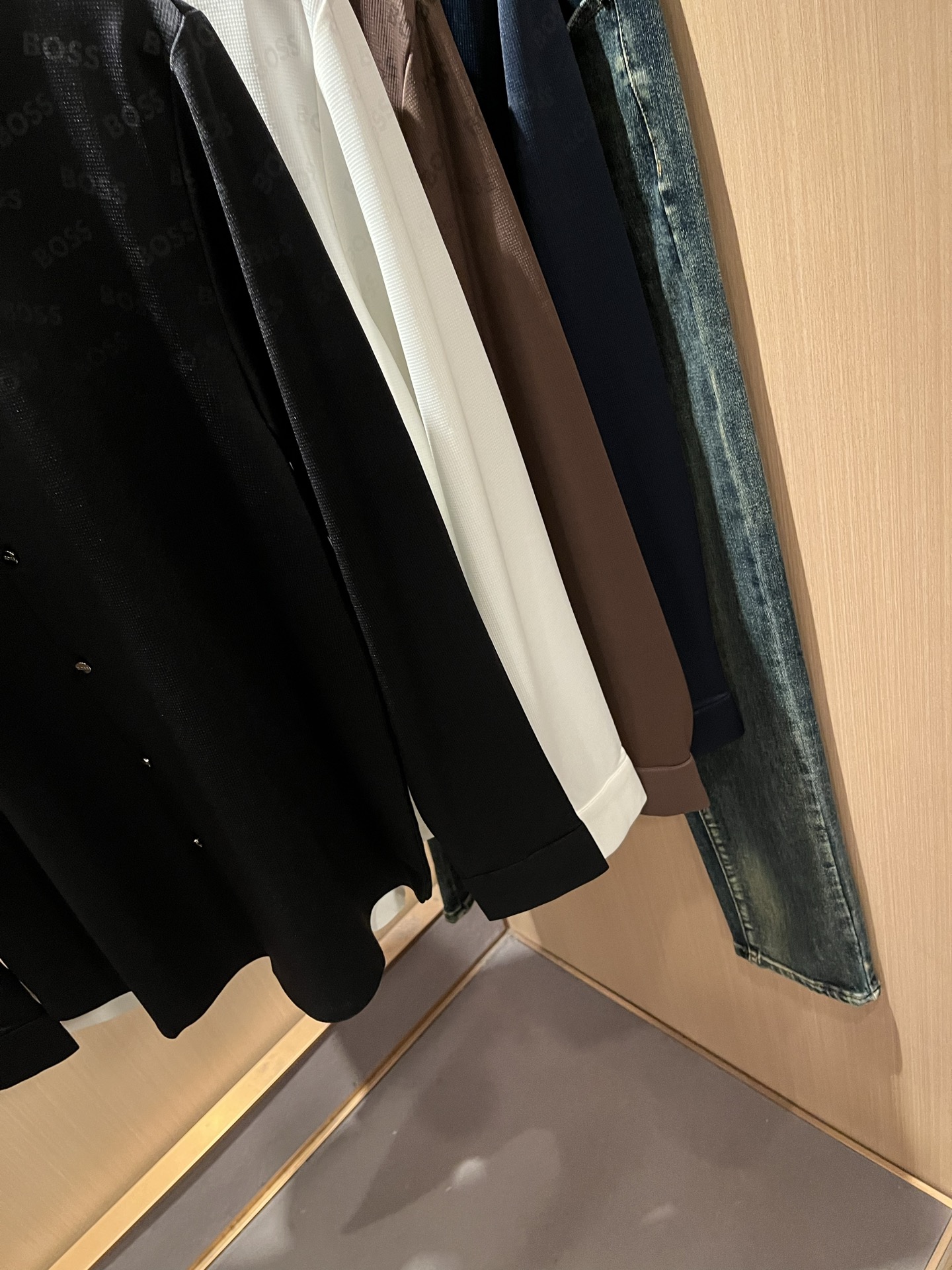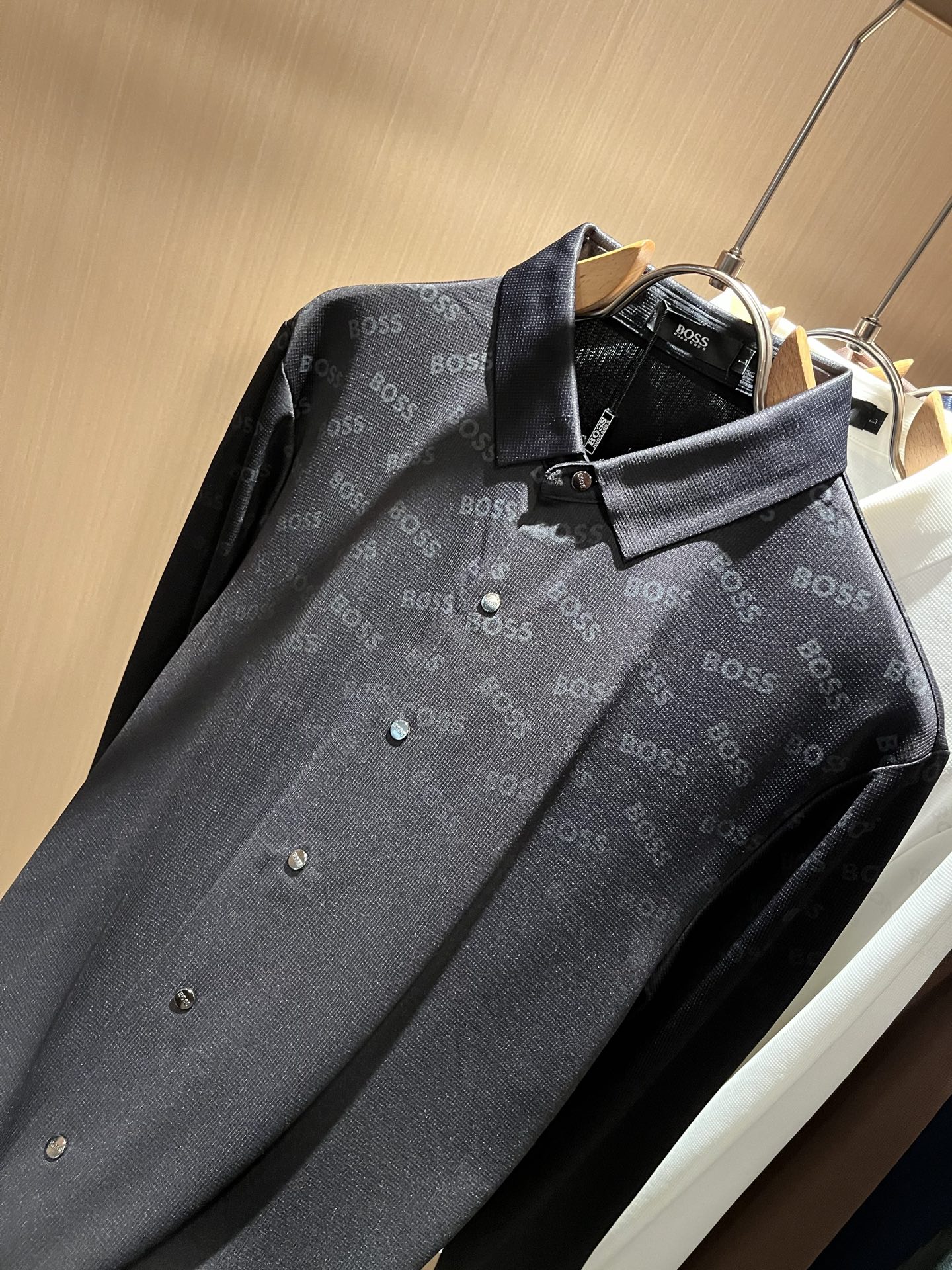 这款衣服是AAAAA 1:1 质量 (非常棒). 使用了和原版一模一样的材料. 商标部分也保持了和BOSS一样. 图片拍摄是实物衣服拍摄, 您所收到的实物保证和我们图片一模一样.
