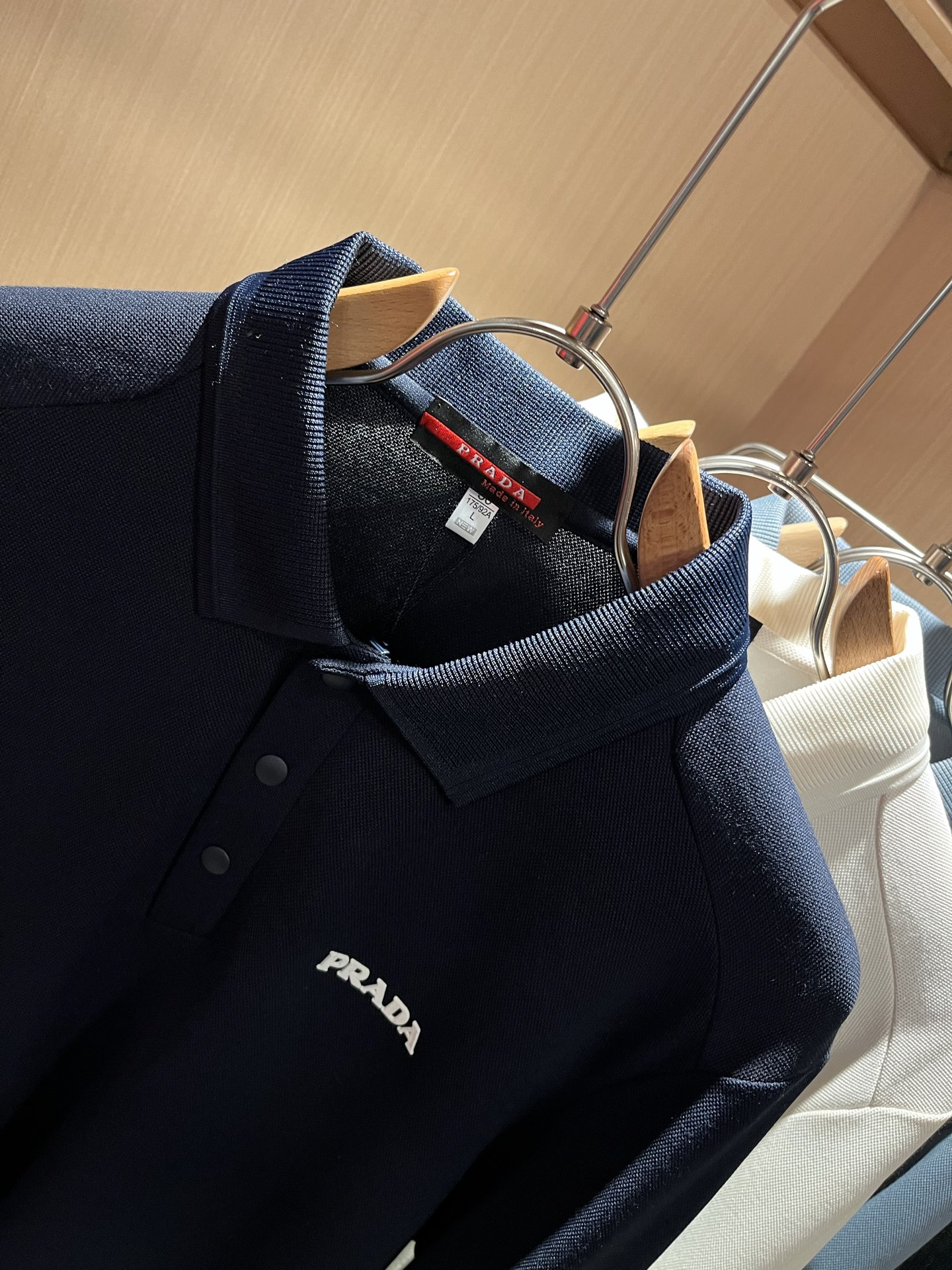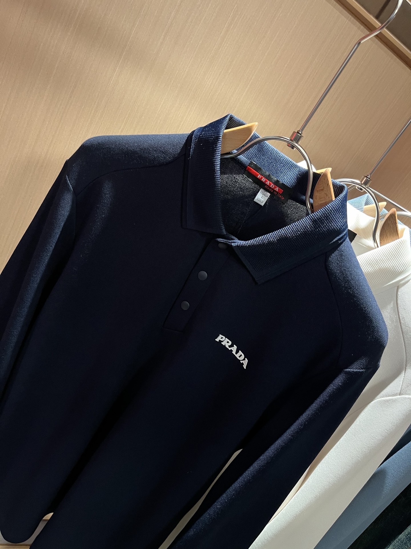 这款衣服是AAAAA 1:1 质量 (非常棒). 使用了和原版一模一样的材料. 商标部分也保持了和普拉达/Prada一样. 图片拍摄是实物衣服拍摄, 您所收到的实物保证和我们图片一模一样.
