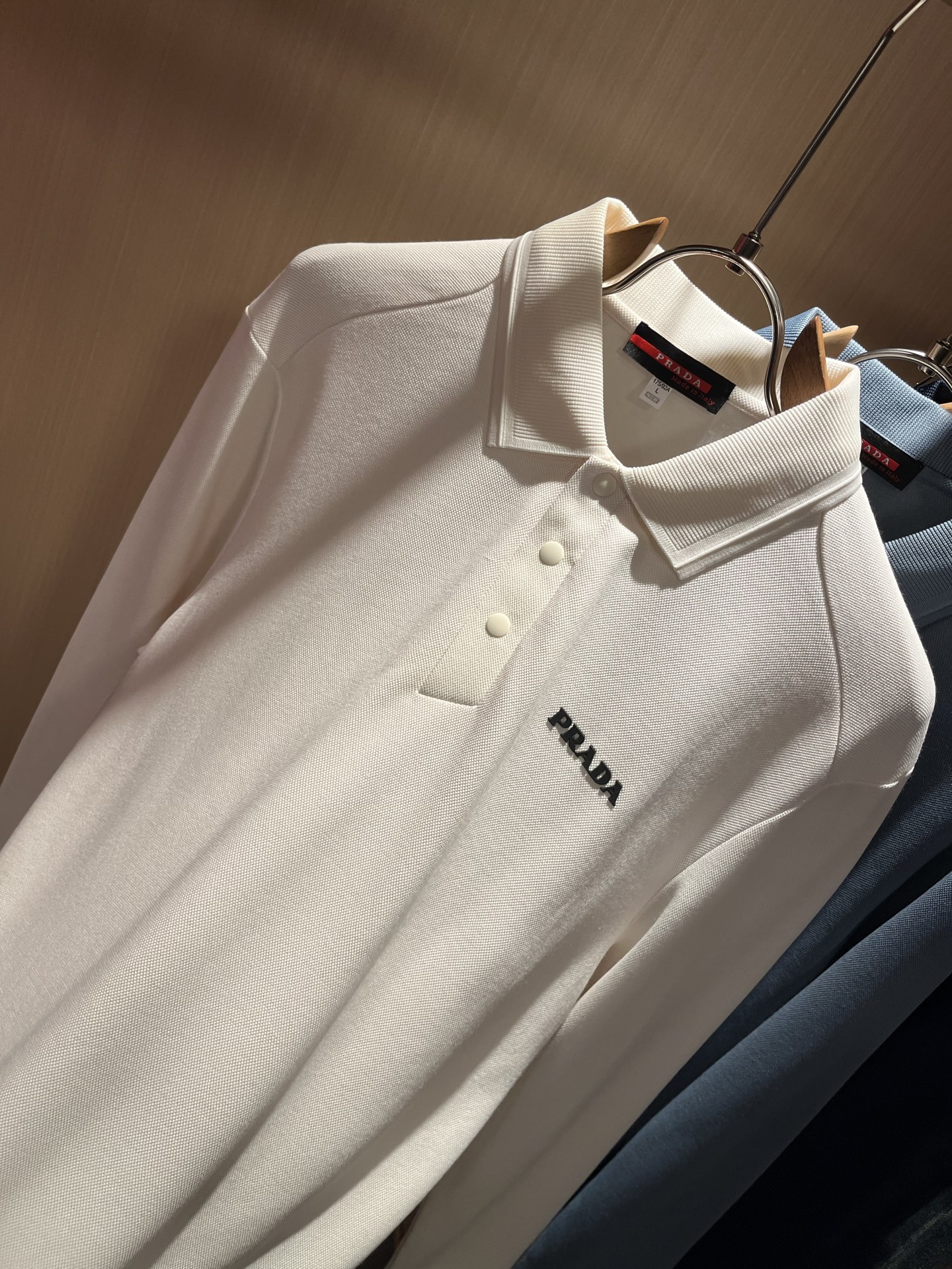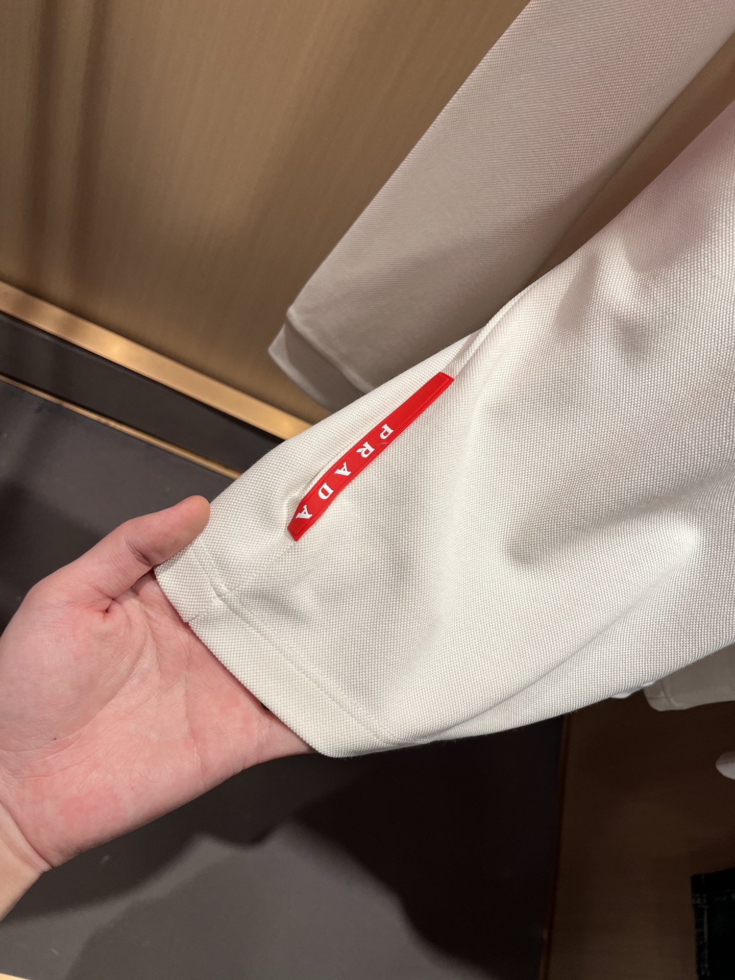 这款衣服是AAAAA 1:1 质量 (非常棒). 使用了和原版一模一样的材料. 商标部分也保持了和普拉达/Prada一样. 图片拍摄是实物衣服拍摄, 您所收到的实物保证和我们图片一模一样.