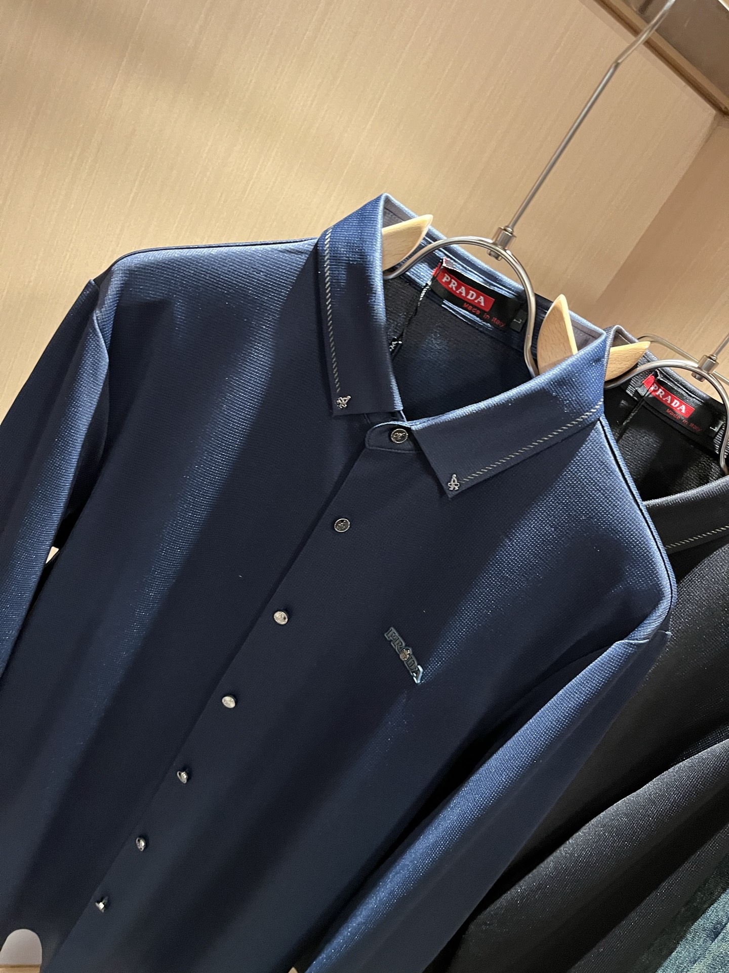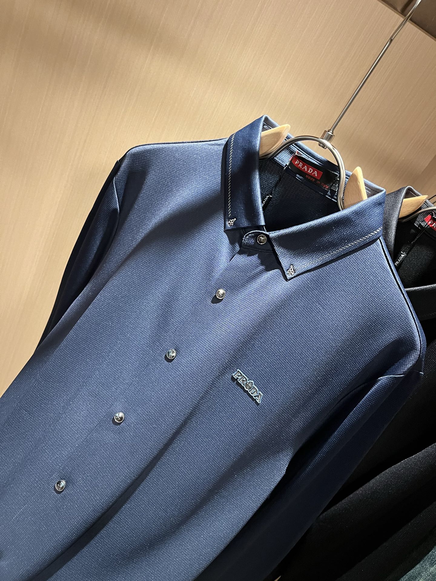 这款衣服是AAAAA 1:1 质量 (非常棒). 使用了和原版一模一样的材料. 商标部分也保持了和普拉达/Prada一样. 图片拍摄是实物衣服拍摄, 您所收到的实物保证和我们图片一模一样.