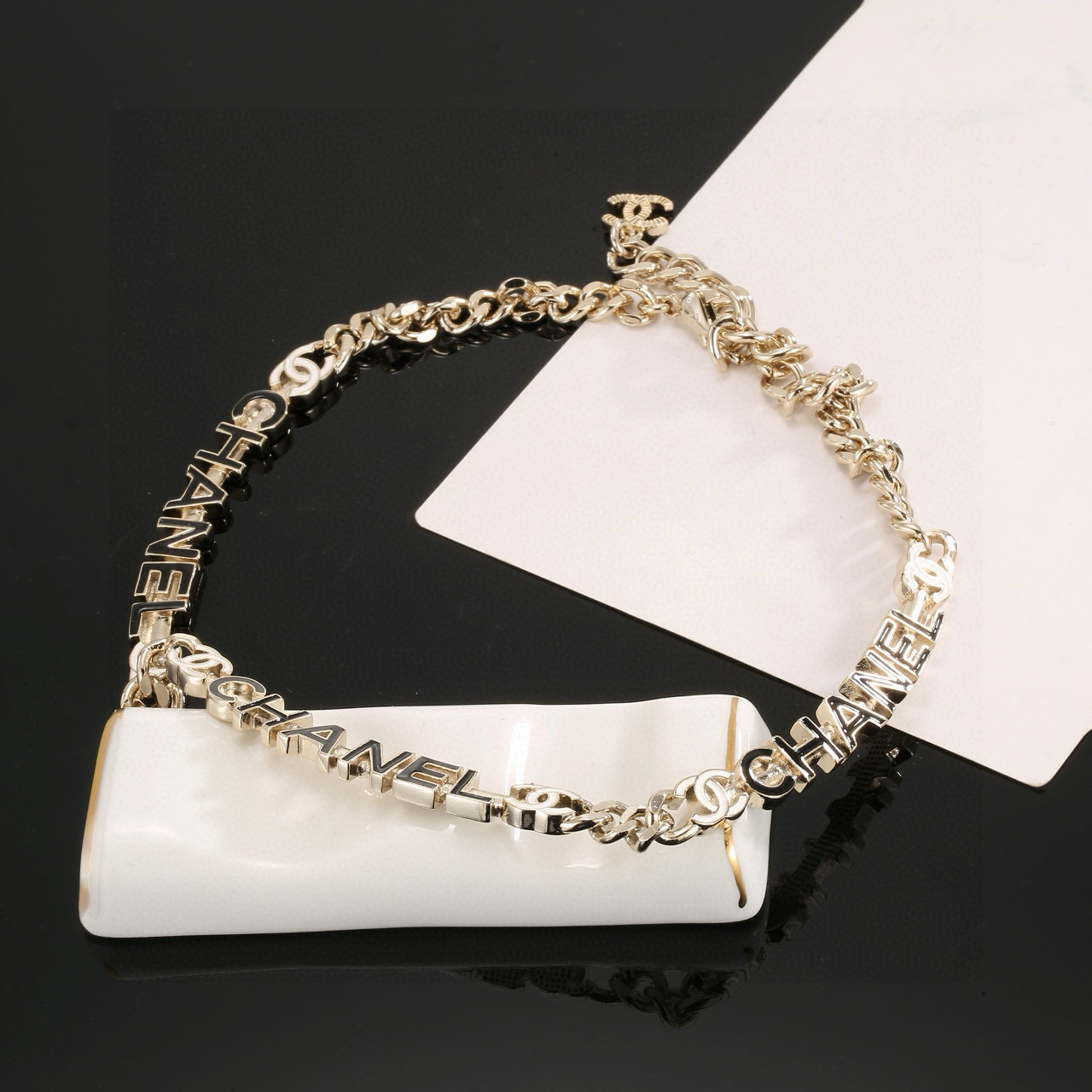 这款首饰是AAAAA 1:1 质量 (非常棒). 使用了和原版一模一样的材料. 商标部分也保持了和香奈儿/Chanel一样. 图片拍摄是实物首饰拍摄, 您所收到的实物保证和我们图片一模一样.