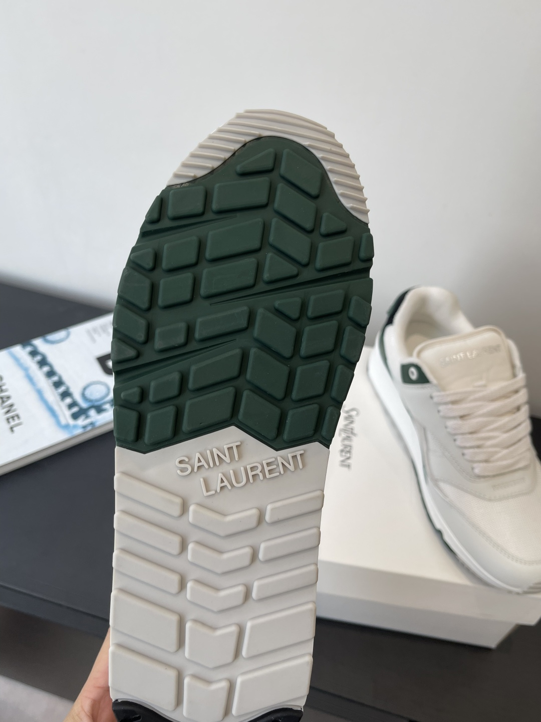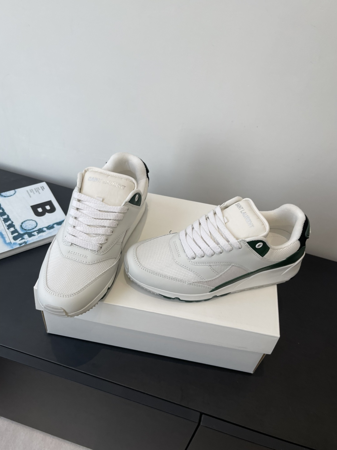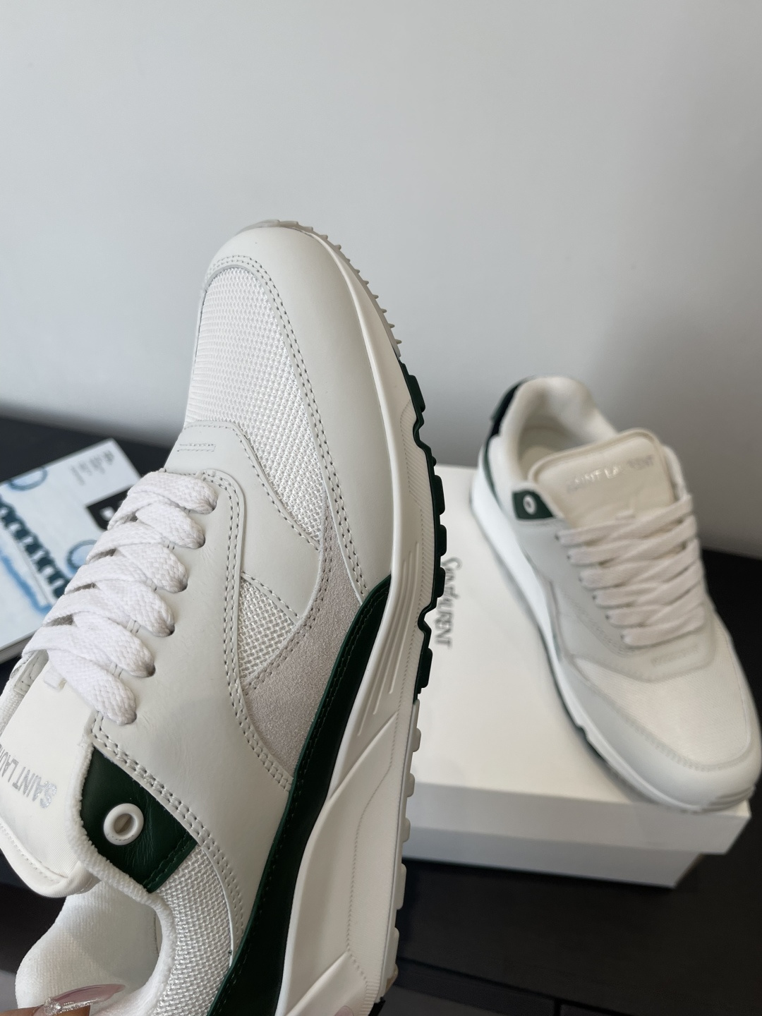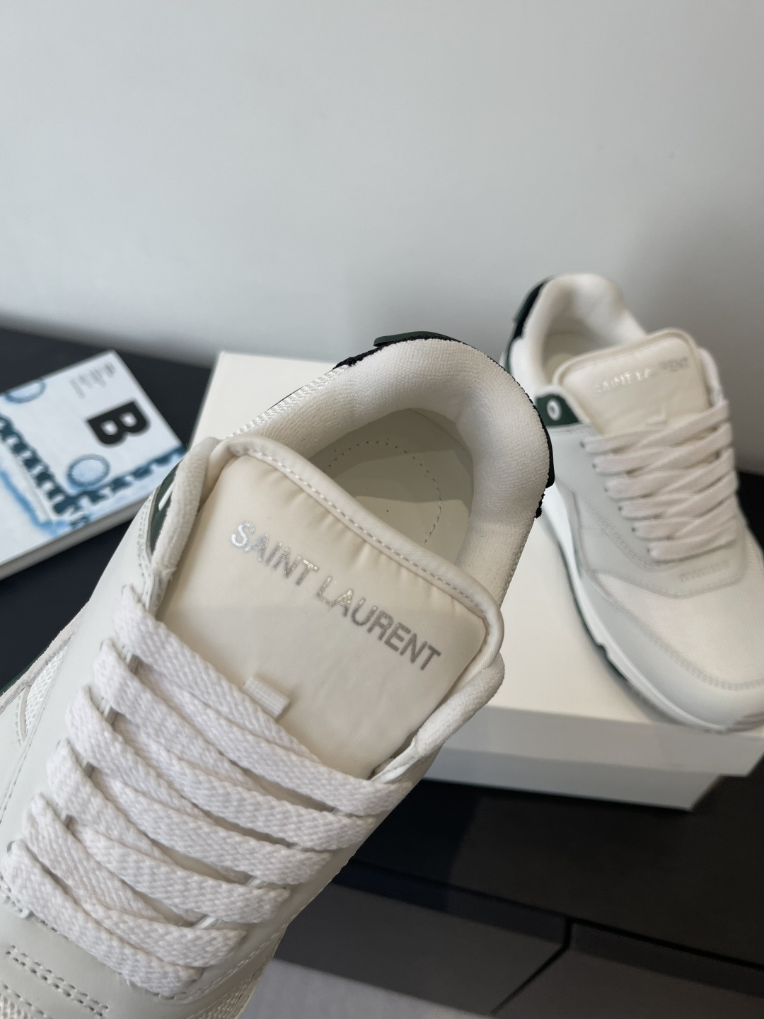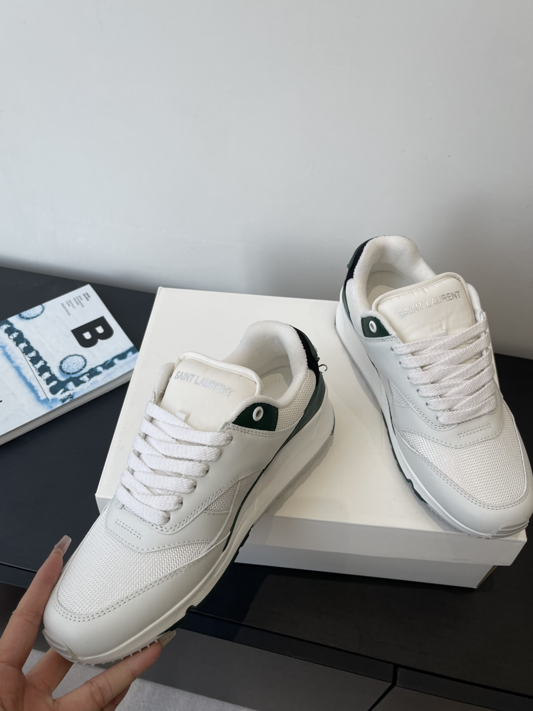 这款鞋子是AAAAA 1:1 质量 (非常棒). 使用了和原版一模一样的材料. 商标部分也保持了和圣罗兰/Saint Laurent一样. 图片拍摄是实物鞋子拍摄, 您所收到的实物保证和我们图片一模一样.