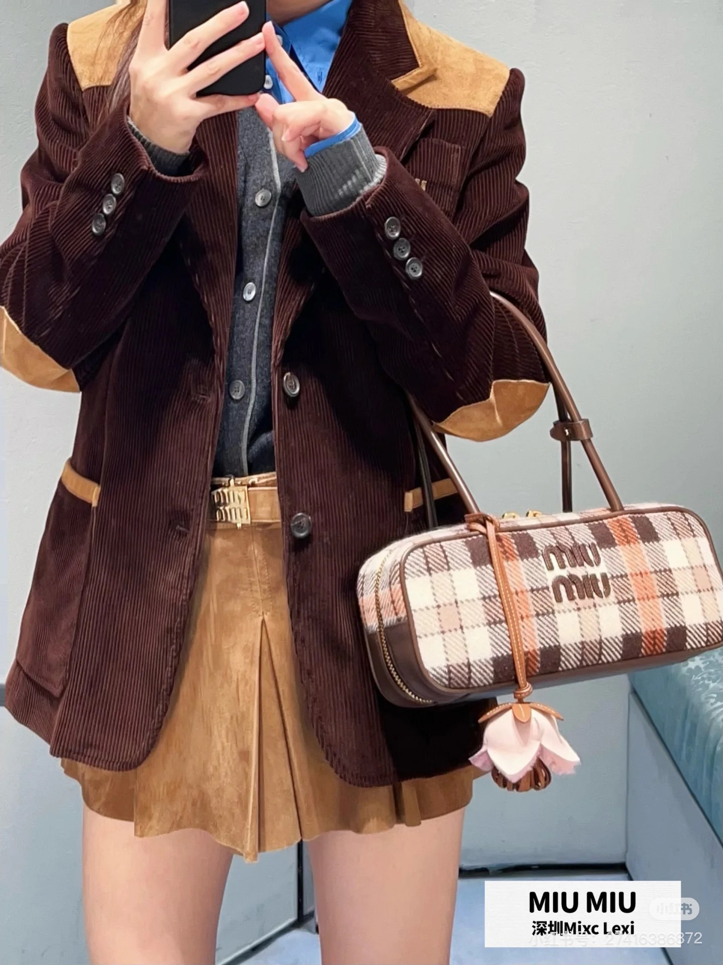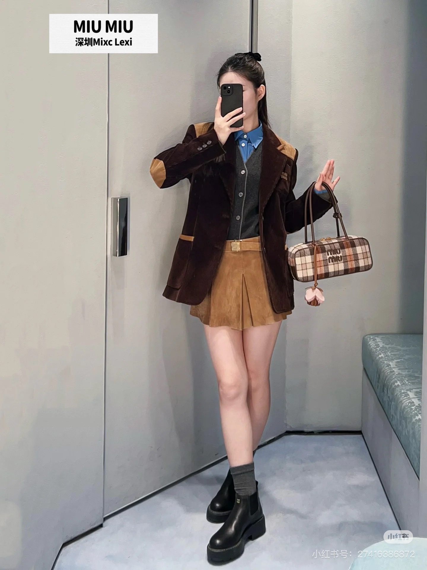 这款衣服是AAAAA 1:1 质量 (非常棒). 使用了和原版一模一样的材料. 商标部分也保持了和缪缪/Miu Miu一样. 图片拍摄是实物衣服拍摄, 您所收到的实物保证和我们图片一模一样.