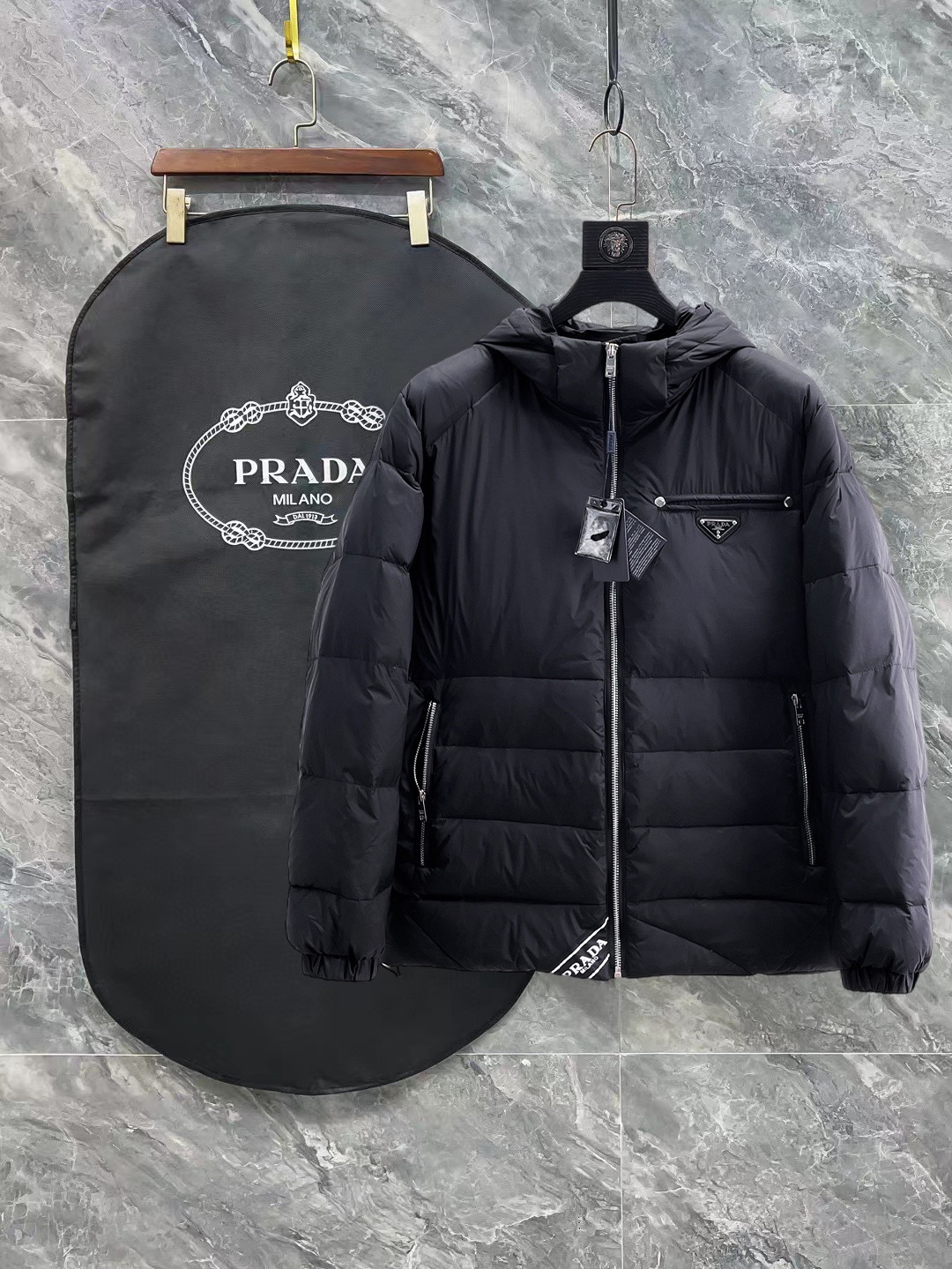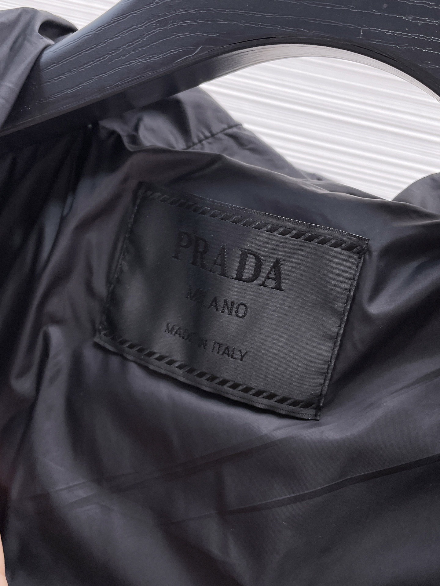 这款衣服是AAAAA 1:1 质量 (非常棒). 使用了和原版一模一样的材料. 商标部分也保持了和普拉达/Prada一样. 图片拍摄是实物衣服拍摄, 您所收到的实物保证和我们图片一模一样.