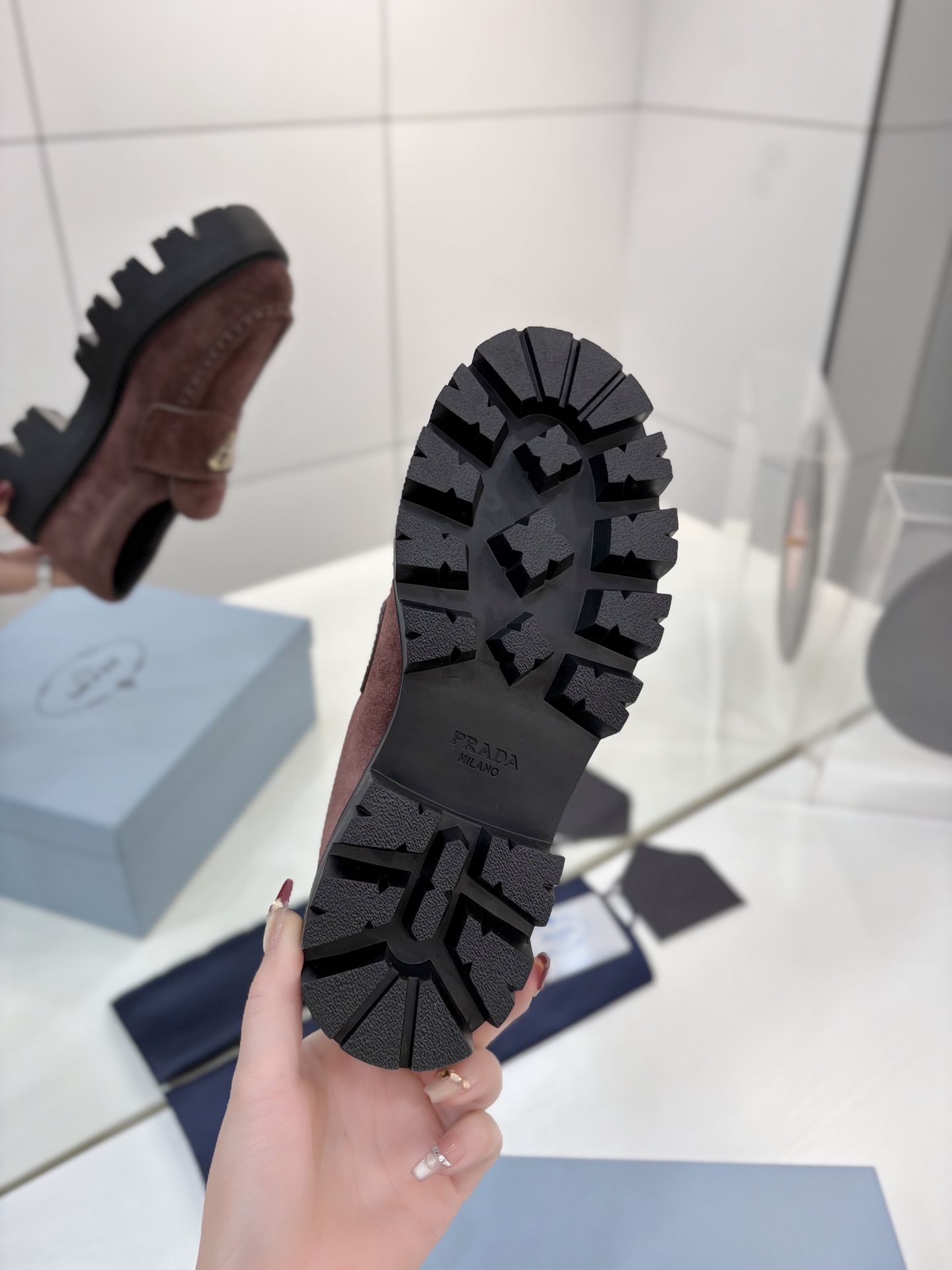 这款鞋子是AAAAA 1:1 质量 (非常棒). 使用了和原版一模一样的材料. 商标部分也保持了和普拉达/Prada一样. 图片拍摄是实物鞋子拍摄, 您所收到的实物保证和我们图片一模一样.