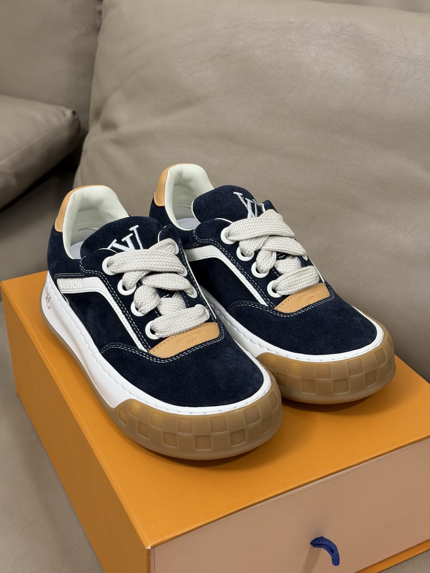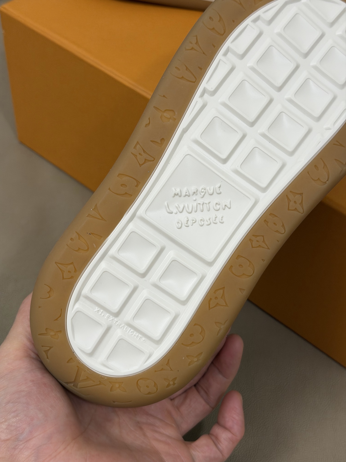 这款鞋子是AAAAA 1:1 质量 (非常棒). 使用了和原版一模一样的材料. 商标部分也保持了和路易威登/Louis Vuitton一样. 图片拍摄是实物鞋子拍摄, 您所收到的实物保证和我们图片一模一样.
