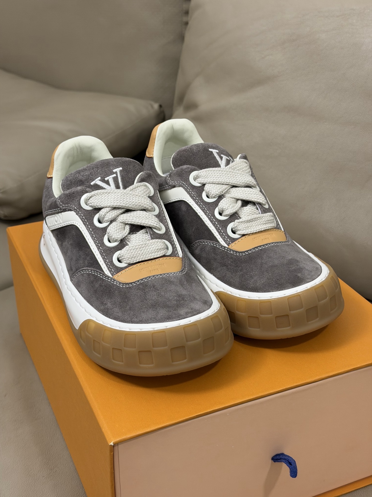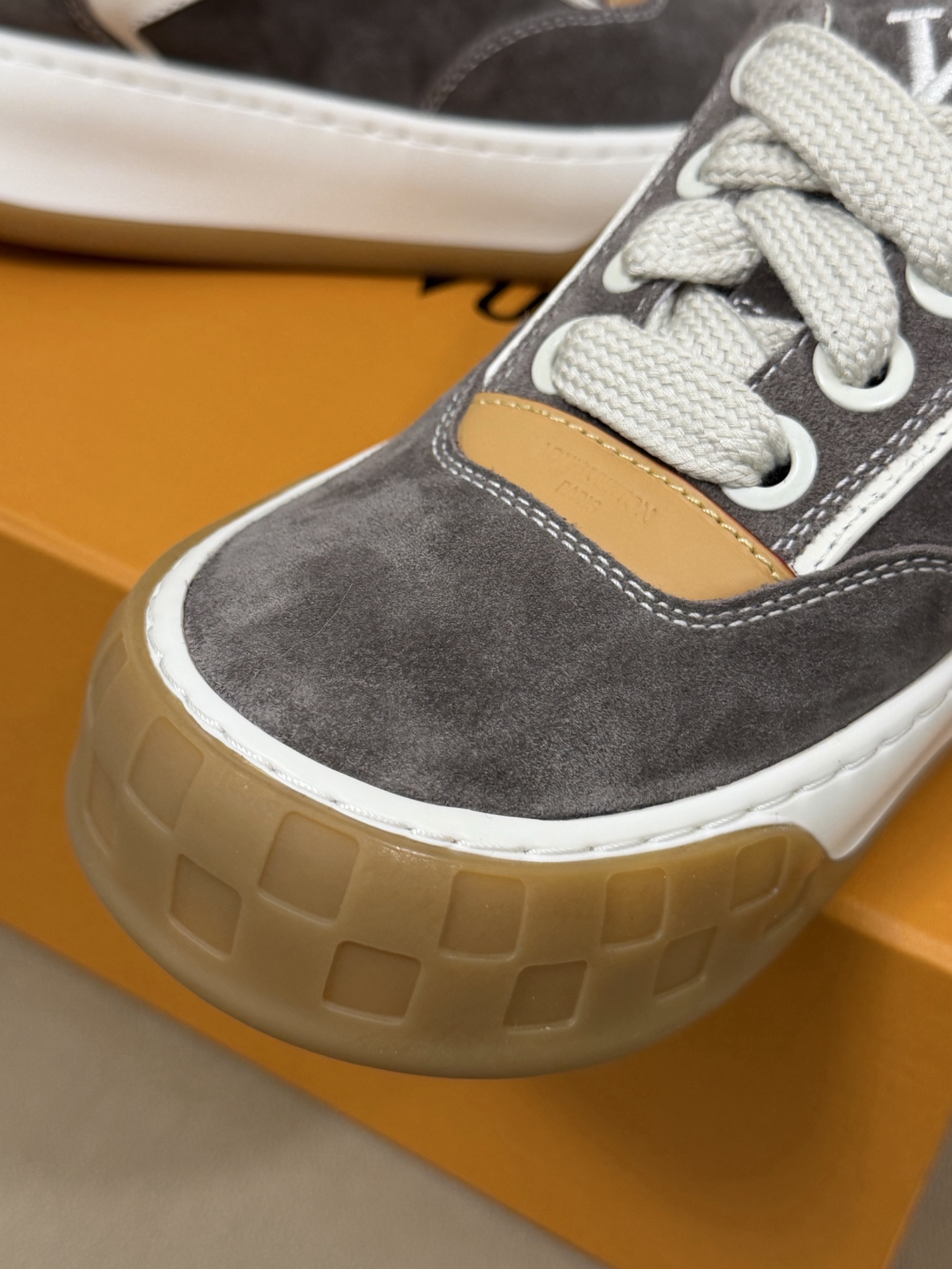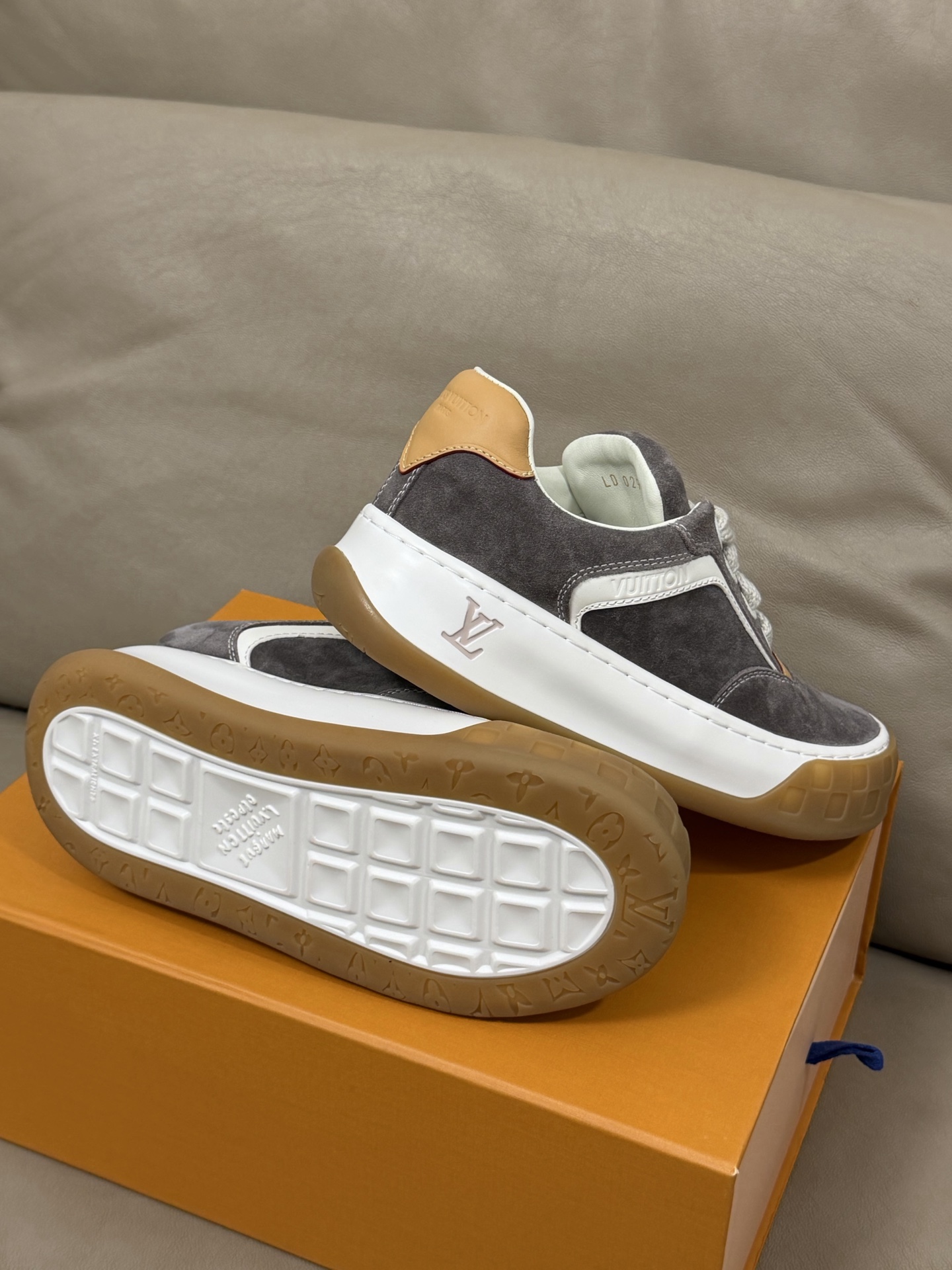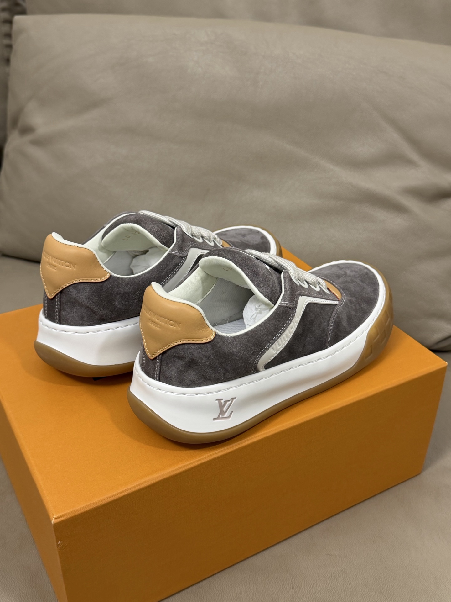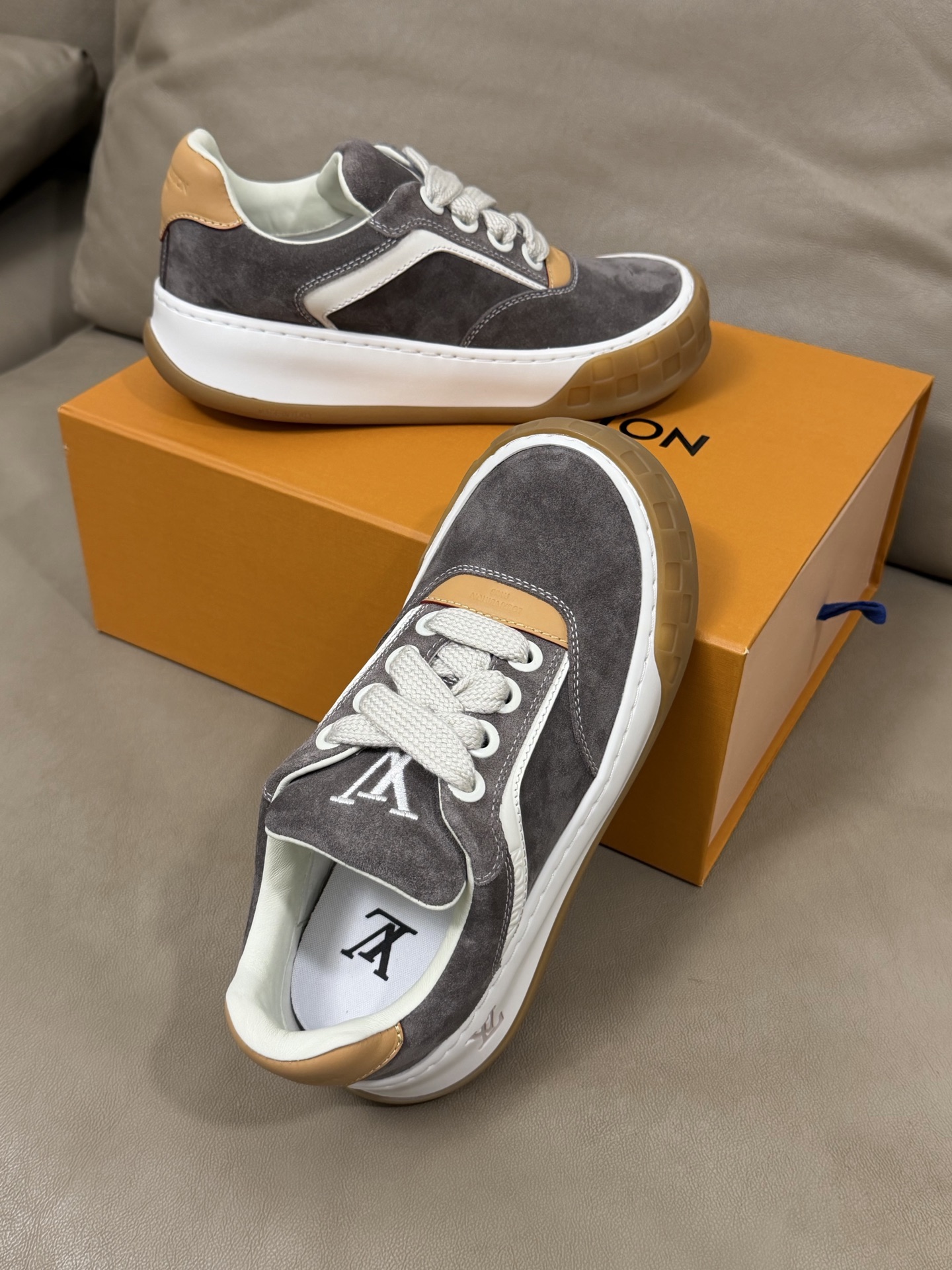 这款鞋子是AAAAA 1:1 质量 (非常棒). 使用了和原版一模一样的材料. 商标部分也保持了和路易威登/Louis Vuitton一样. 图片拍摄是实物鞋子拍摄, 您所收到的实物保证和我们图片一模一样.