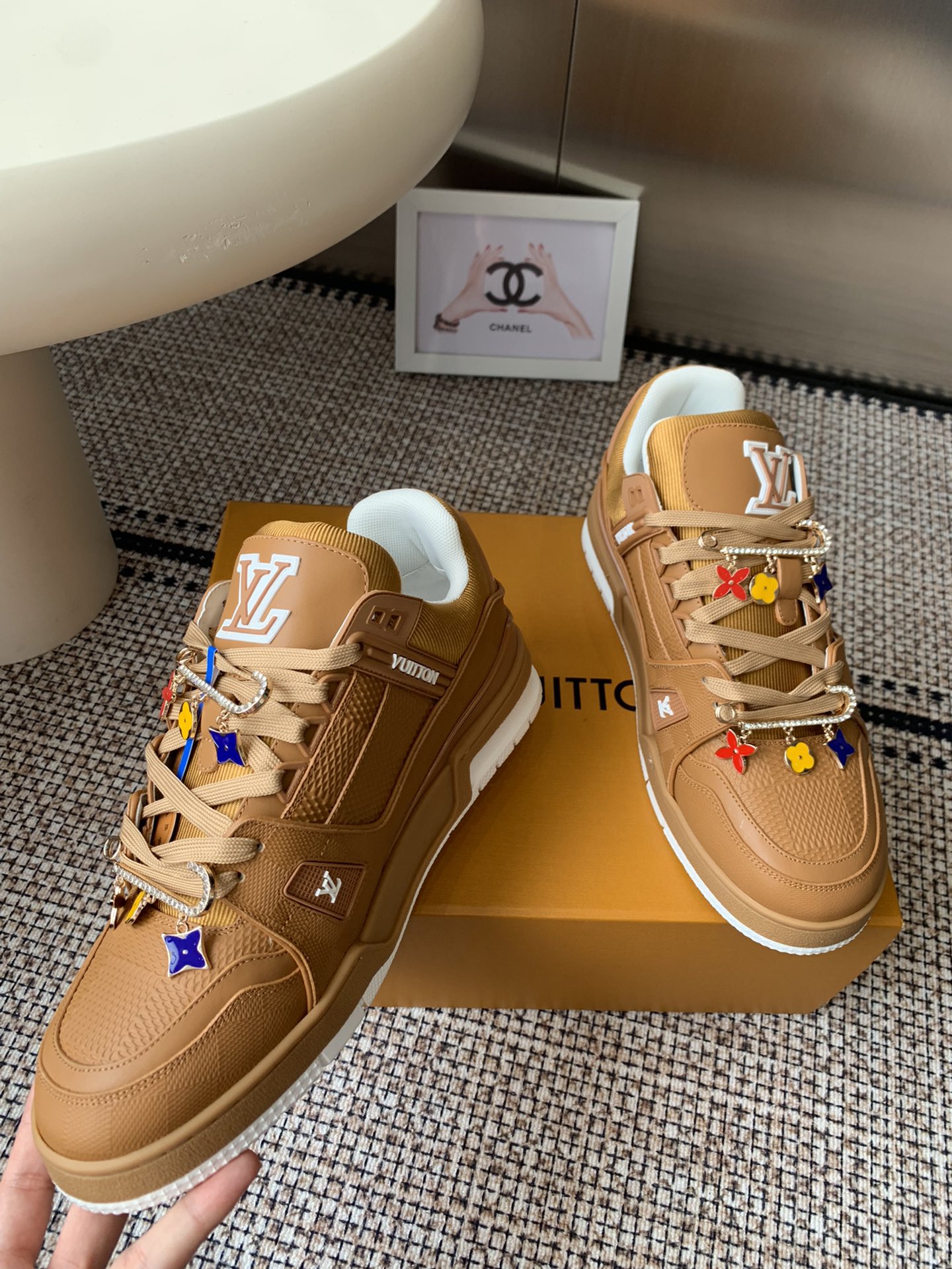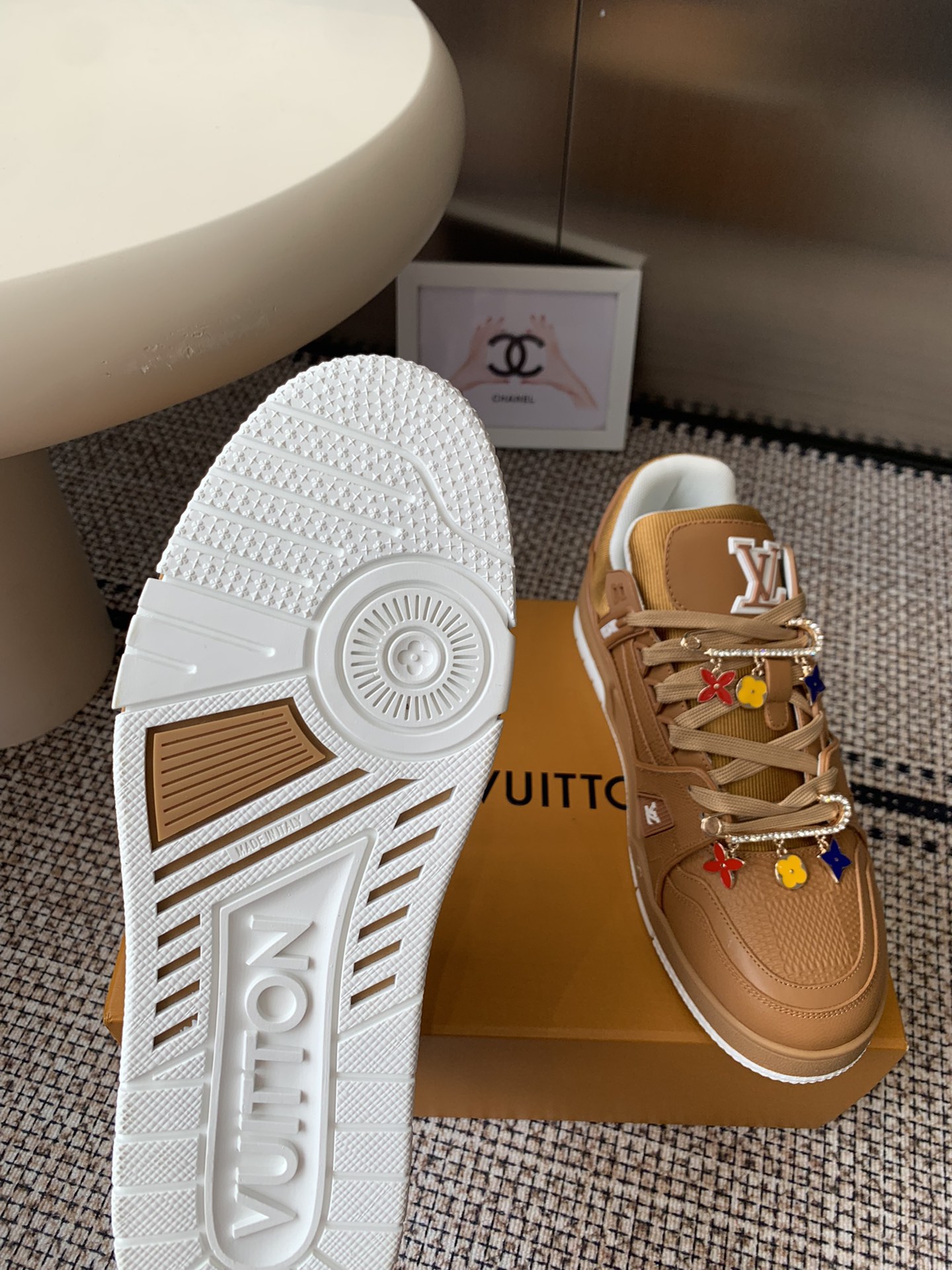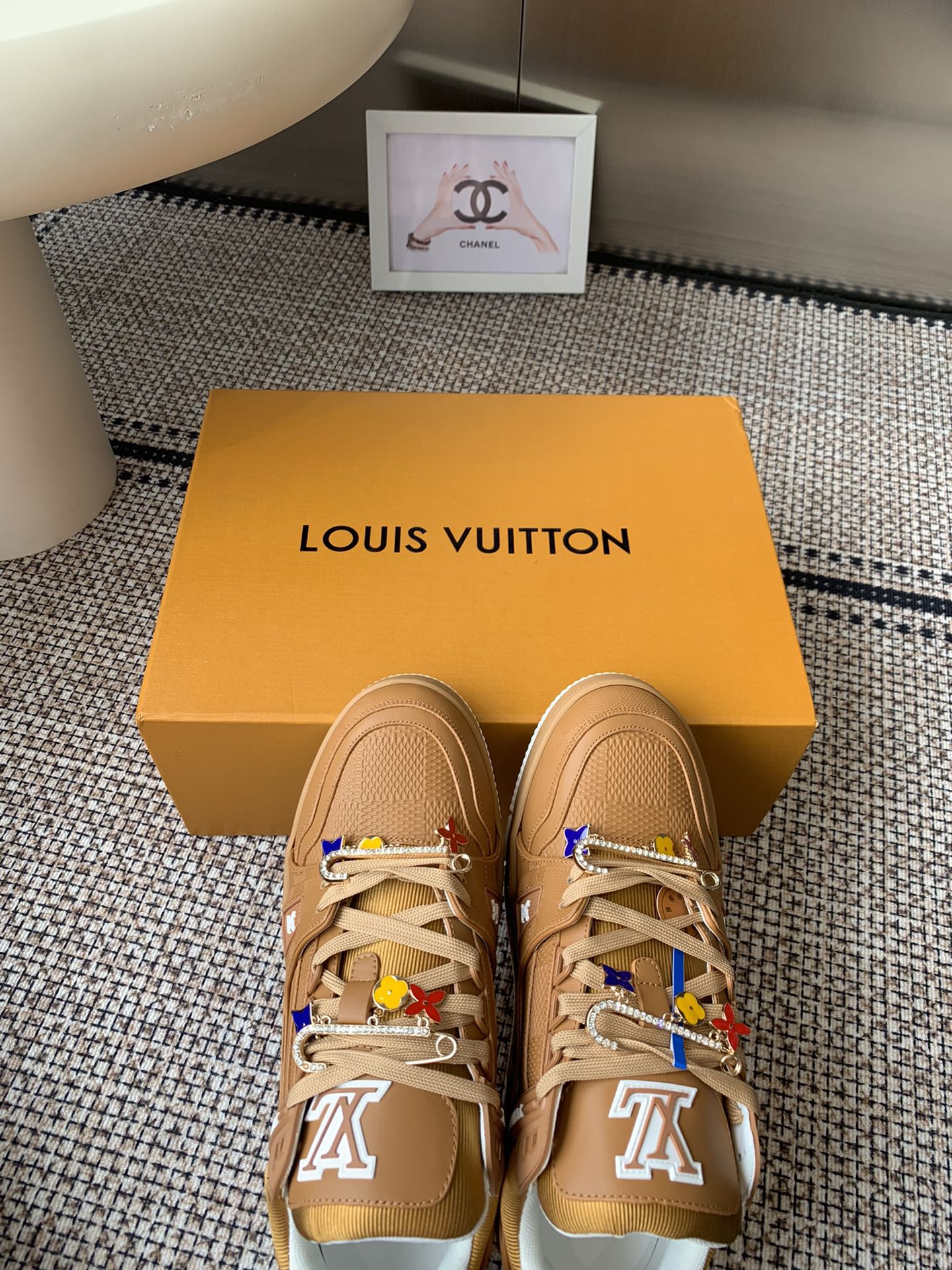 这款鞋子是AAAAA 1:1 质量 (非常棒). 使用了和原版一模一样的材料. 商标部分也保持了和路易威登/Louis Vuitton一样. 图片拍摄是实物鞋子拍摄, 您所收到的实物保证和我们图片一模一样.