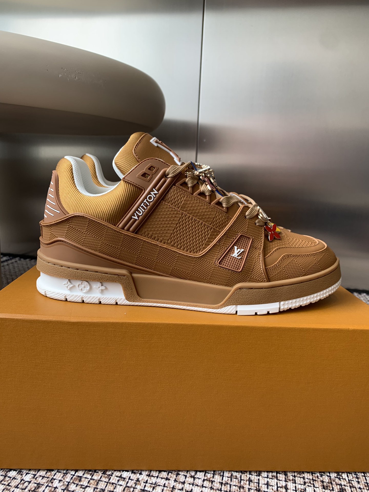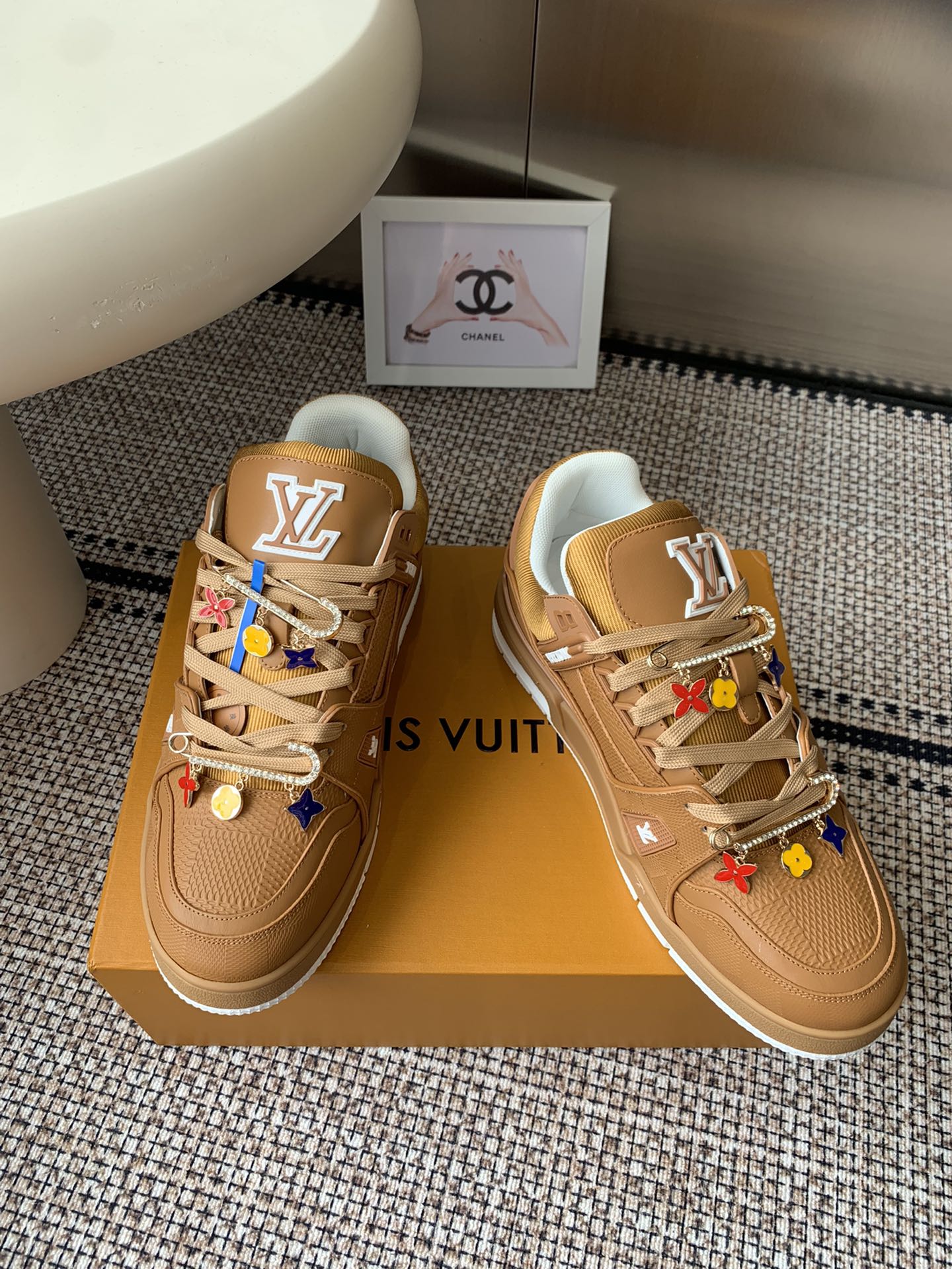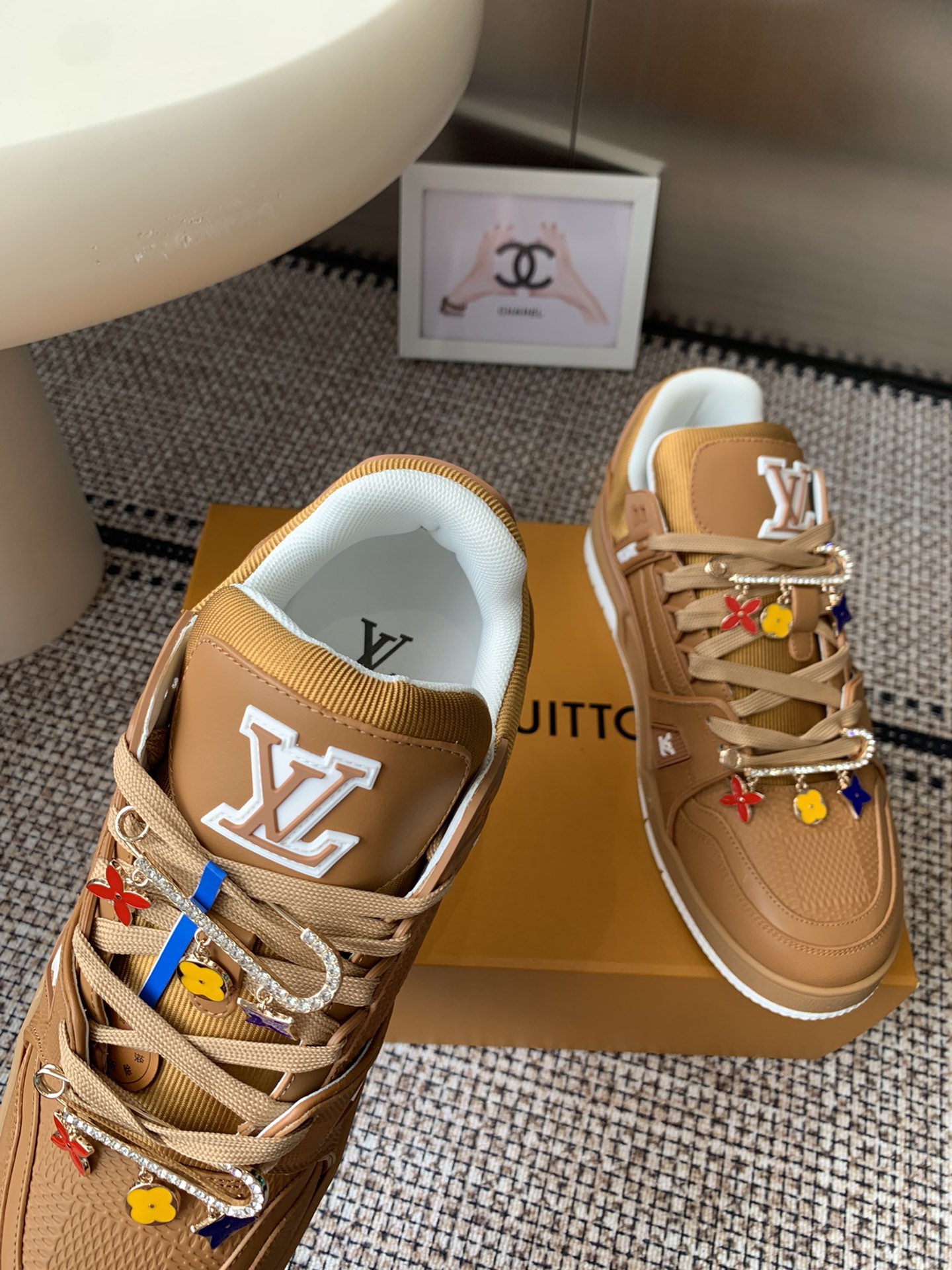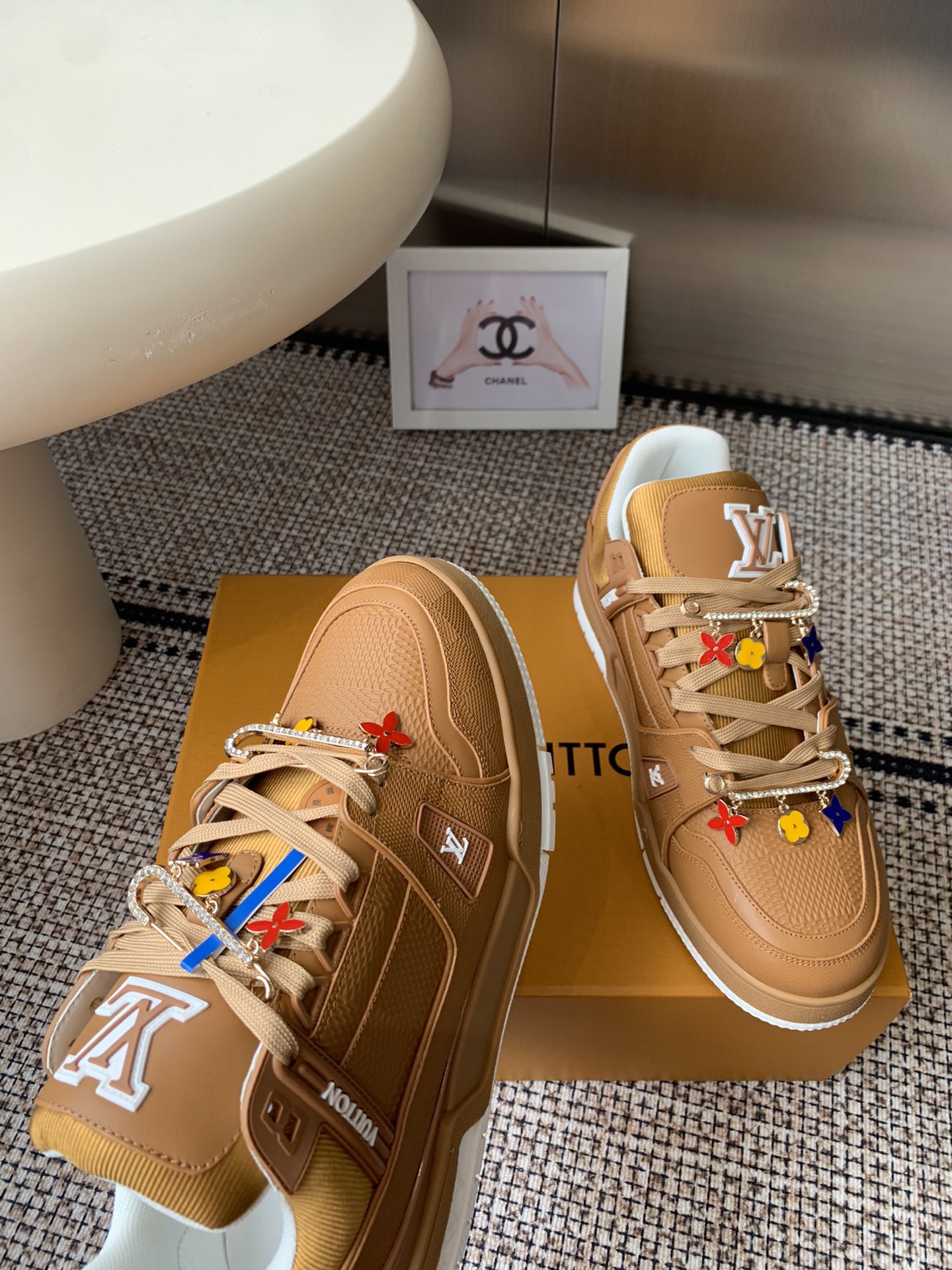 这款鞋子是AAAAA 1:1 质量 (非常棒). 使用了和原版一模一样的材料. 商标部分也保持了和路易威登/Louis Vuitton一样. 图片拍摄是实物鞋子拍摄, 您所收到的实物保证和我们图片一模一样.