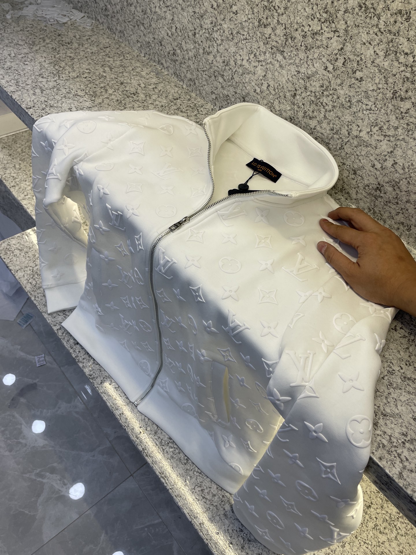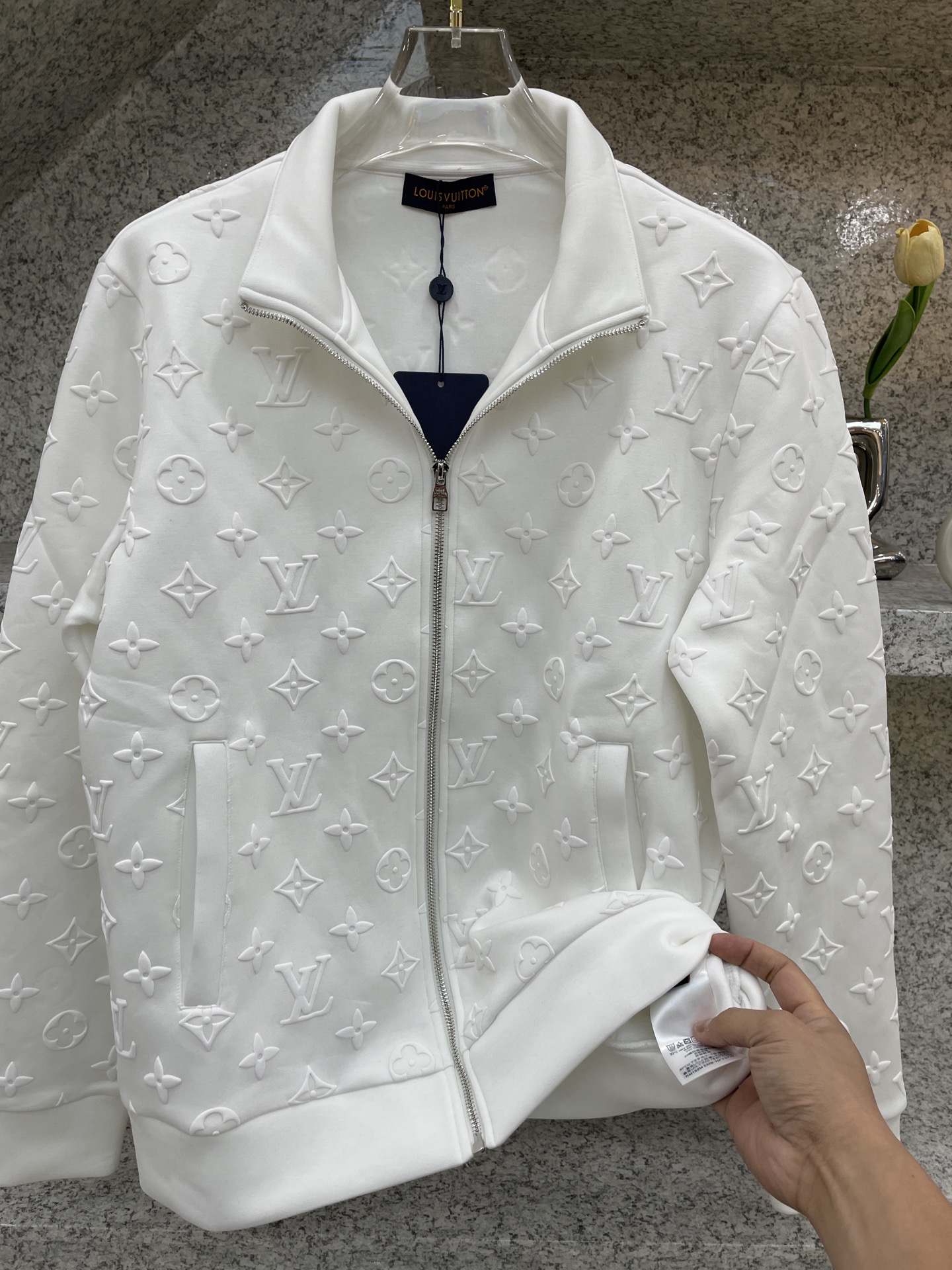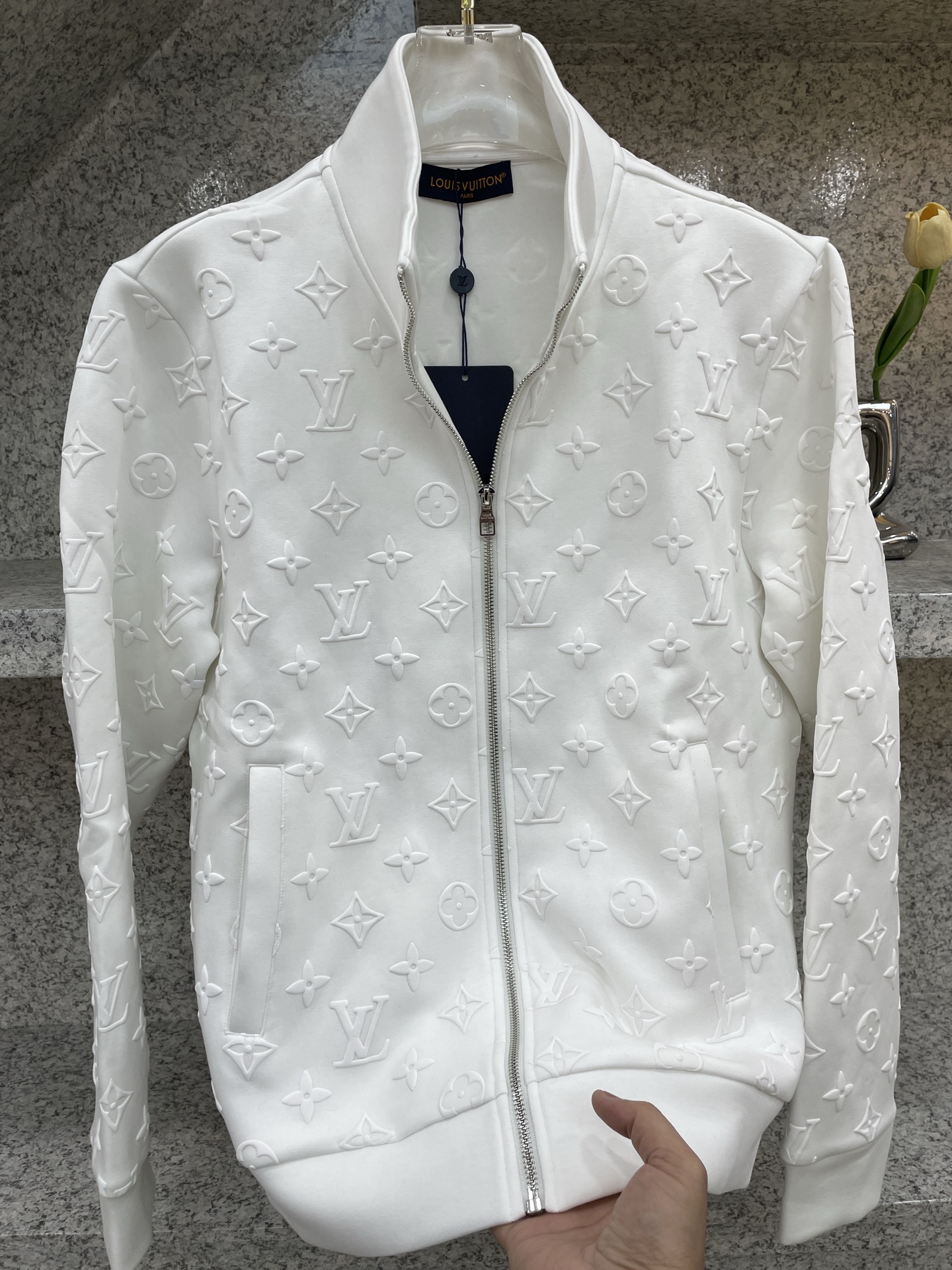 这款衣服是AAAAA 1:1 质量 (非常棒). 使用了和原版一模一样的材料. 商标部分也保持了和路易威登/Louis Vuitton一样. 图片拍摄是实物衣服拍摄, 您所收到的实物保证和我们图片一模一样.