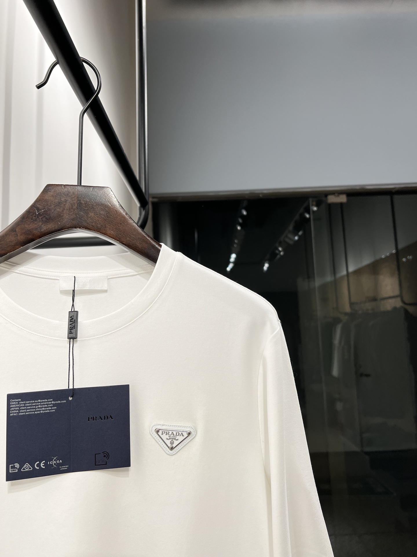 这款衣服是AAAAA 1:1 质量 (非常棒). 使用了和原版一模一样的材料. 商标部分也保持了和普拉达/Prada一样. 图片拍摄是实物衣服拍摄, 您所收到的实物保证和我们图片一模一样.
