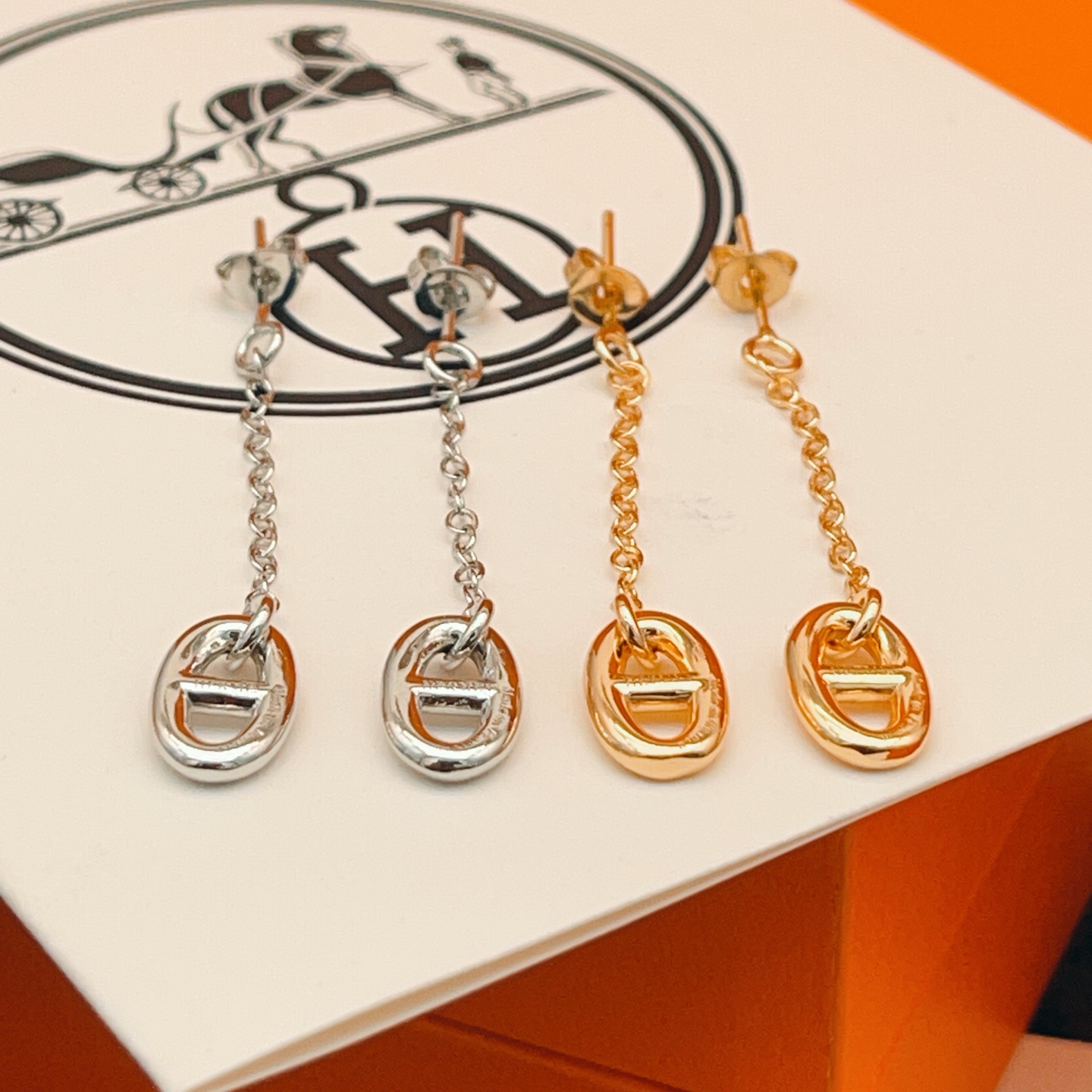 这款首饰是AAAAA 1:1 质量 (非常棒). 使用了和原版一模一样的材料. 商标部分也保持了和爱马仕/Hermes一样. 图片拍摄是实物首饰拍摄, 您所收到的实物保证和我们图片一模一样.
