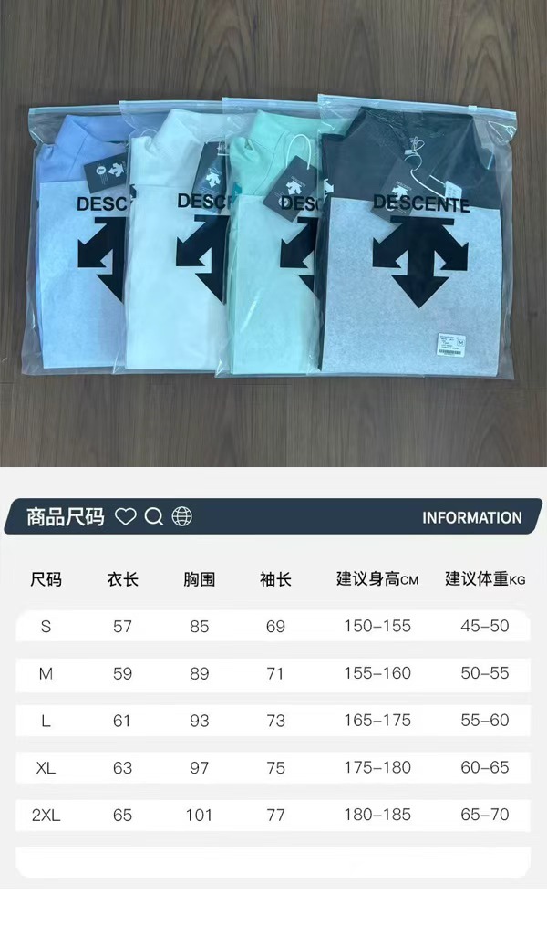 这款衣服是AAAAA 1:1 质量 (非常棒). 使用了和原版一模一样的材料. 商标部分也保持了和Descente一样. 图片拍摄是实物衣服拍摄, 您所收到的实物保证和我们图片一模一样.