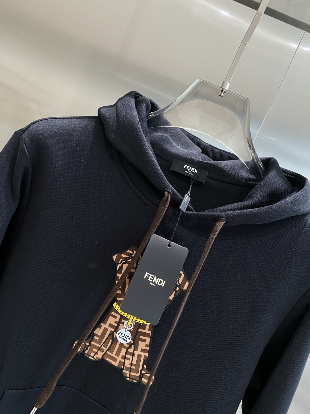 这款衣服是AAAAA 1:1 质量 (非常棒). 使用了和原版一模一样的材料. 商标部分也保持了和芬迪/Fendi一样. 图片拍摄是实物衣服拍摄, 您所收到的实物保证和我们图片一模一样.