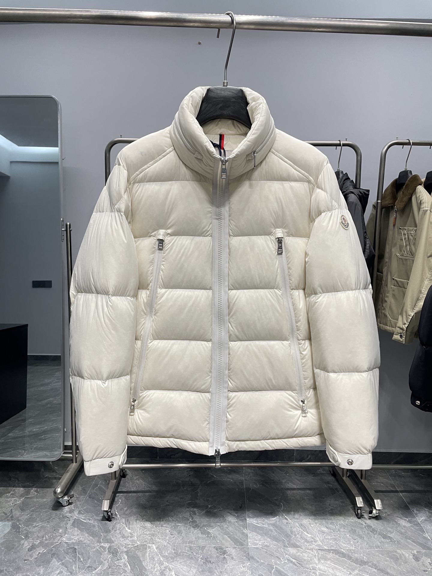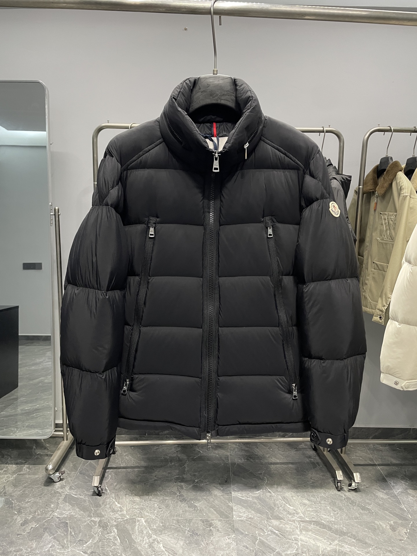 这款衣服是AAAAA 1:1 质量 (非常棒). 使用了和原版一模一样的材料. 商标部分也保持了和盟可睐/moncler一样. 图片拍摄是实物衣服拍摄, 您所收到的实物保证和我们图片一模一样.