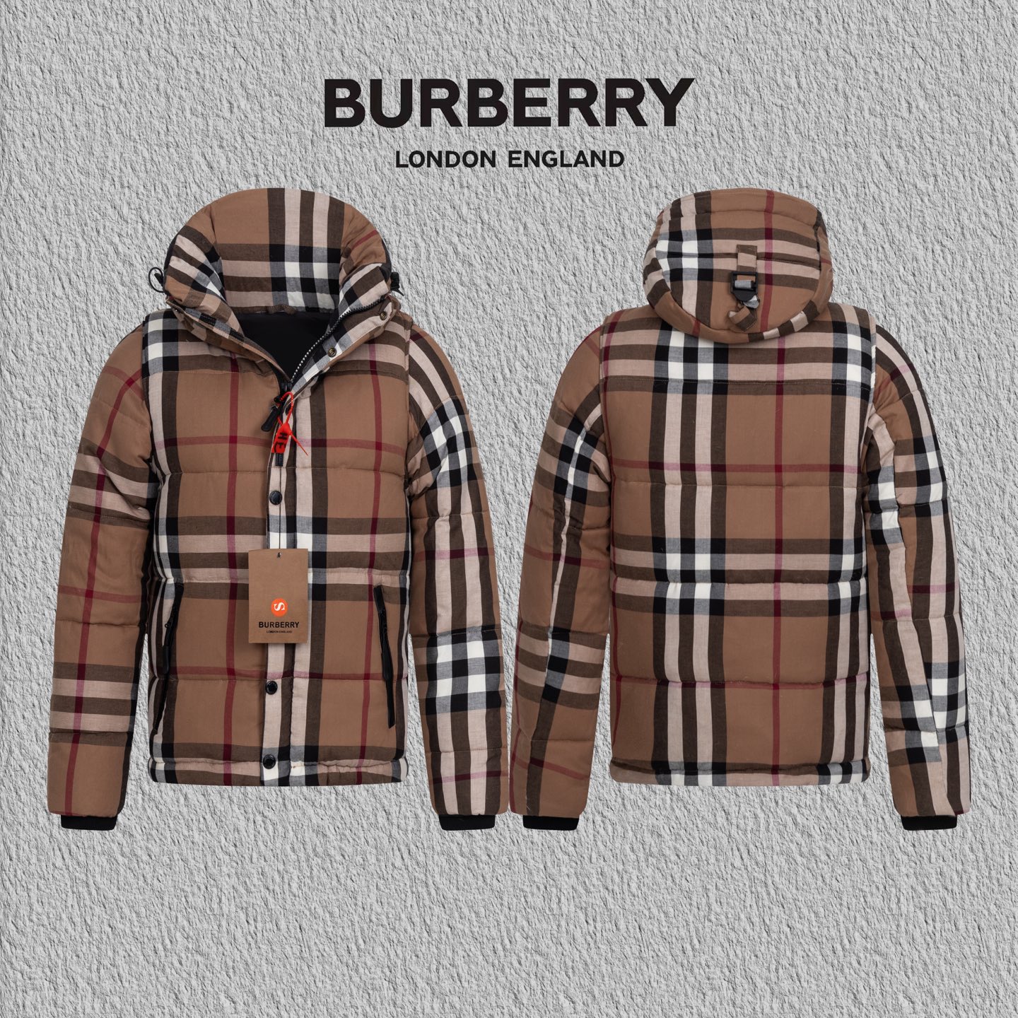 这款衣服是AAAAA 1:1 质量 (非常棒). 使用了和原版一模一样的材料. 商标部分也保持了和巴宝莉/Burberry一样. 图片拍摄是实物衣服拍摄, 您所收到的实物保证和我们图片一模一样.