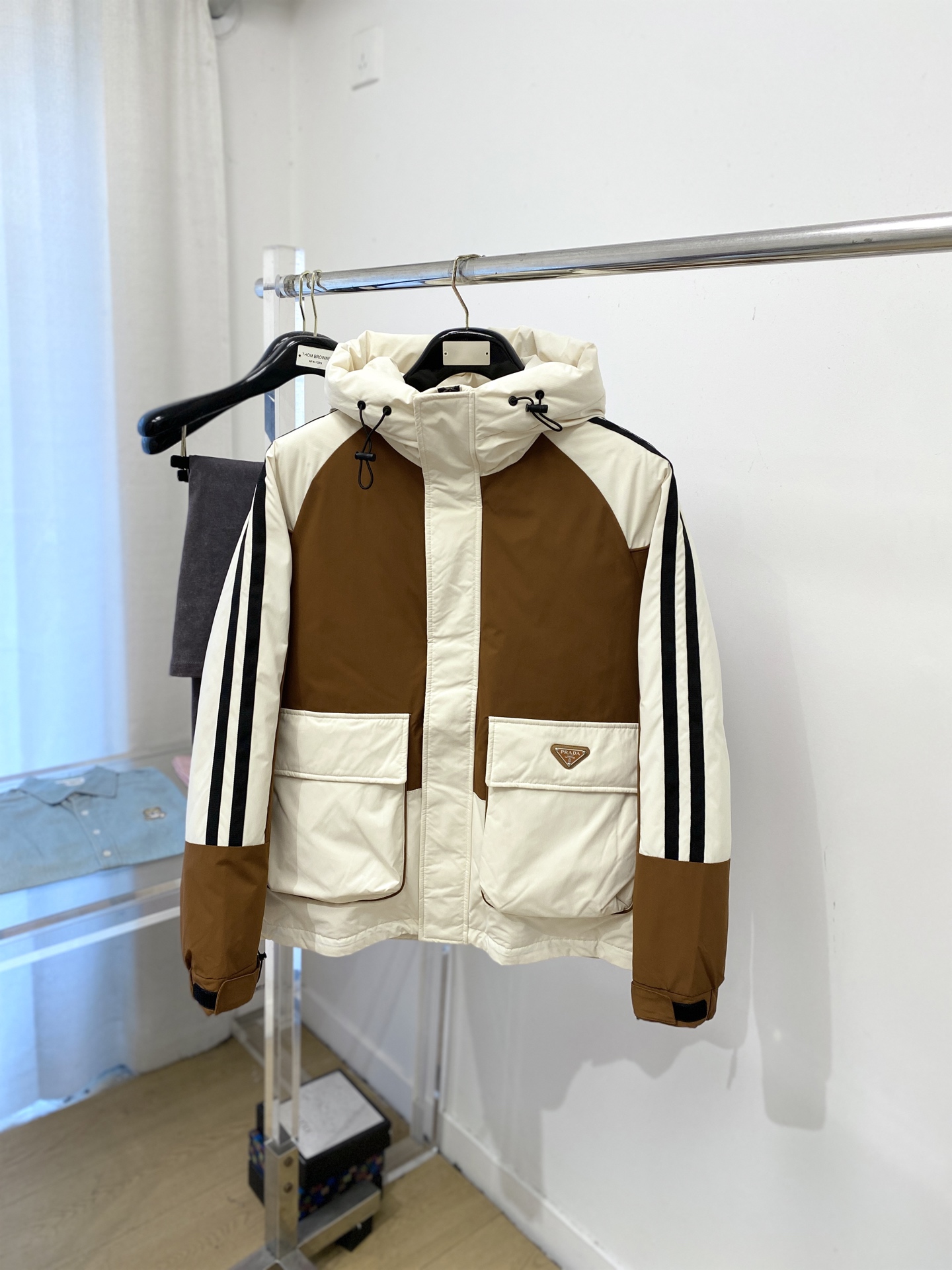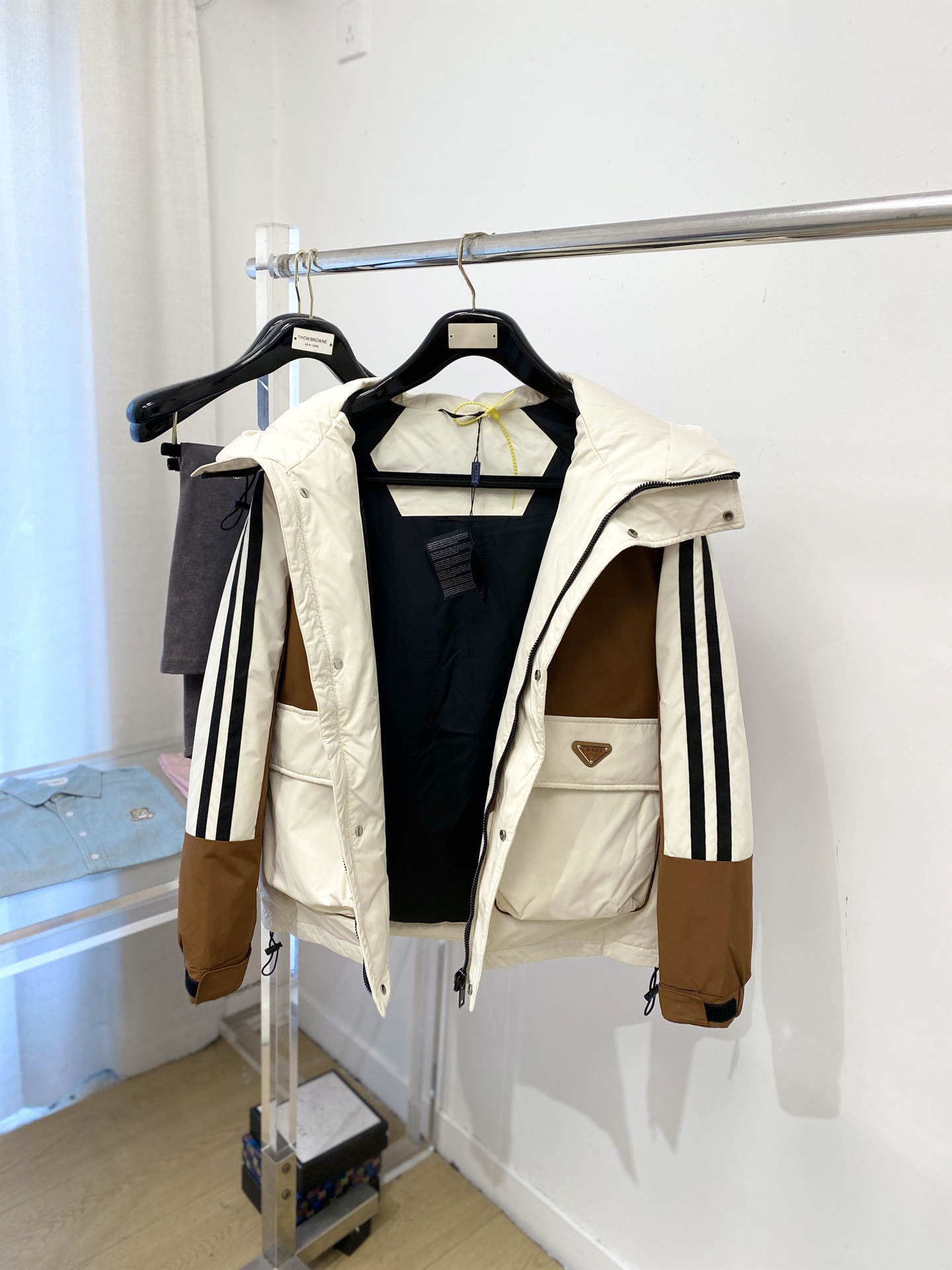 这款衣服是AAAAA 1:1 质量 (非常棒). 使用了和原版一模一样的材料. 商标部分也保持了和普拉达/Prada一样. 图片拍摄是实物衣服拍摄, 您所收到的实物保证和我们图片一模一样.