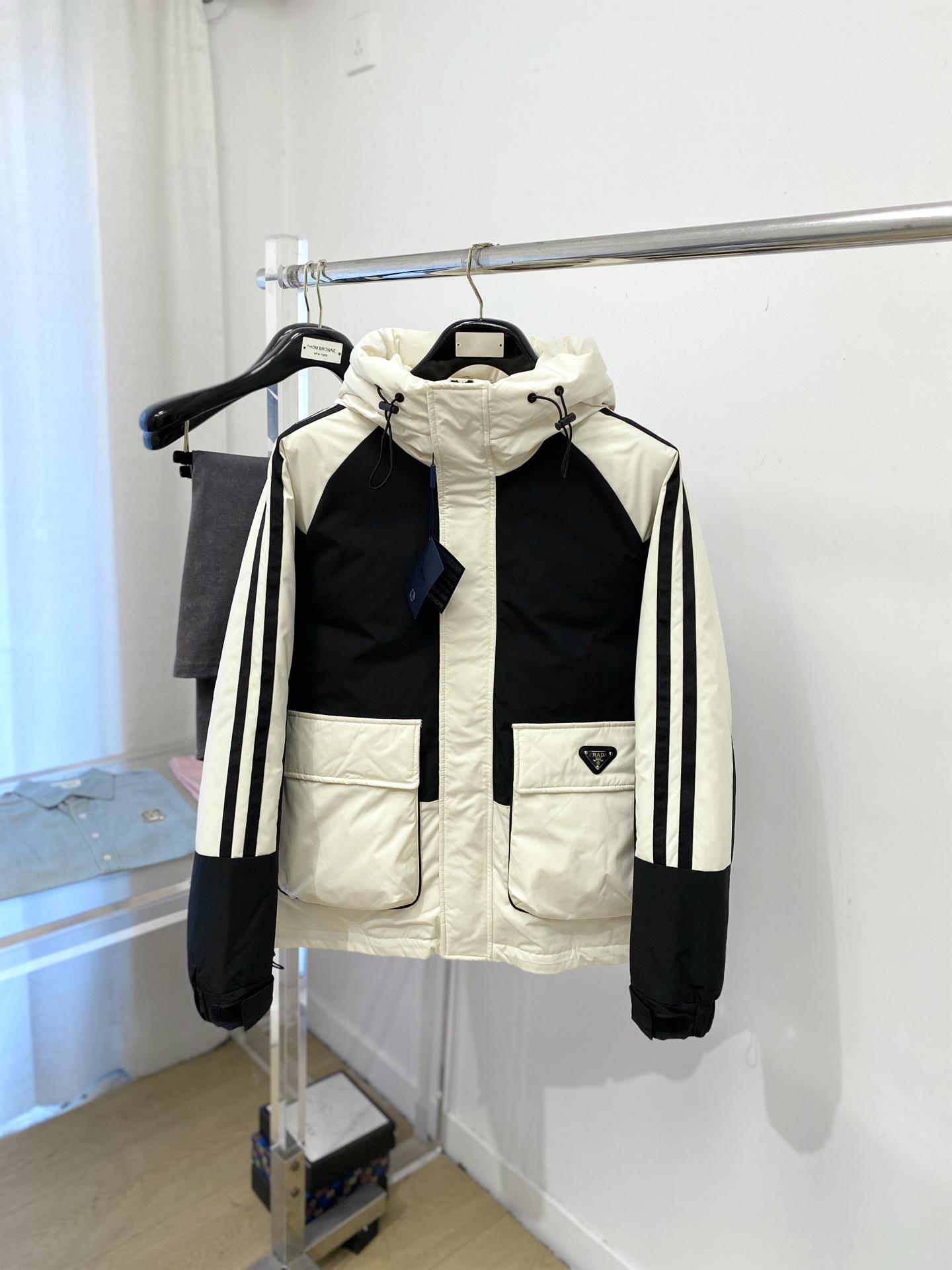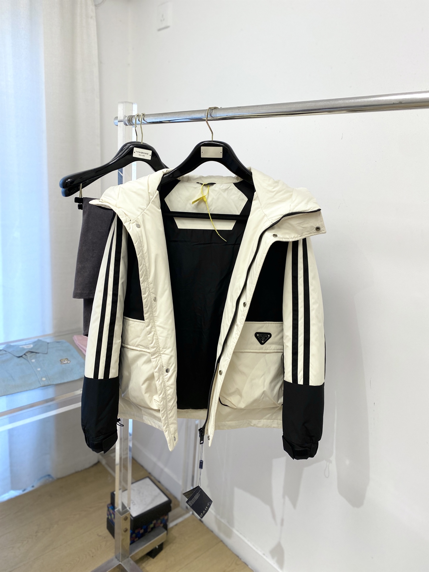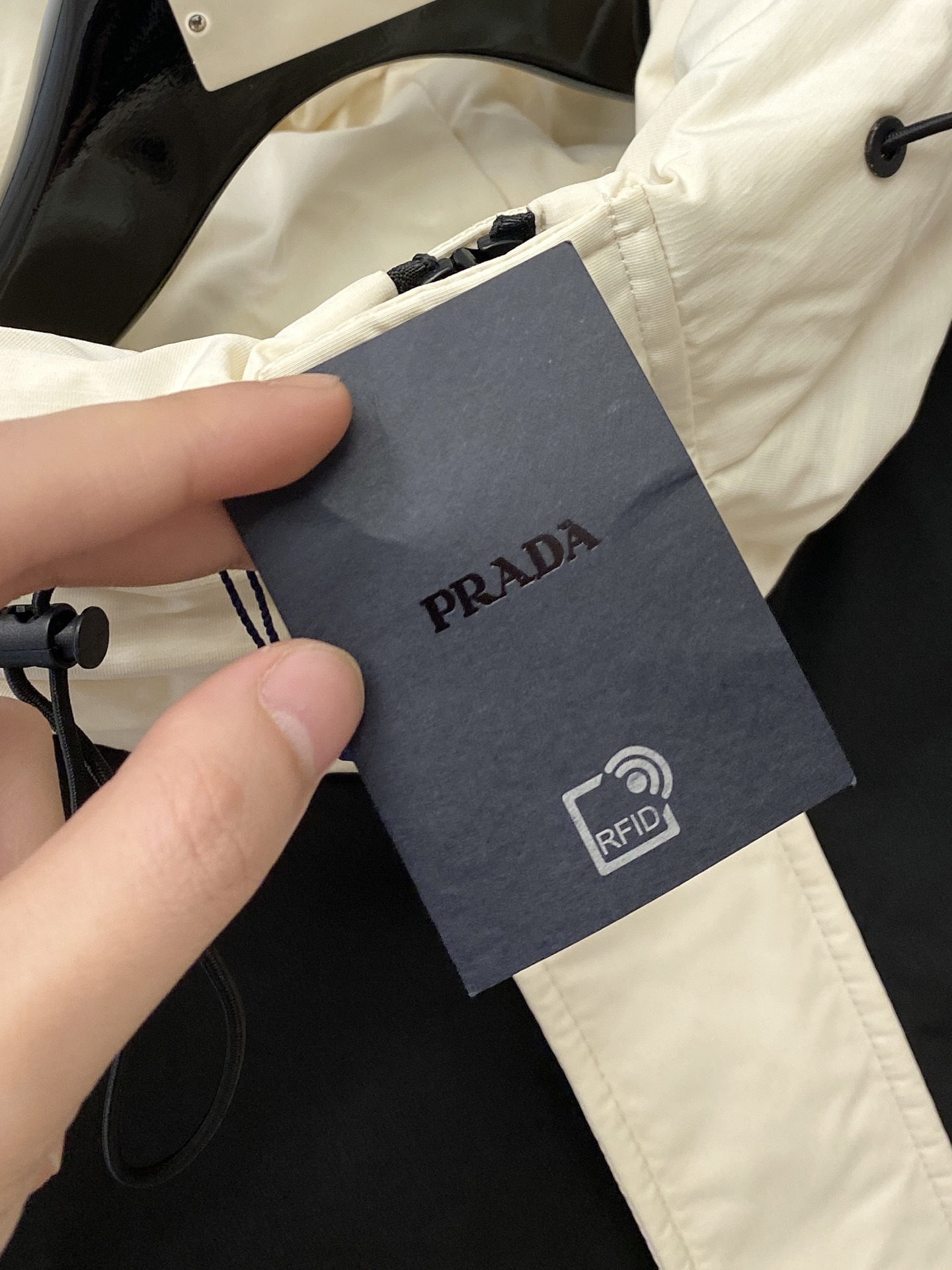 这款衣服是AAAAA 1:1 质量 (非常棒). 使用了和原版一模一样的材料. 商标部分也保持了和普拉达/Prada一样. 图片拍摄是实物衣服拍摄, 您所收到的实物保证和我们图片一模一样.