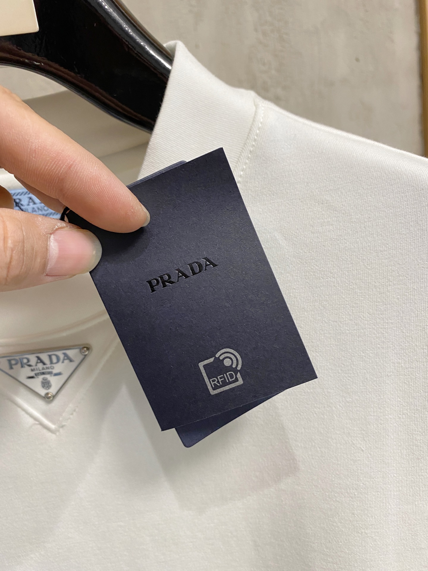 这款衣服是AAAAA 1:1 质量 (非常棒). 使用了和原版一模一样的材料. 商标部分也保持了和普拉达/Prada一样. 图片拍摄是实物衣服拍摄, 您所收到的实物保证和我们图片一模一样.