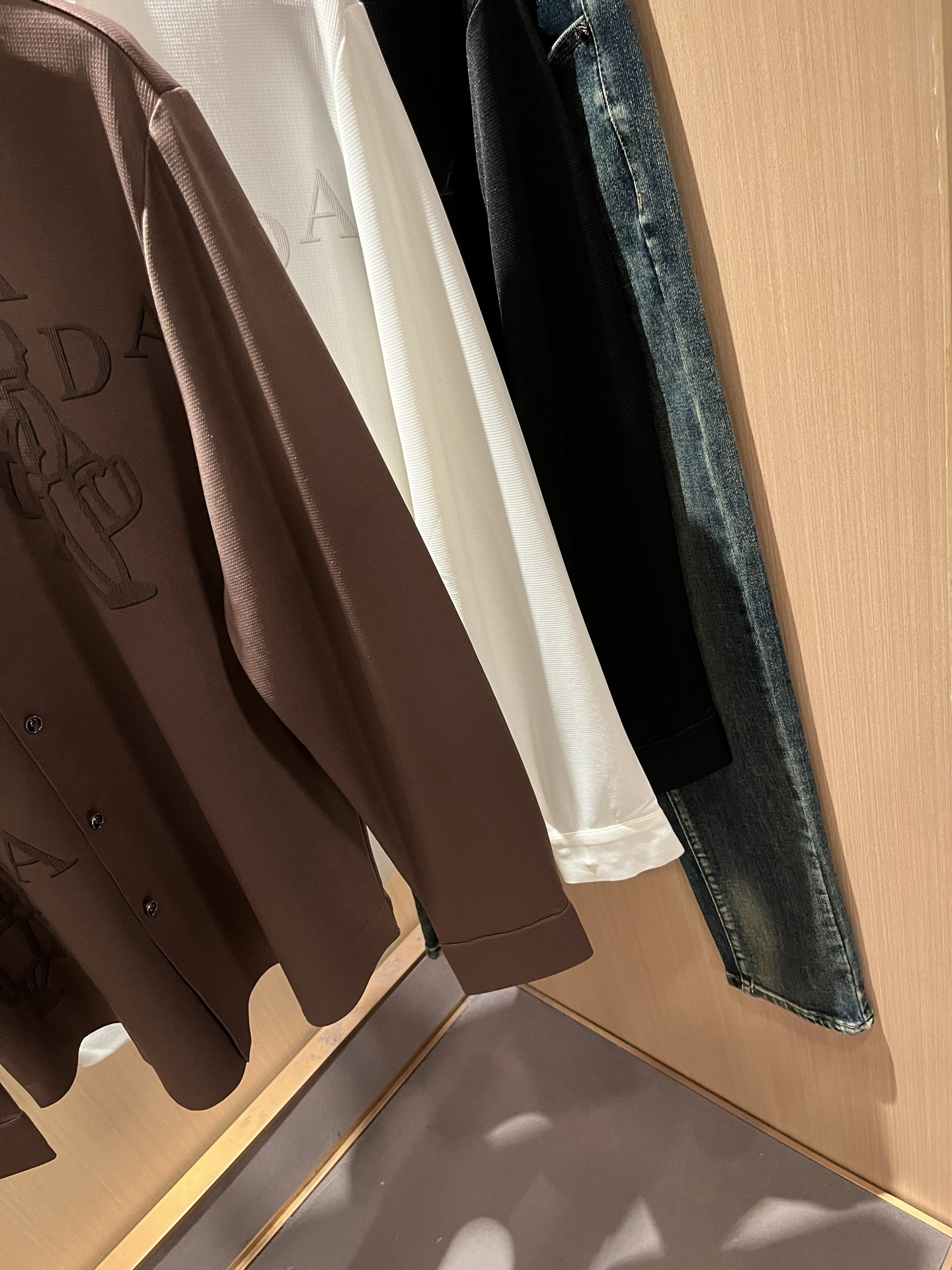 这款衣服是AAAAA 1:1 质量 (非常棒). 使用了和原版一模一样的材料. 商标部分也保持了和普拉达/Prada一样. 图片拍摄是实物衣服拍摄, 您所收到的实物保证和我们图片一模一样.