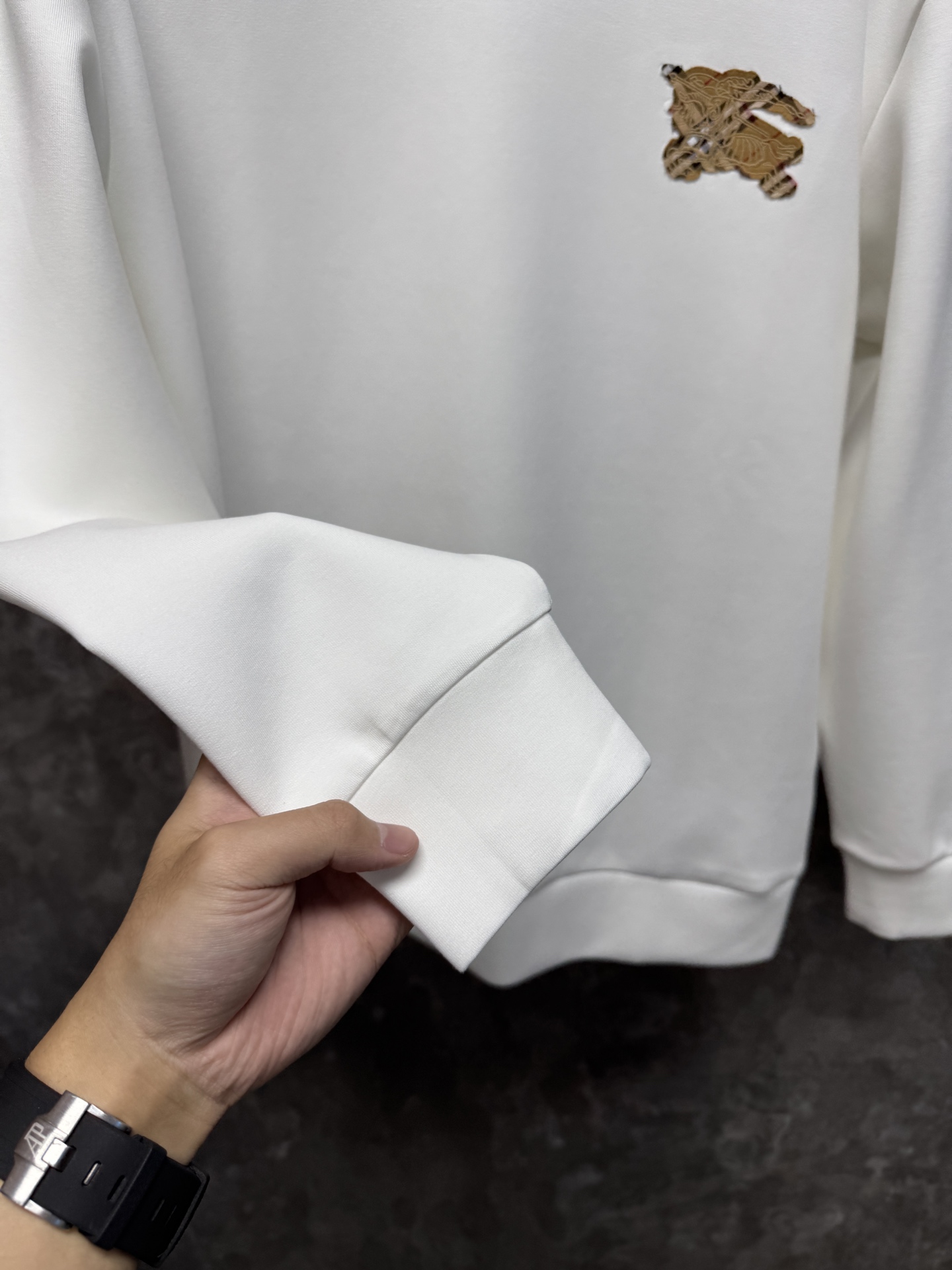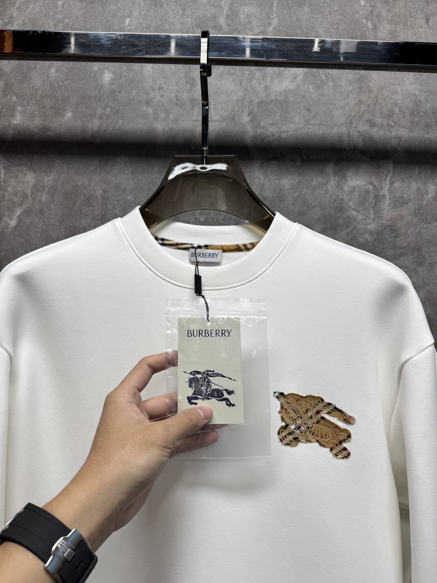 这款衣服是AAAAA 1:1 质量 (非常棒). 使用了和原版一模一样的材料. 商标部分也保持了和巴宝莉/Burberry一样. 图片拍摄是实物衣服拍摄, 您所收到的实物保证和我们图片一模一样.